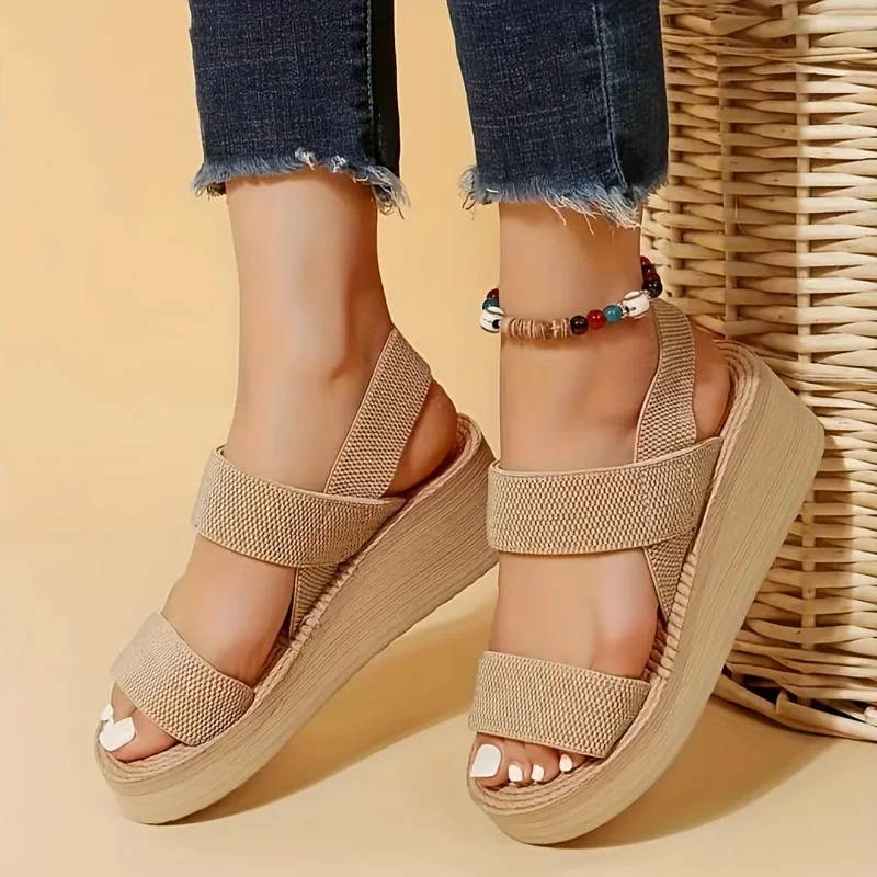 1pair Women’s Minimalist Wedge Sandals Open Toe Thick Soled Platform Casual Sandals Ankle Strap Slingback Sandals Solid Color