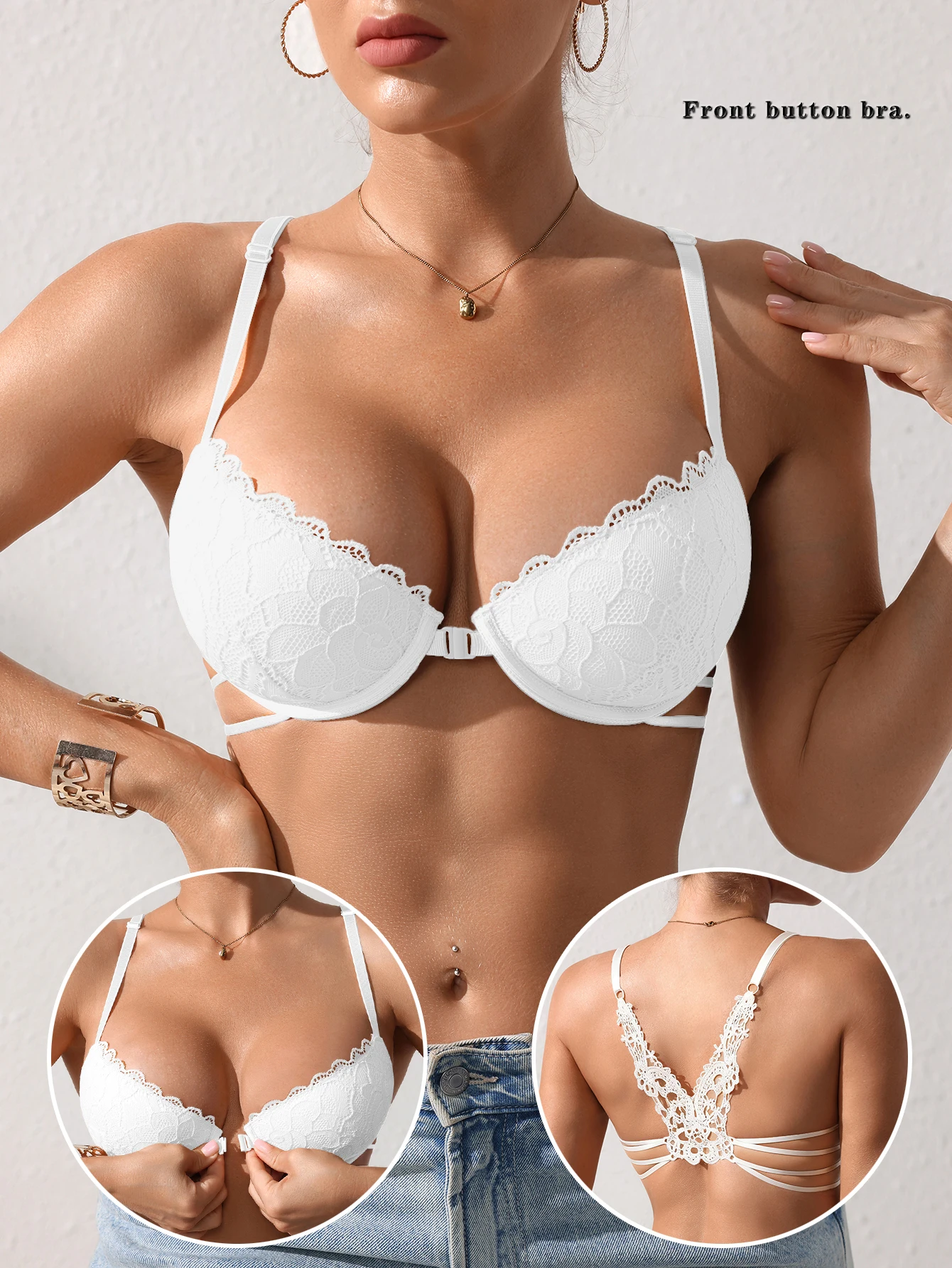 1Pc / 5Pcs Lace Butterfly Back Beauty Bra for Women Modern Trend Solid Color Front Buckle Push-Up Sexy Bras