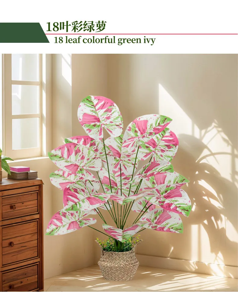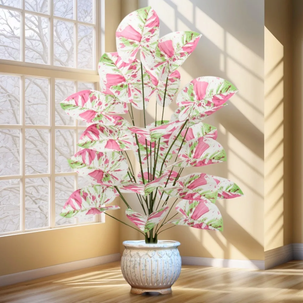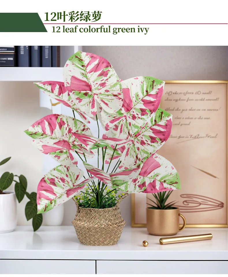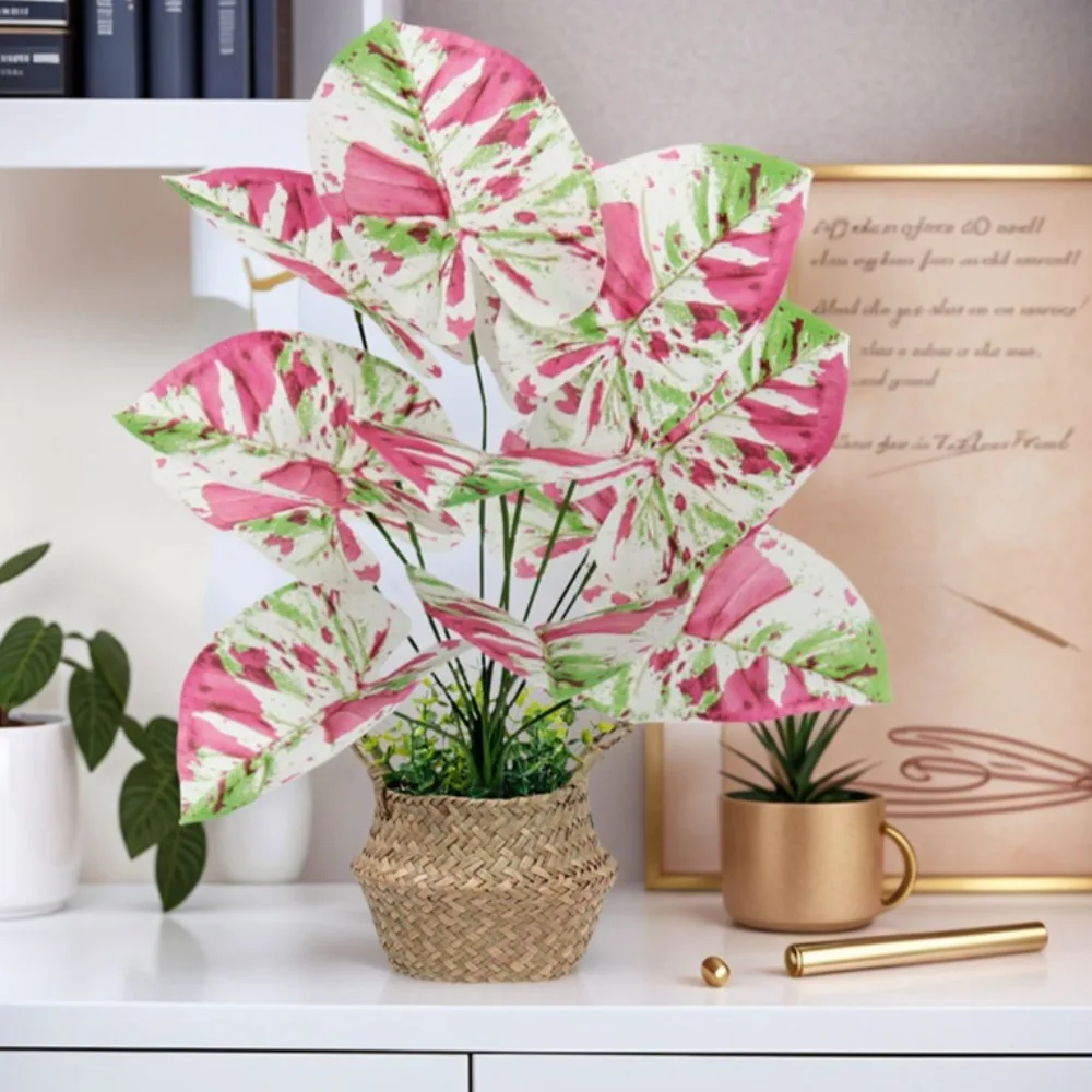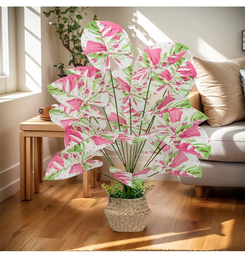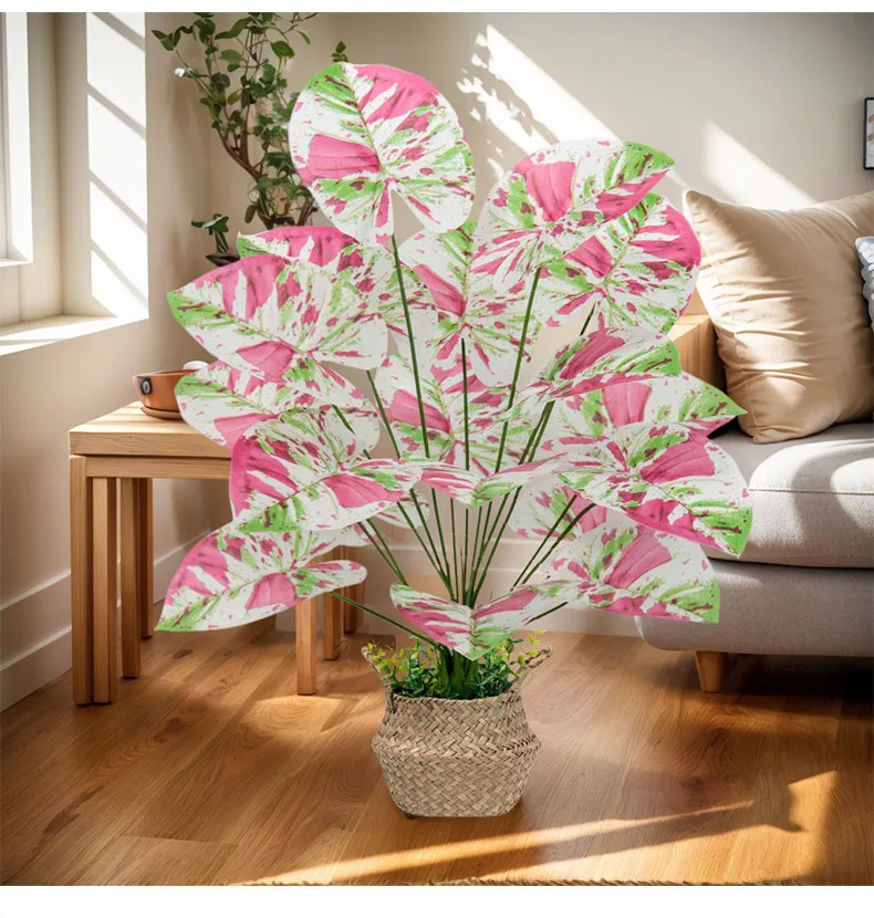 1pcs 55-80CM Artificial Colorful Alocasia Leaves Autumn Christmas Ornamental Plants for Home Wedding Deco Photography Props