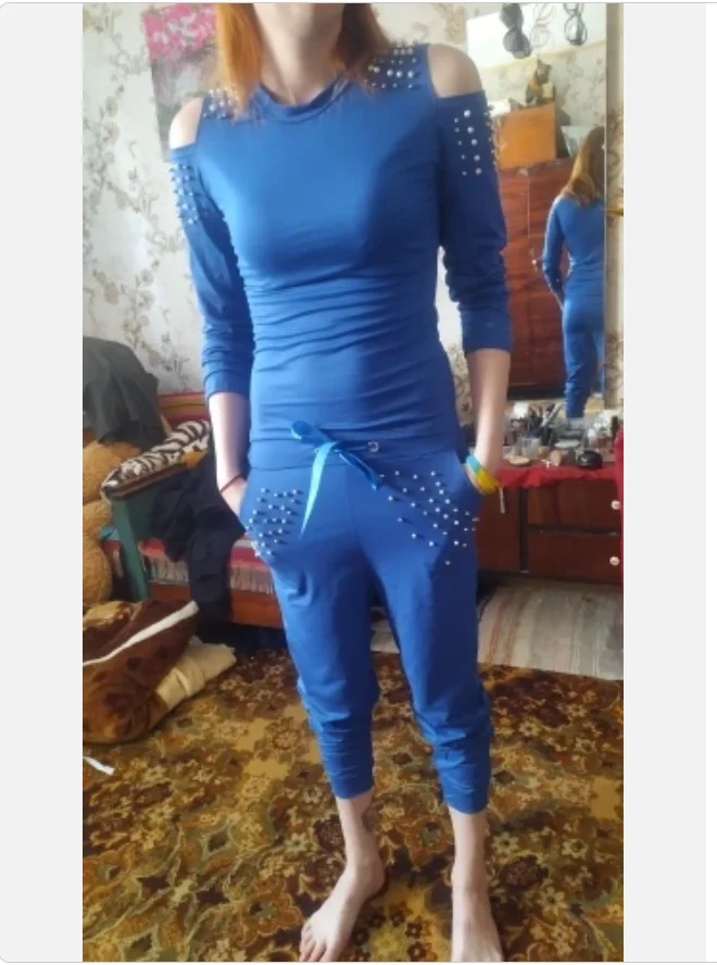 2 Pieces Set Women Spring Autumn Sexy Nail Bead tops+pants Pure Color Off Shoulder Hollow Out O Collar Sports Suit ZXP9596