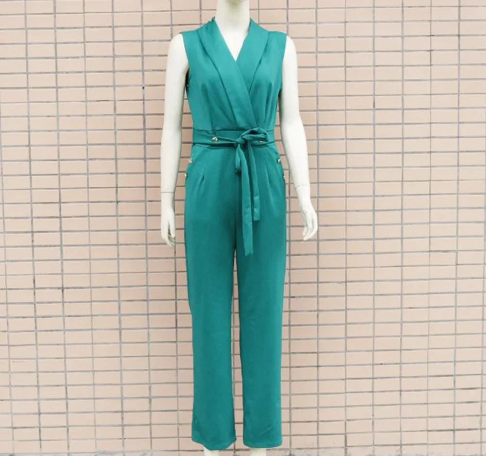2022 Spring Summer Women’s Clothing Amazon Twist V-Neck Sleeveless Slims Smooths Your Silhouette Jumpsuit Professional Wear