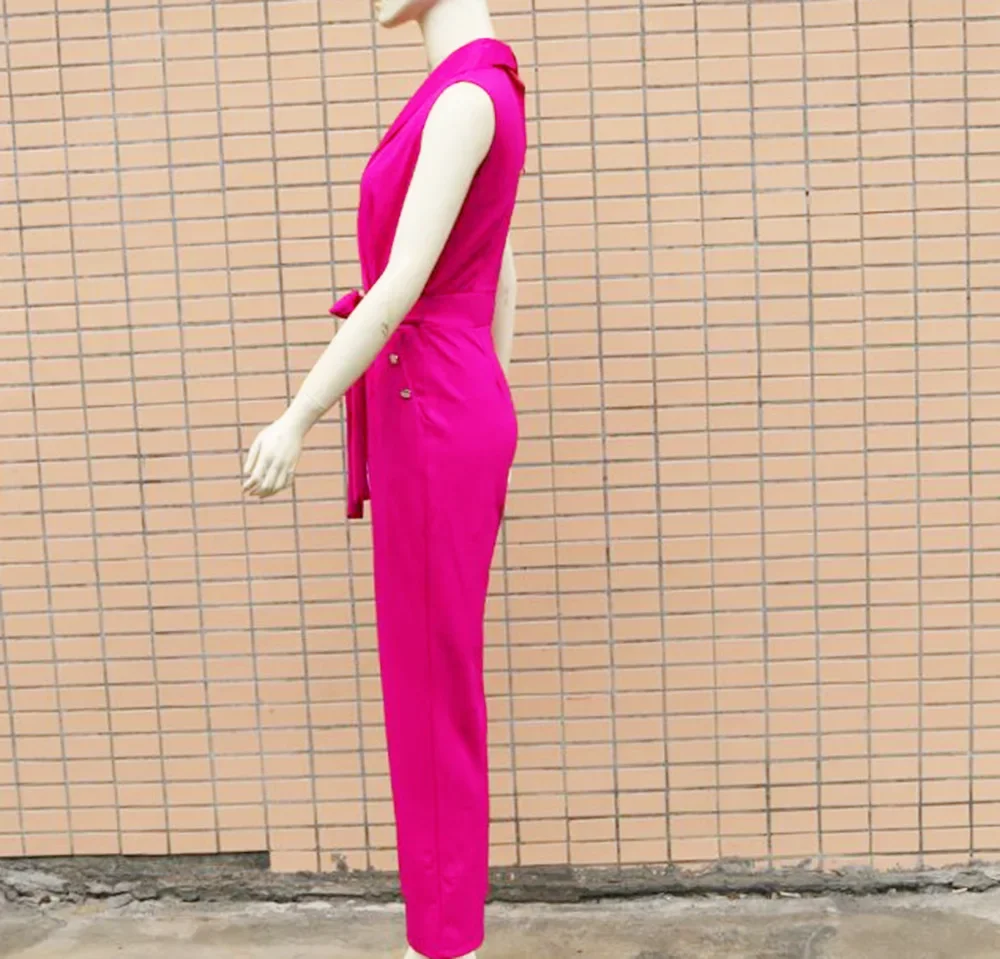 • Sleeveless Slim-fit Jumpsuit : The sleeveless feature keeps you cool during summer, while the slim-fit design accentuates your figure.