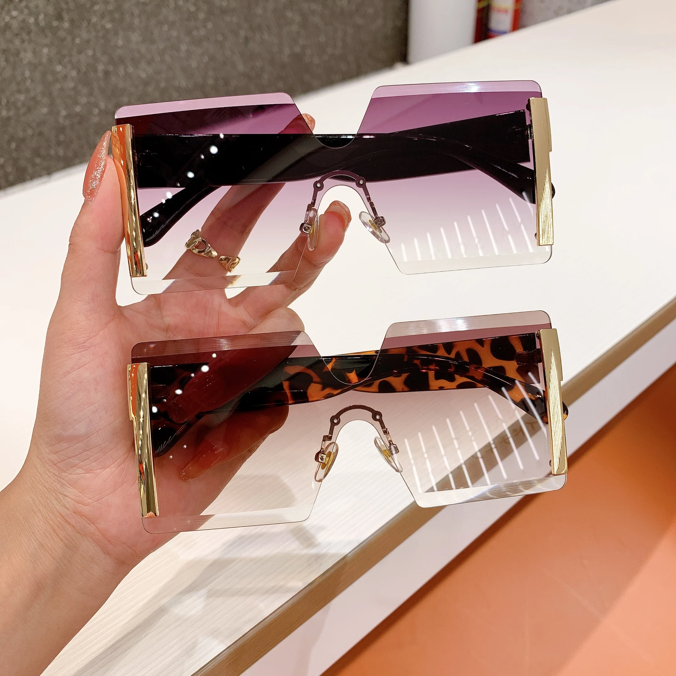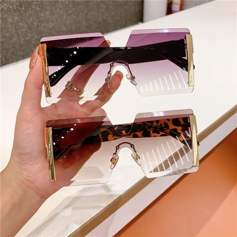 2023 Fashion New Women Oversized Rimless Sun Glasses Vintage Gradient Tea Cool Sunglasses Ladies Uitravioler-proof