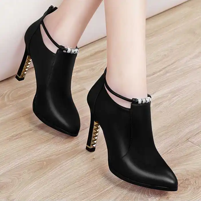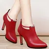 2023 New Women Red Women’s Boots Stilettos Heels Ankle Boot Leather Casual Elegant Short Shoes Spring Summer Pumps Size 34