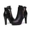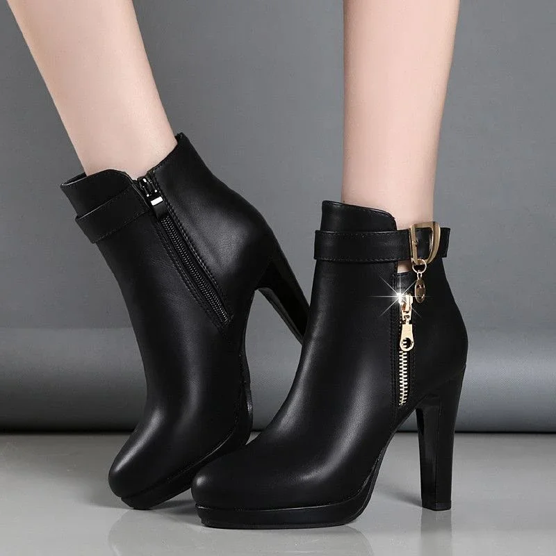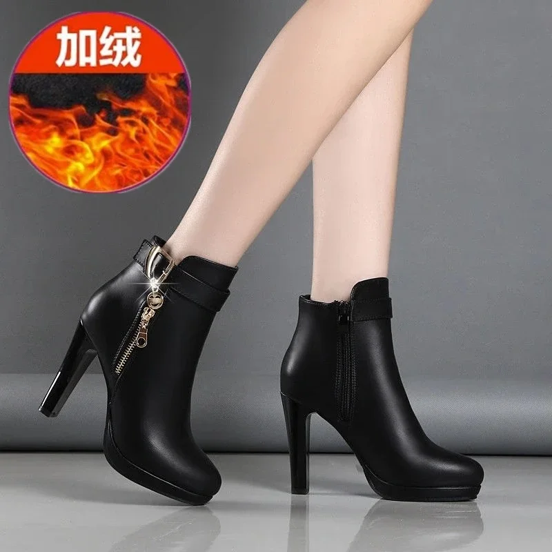 2023 Winter Round Head Leather Belt Buckle Thick Bottom Waterproof Platform High Heel Bare Boots Women Comfortable Women’s Boots