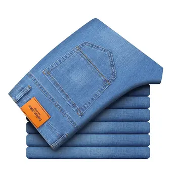 2024 NEW Men’s Fashion Business Jeans Classic Style Casual Stretch Slim Jean Pants Male Brand Denim Trousers Black Blue