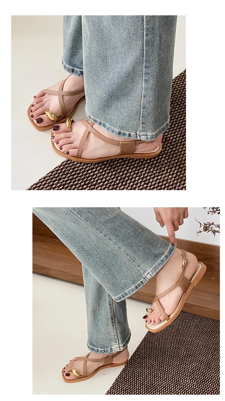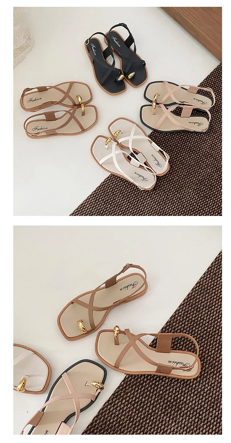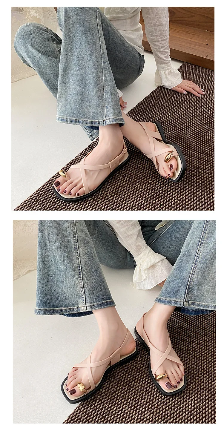 2024 New Women’s Summer Outdoor Wear French Style Flat Bottom Sandals High Quality PVC Material Adults Roman Style Slippers