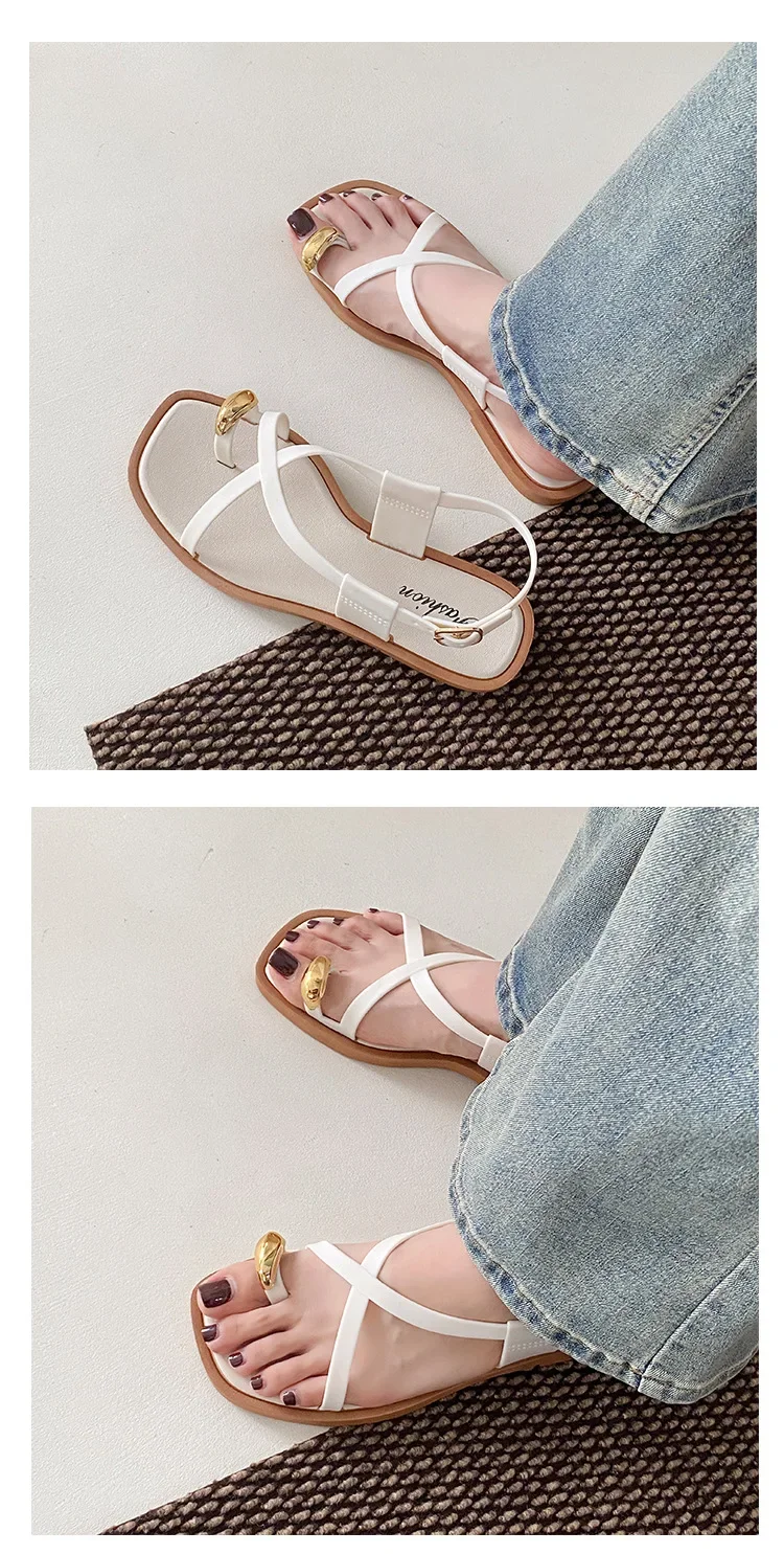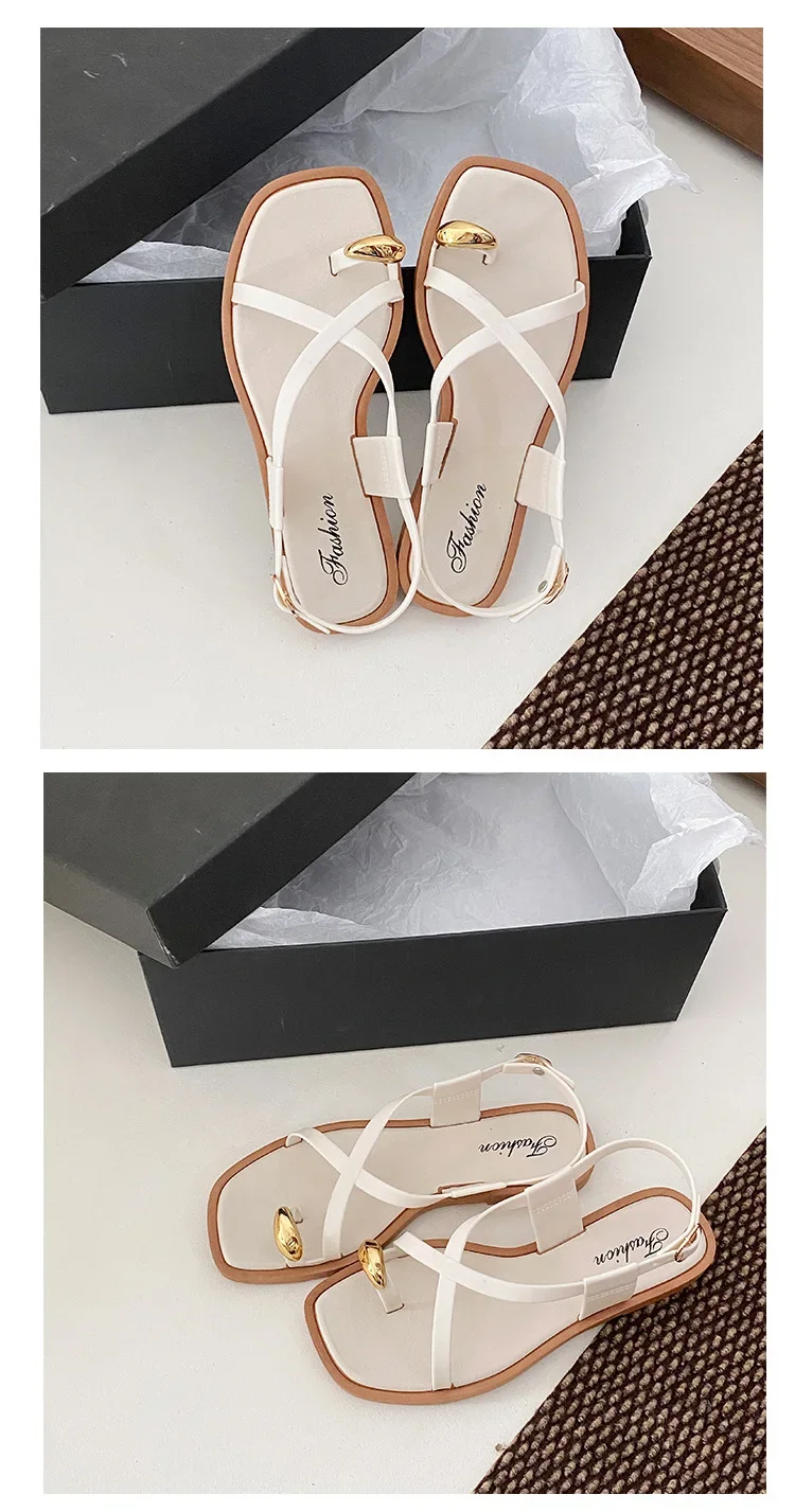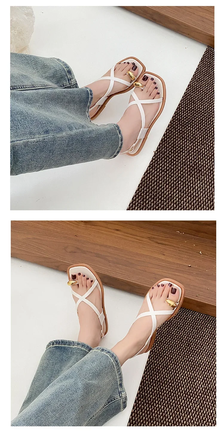 2024 New Women’s Summer Outdoor Wear French Style Flat Bottom Sandals High Quality PVC Material Adults Roman Style Slippers
