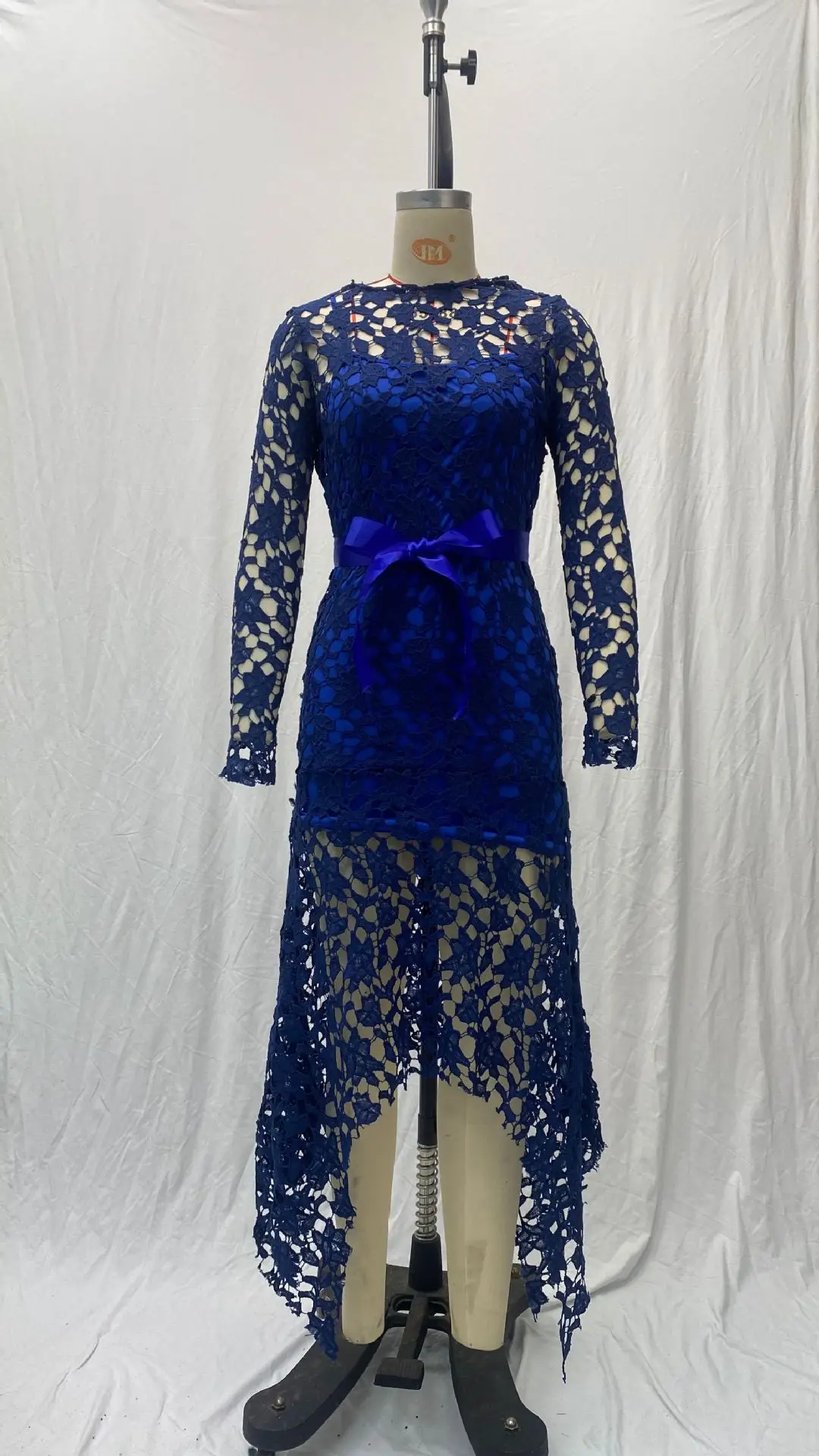 2024 Spring New Fashionable French Lace Stand Up Collar Bubble Sleeves Waist Cinching Slimming Dress Elegant Long Dress