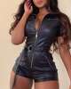 2024 Spring Summer New Women’s Clothing Solid Color Tight Sexy Pu One-Piece Romper Bodysuits