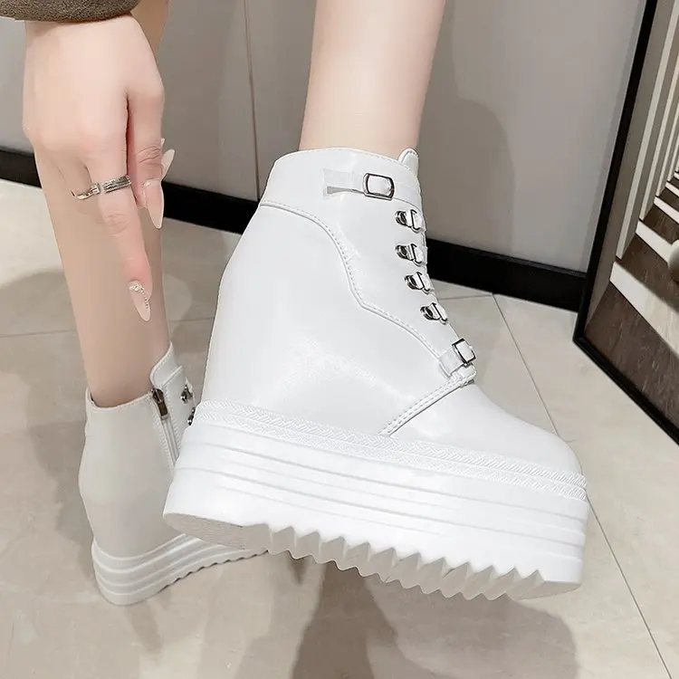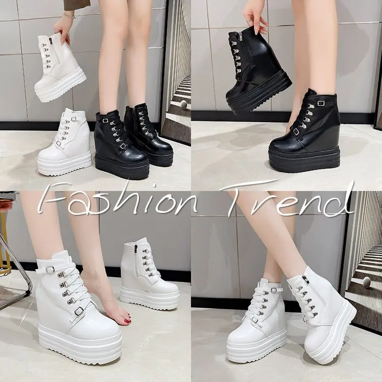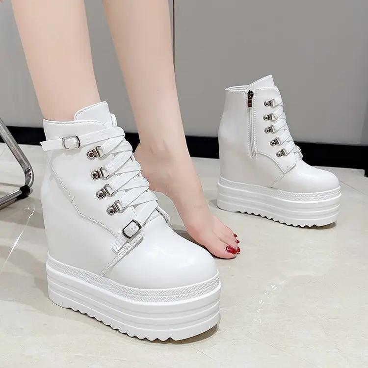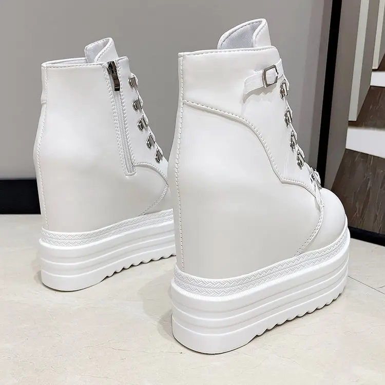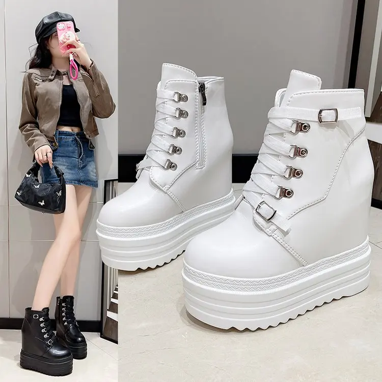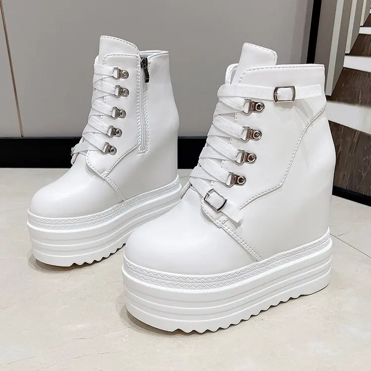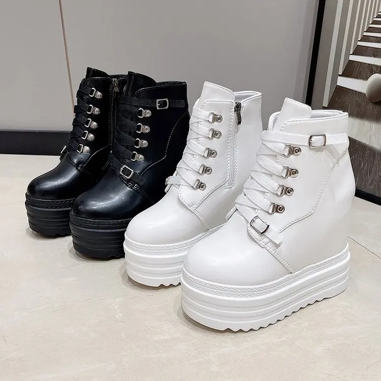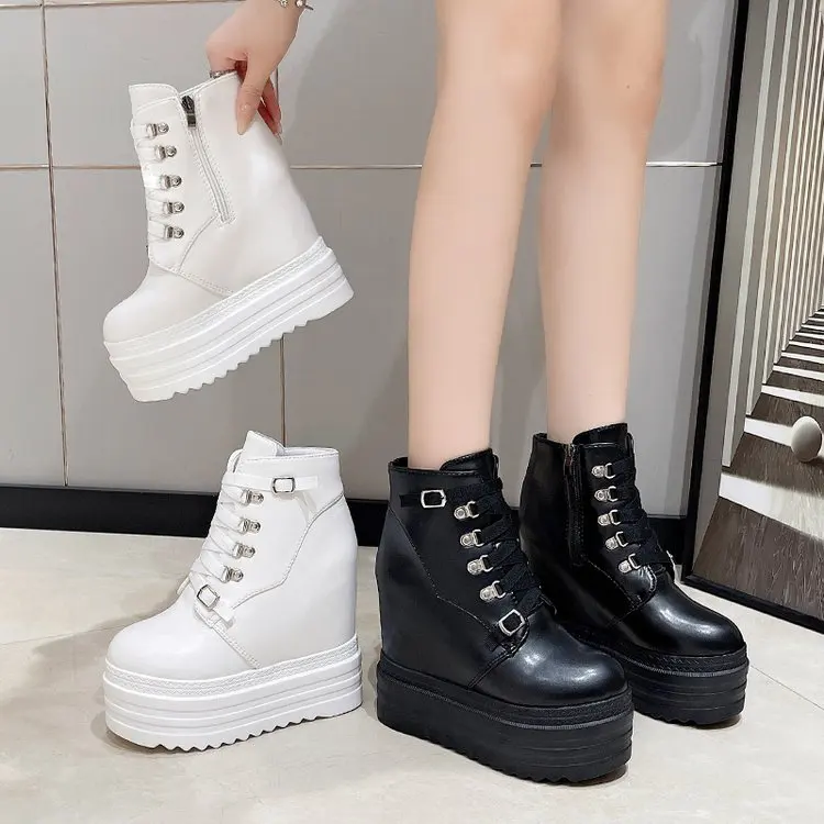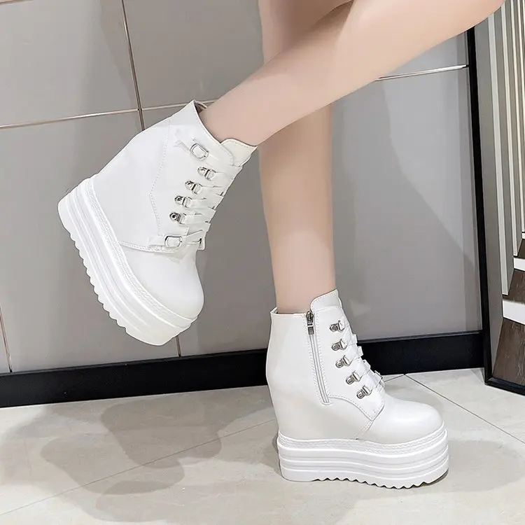 2025 New Fashion Designer Punk Style Women 12CM Platform Wedges Boots Autumn Soft Leather Female Lace Up High Heel Gothic Shoes
