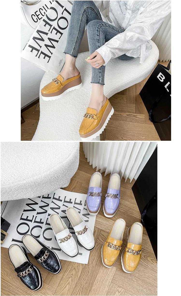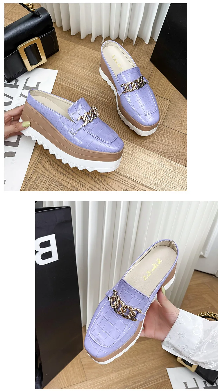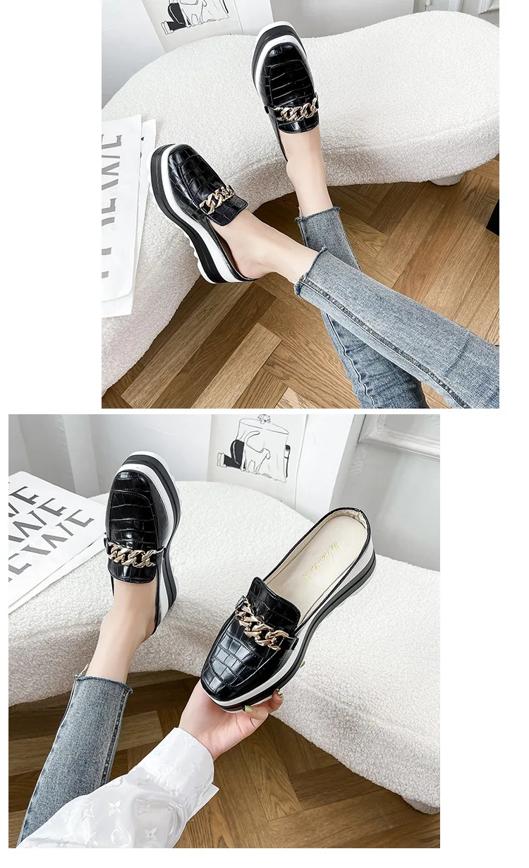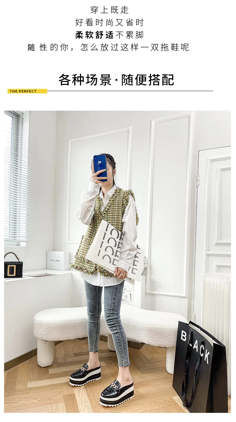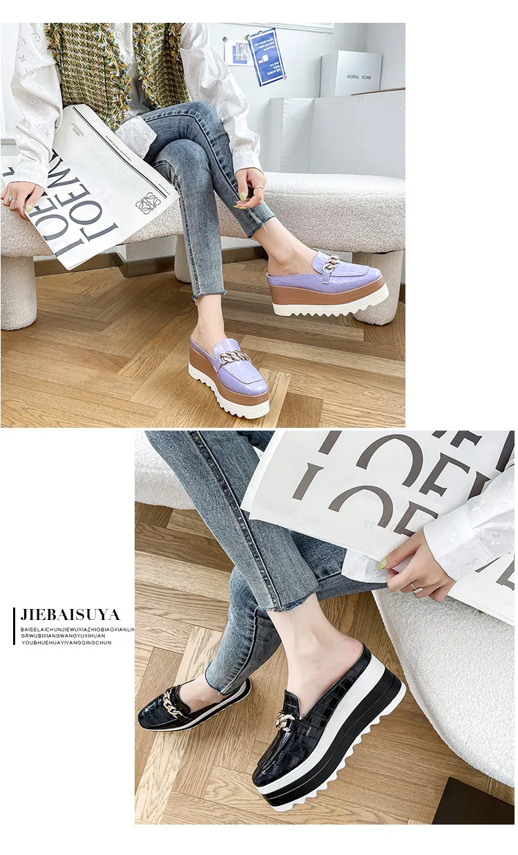 2025 New Slope Heel Half Trailer Baotou Casual Shoes Thick soled Sponge Cake Heel Fashion Women’s Shoes Simple Fashion Slippers