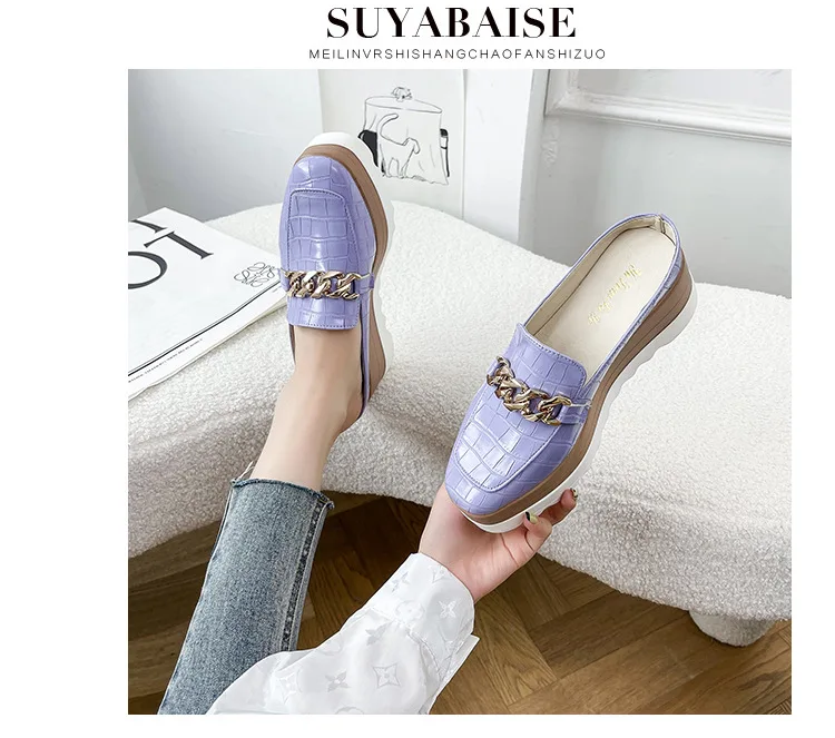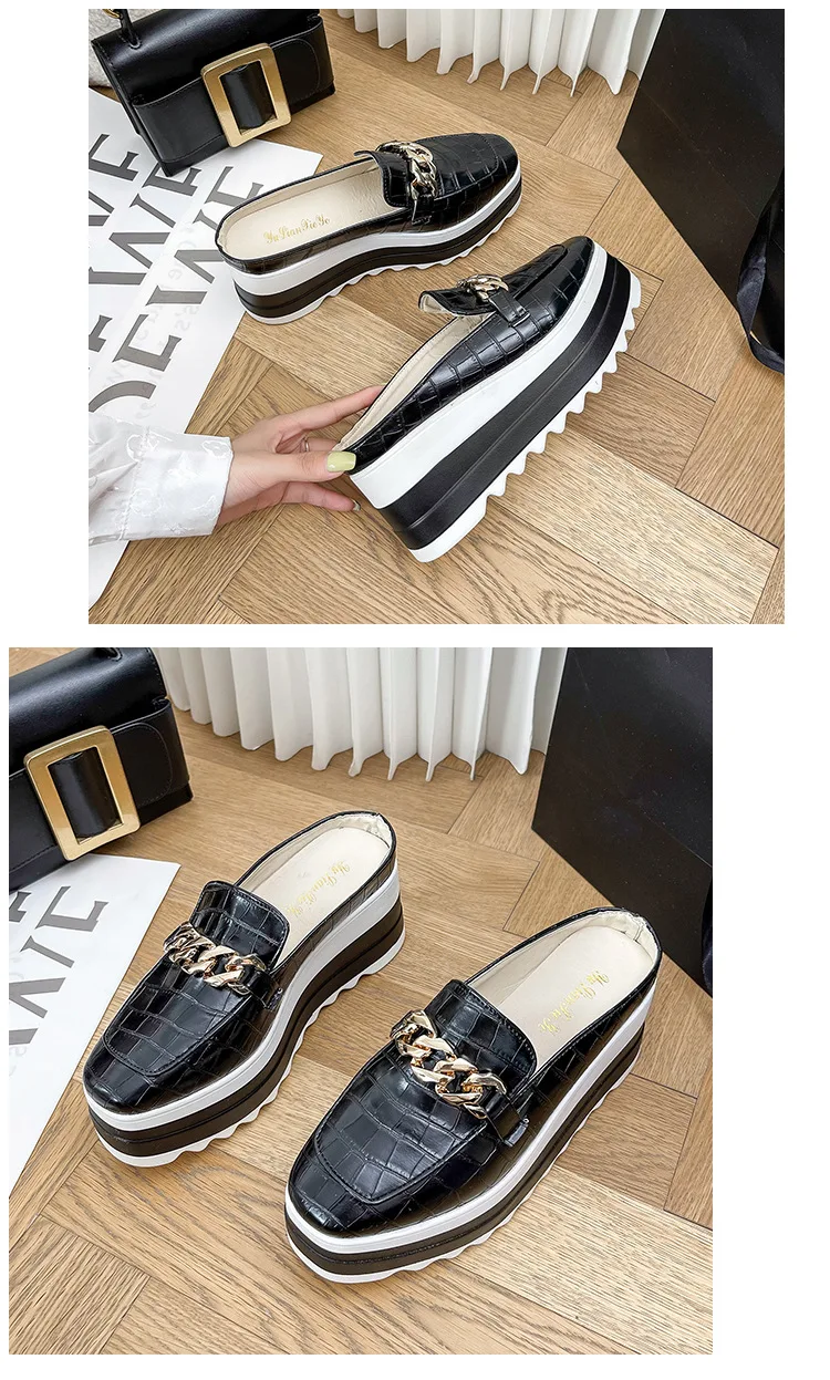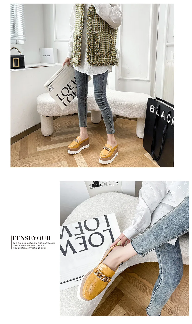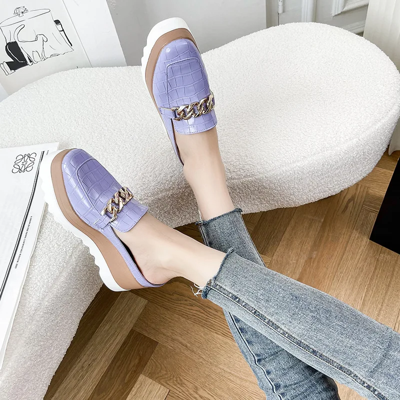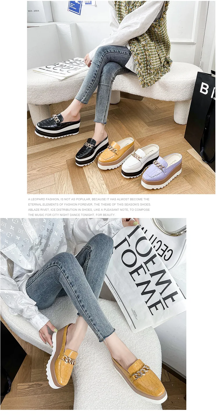 2025 New Slope Heel Half Trailer Baotou Casual Shoes Thick soled Sponge Cake Heel Fashion Women’s Shoes Simple Fashion Slippers
