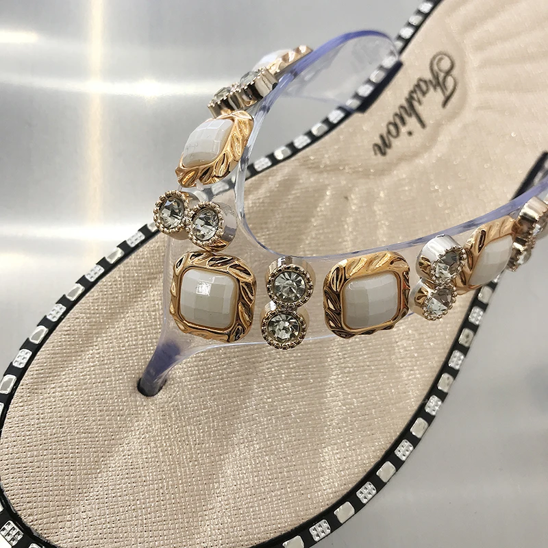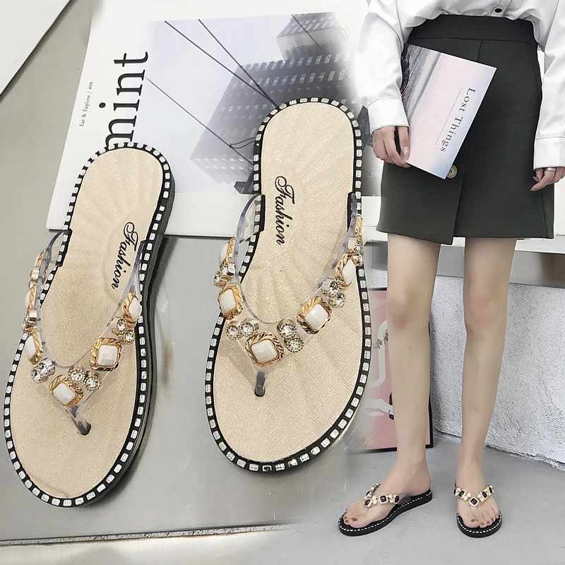 2025 New Style Slippers for Women, Summer Flip-Flops for Outer Wear, Rhinestone Fashion Ins Flats Slippers, Comfortable, Good-Looking and Fashionable Trbottomyy Slippers