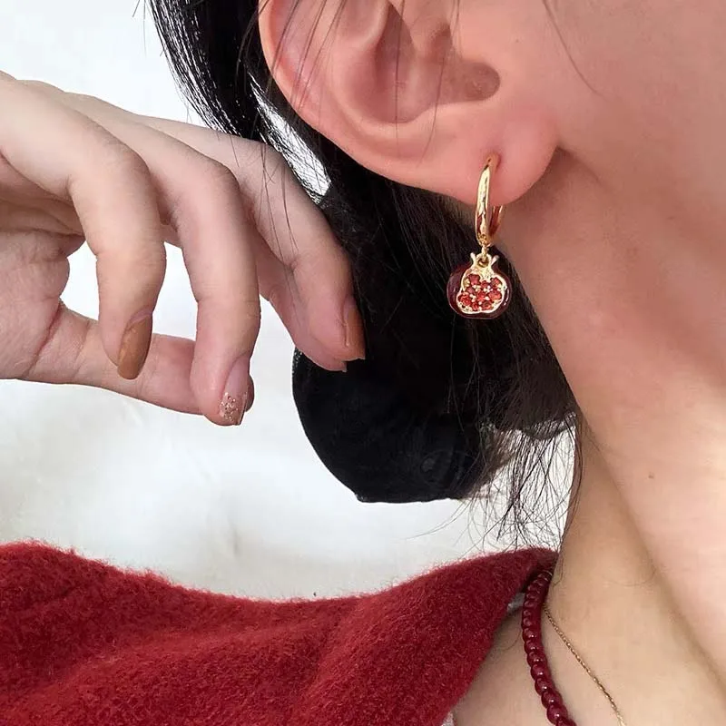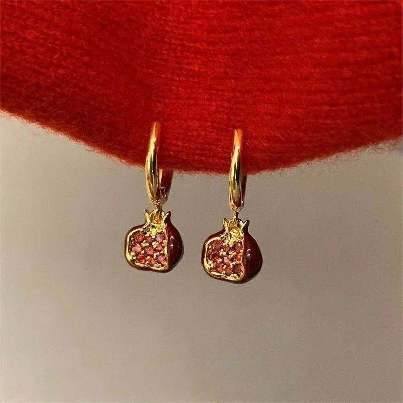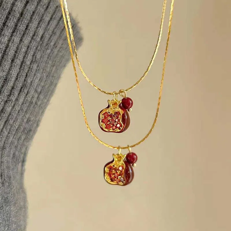 2025 New Trendy Red Pomegranate Pendant Necklace for Women Sweet Cute Fruit Clavicle Chain Charm Earrings Choker Jewelry Gift