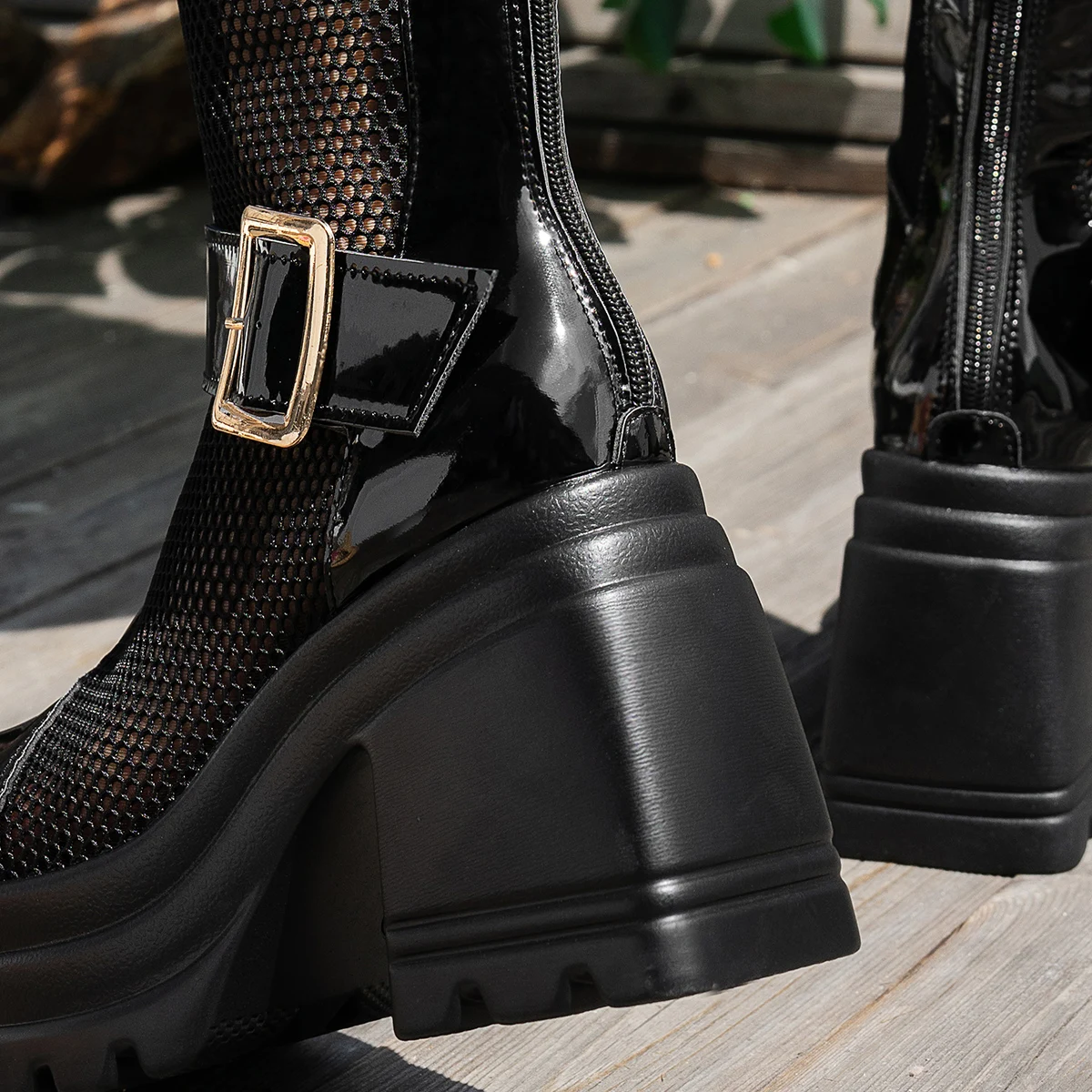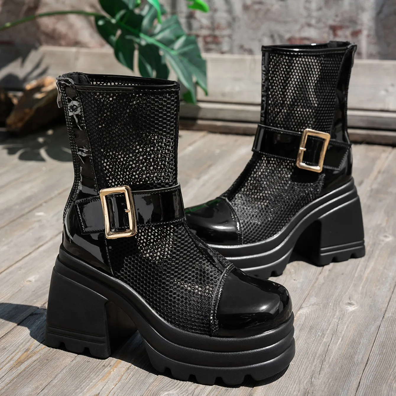 2025 New Women Boots Summer Solid Color Round Toe Boots Thick Heel Fashion Shoes Women Mesh Breathable Comfortable Women Sandals