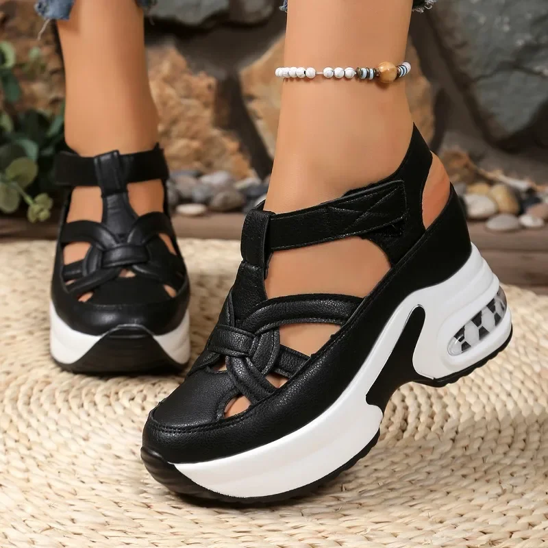 2025 New Women’s Fashion Hollow Out Roman Sandals Platform Wedge Shoes for Ladies Big Size Casual Thick Bottom Height Increasing