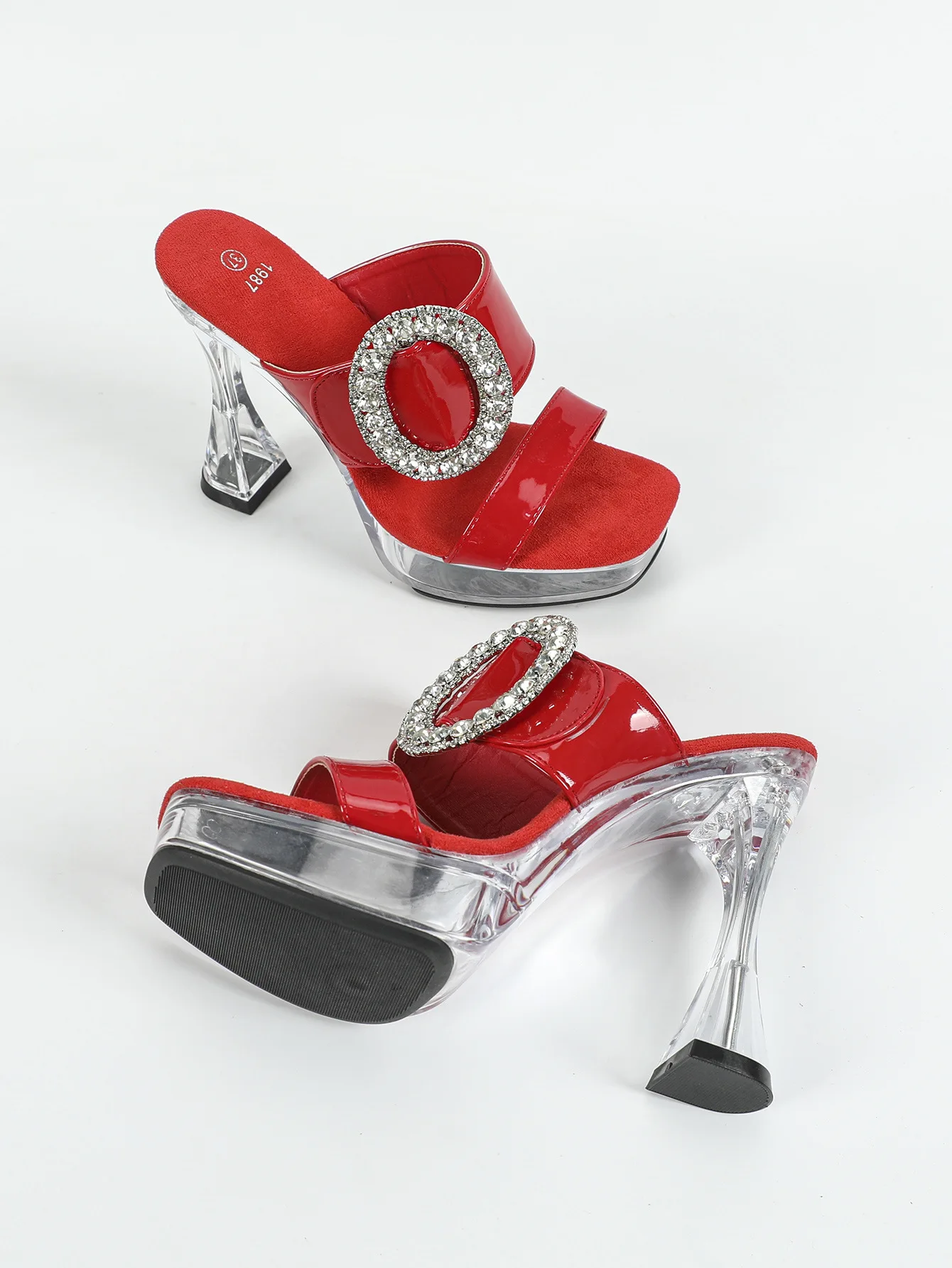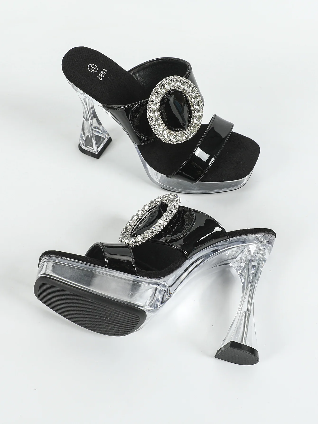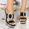 2025 New Women’s Slippers Designer Luxury Rhinestone Square Toe Platform Sandals Summer 12CM Shoes For Ladies Clear High Heels