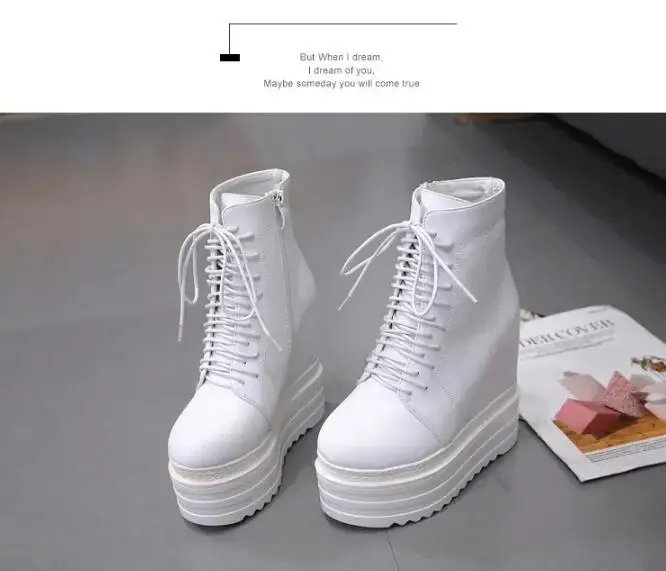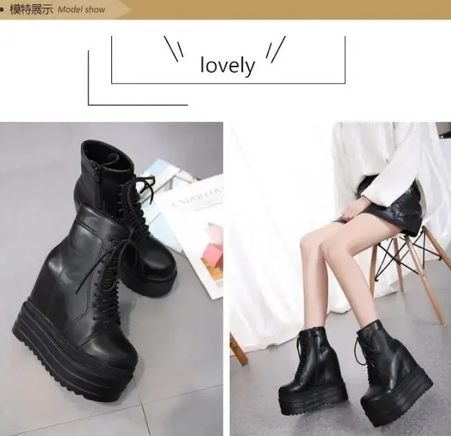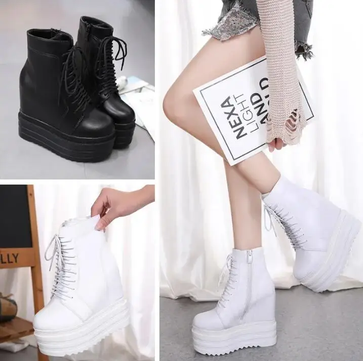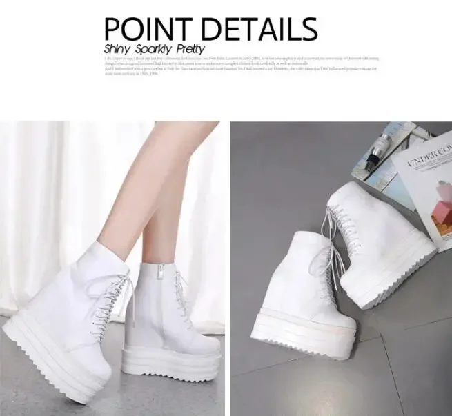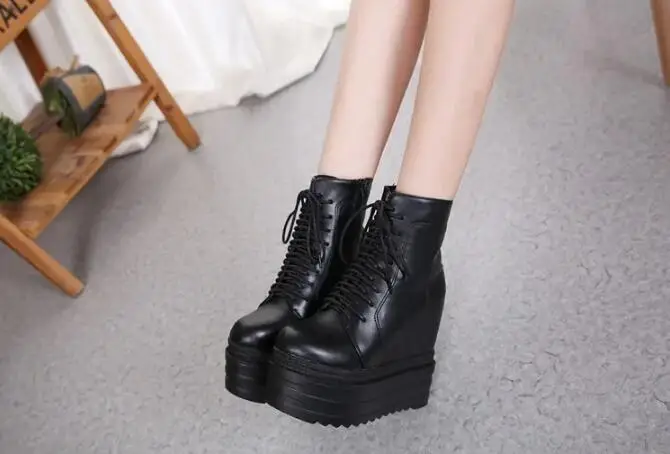 2025 Punk Style Wedges Ankle Boot Black Rubber Sole Shoes 14CM Platform Boots Women Lacing Autumn Sexy lady Wedge Heels Sneakers