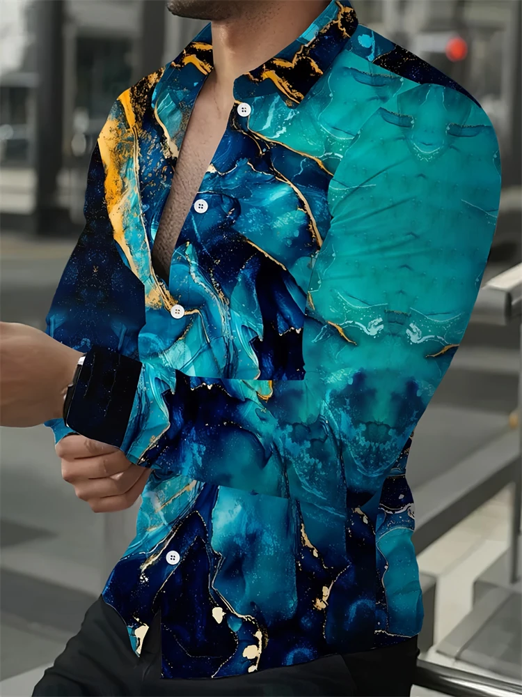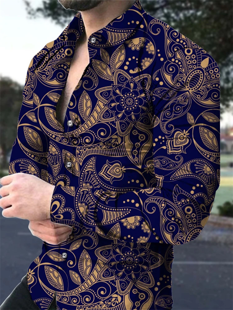 2025 Spring Men’s Shirts Fashion Retro Street Texture Printed Shirts Men’s Long-sleeved Lapel Shirt Shirt Top Office Clothing