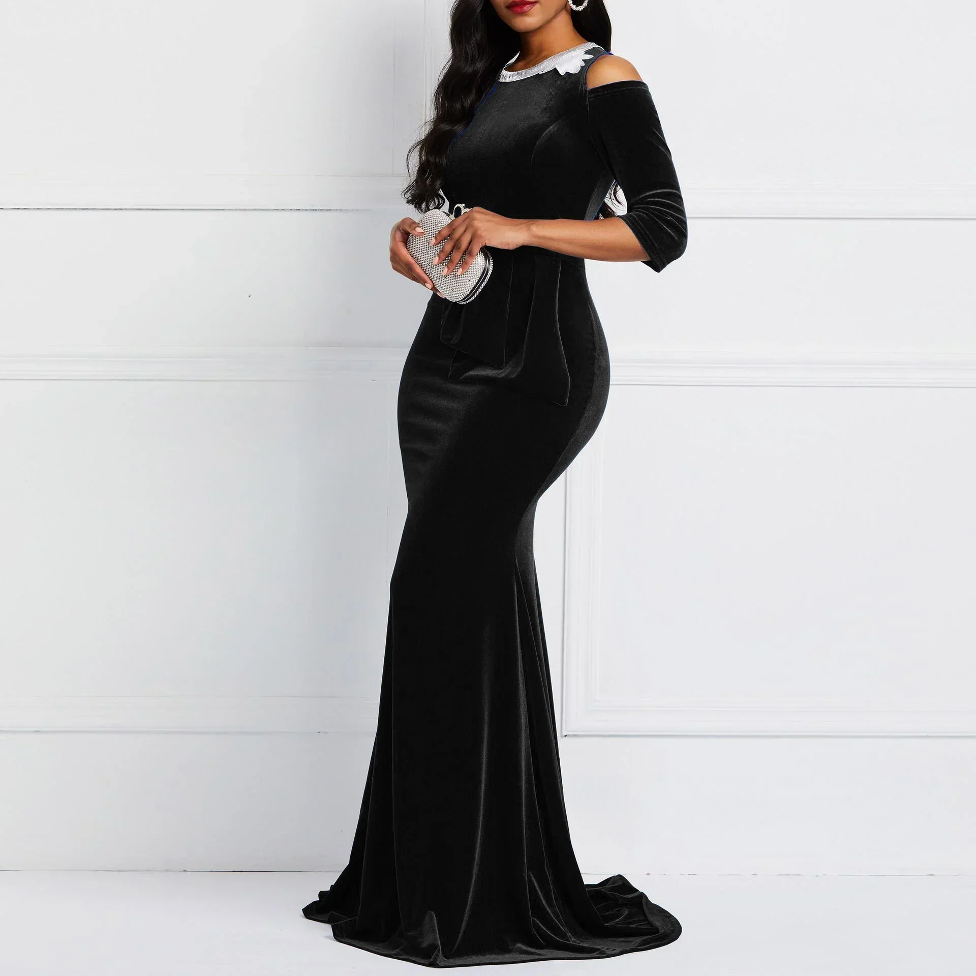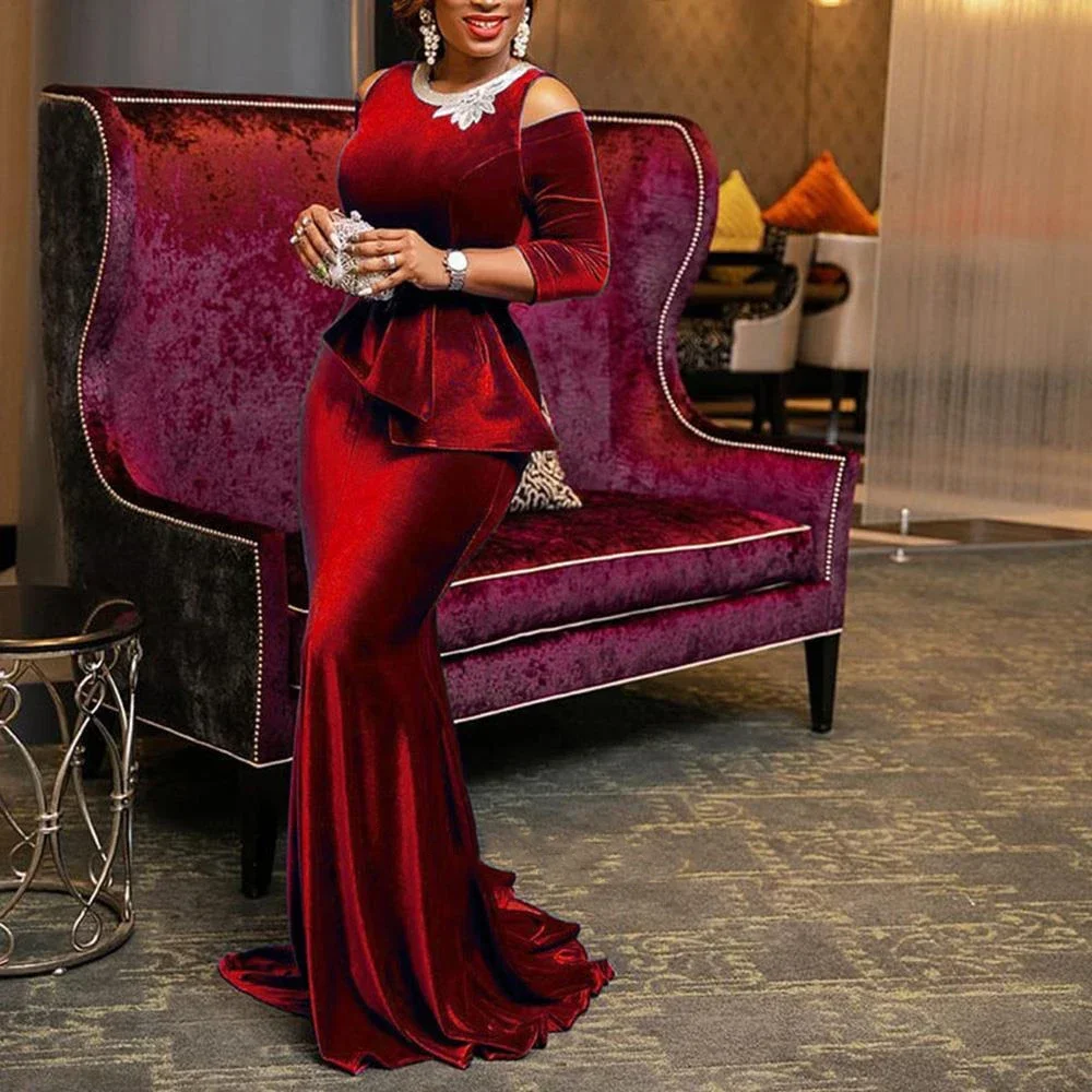 2025 Summer Dress Women Velvet Mermaid Fashion Ankara Red Dress Plus Size Women Robe Ladies Black Sexy Floor Length Maxi Dress