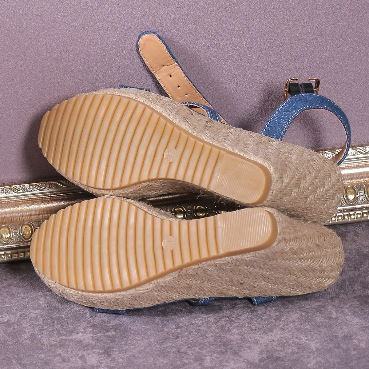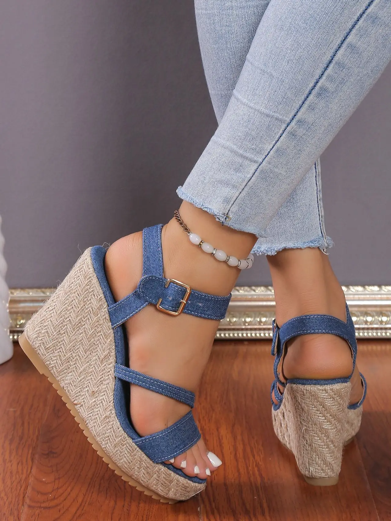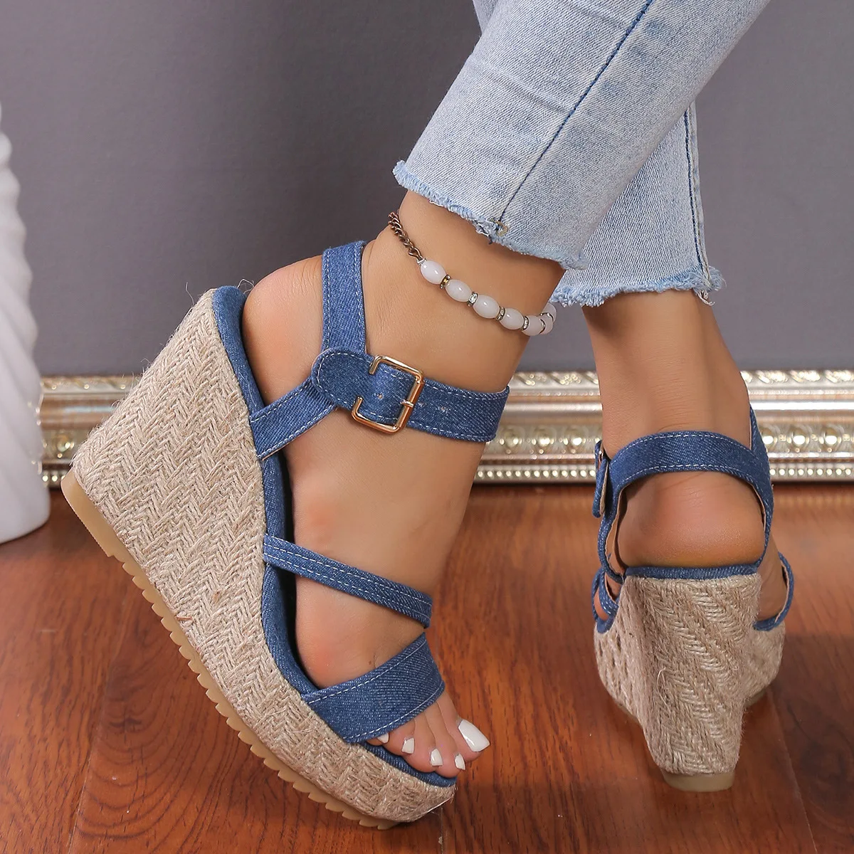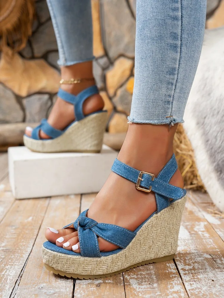 2025 Summer NewPlus-size Wedge Sandal Lady Cowboy Simple Commuting Muffin Bottom Summer Slope with Sandals Women High Heels