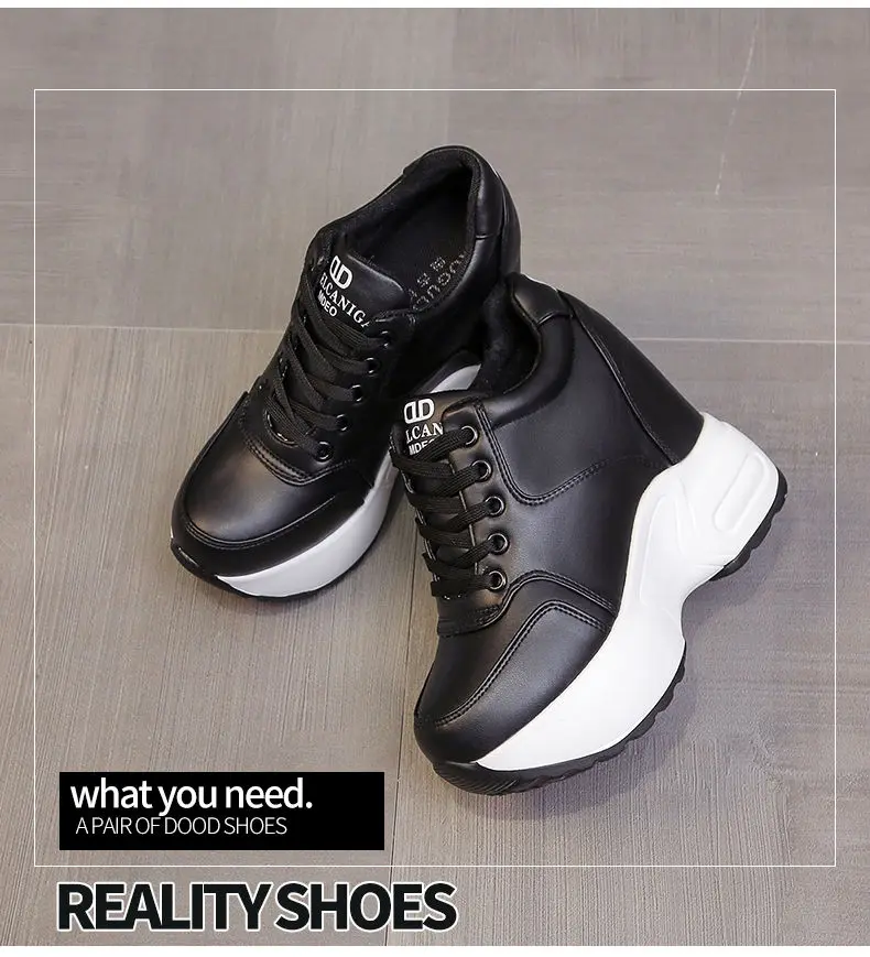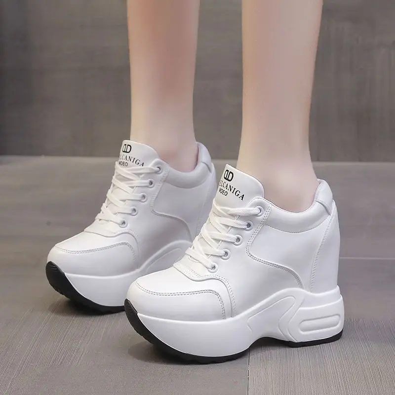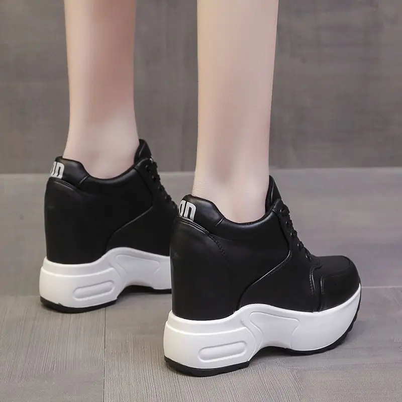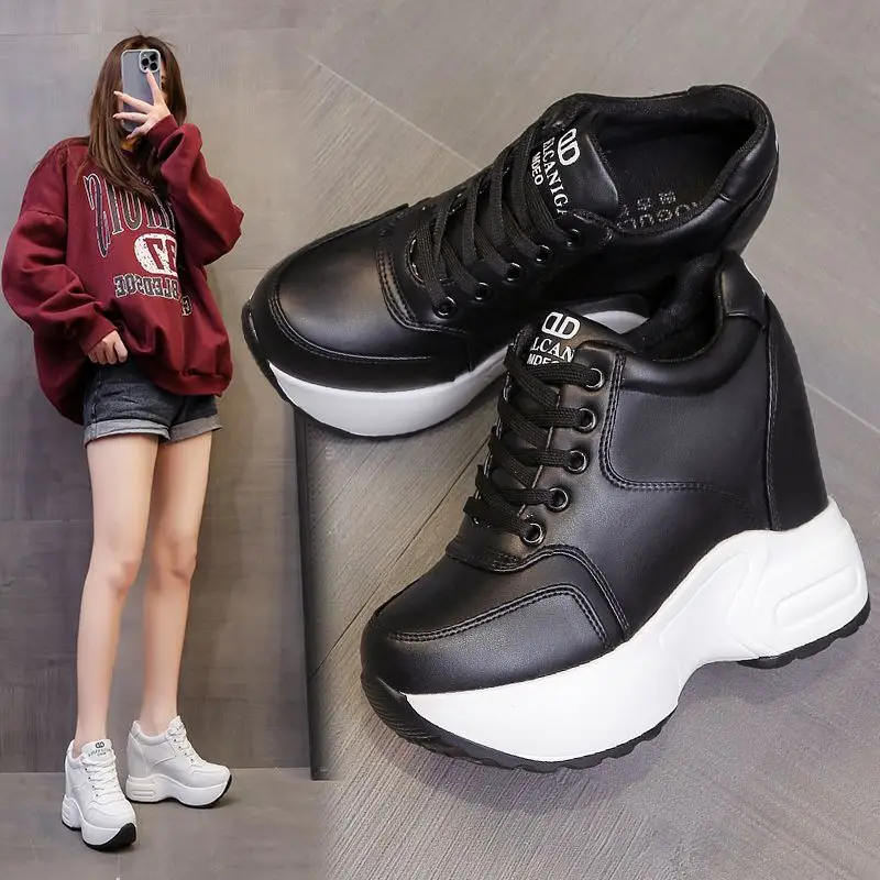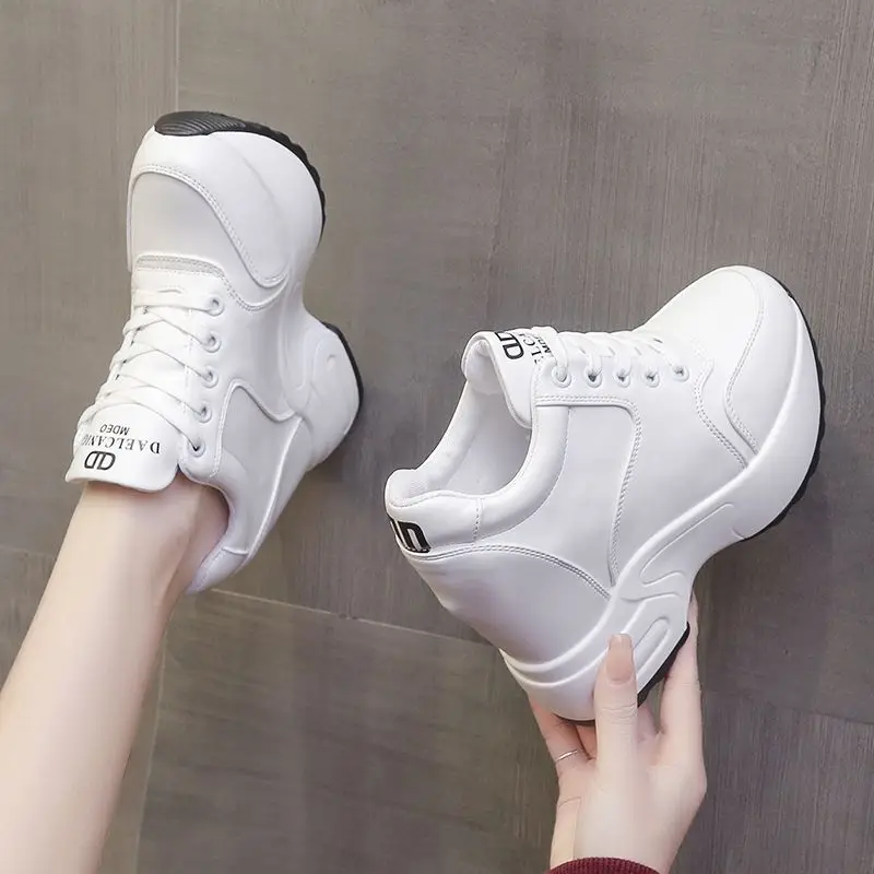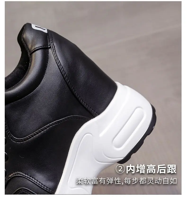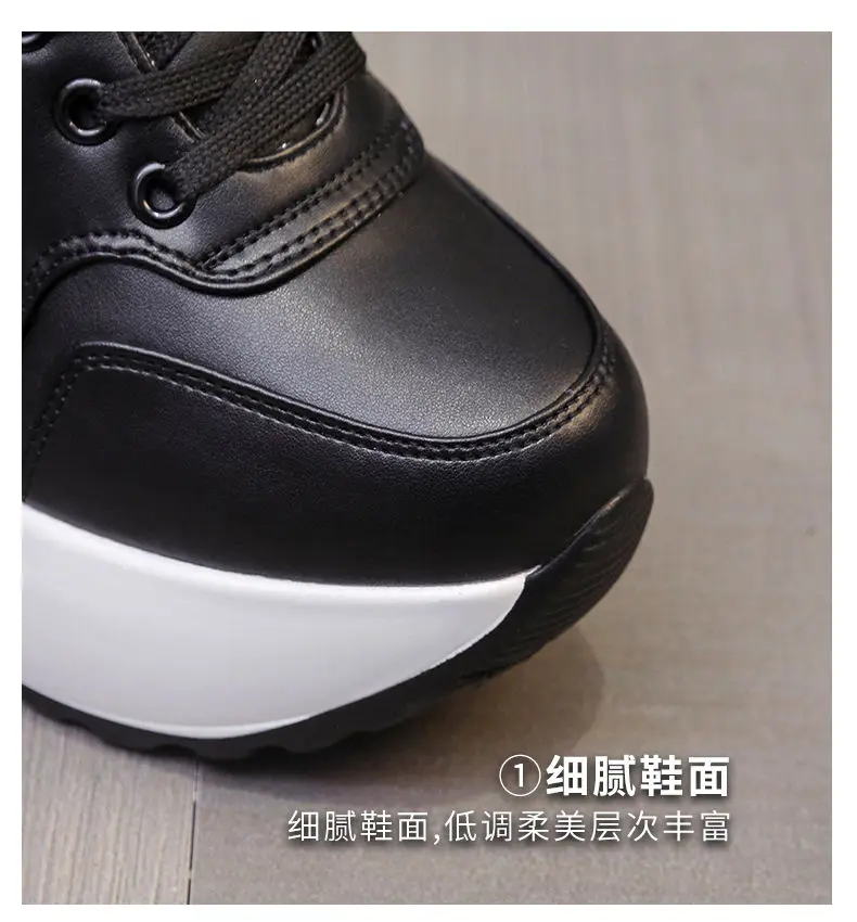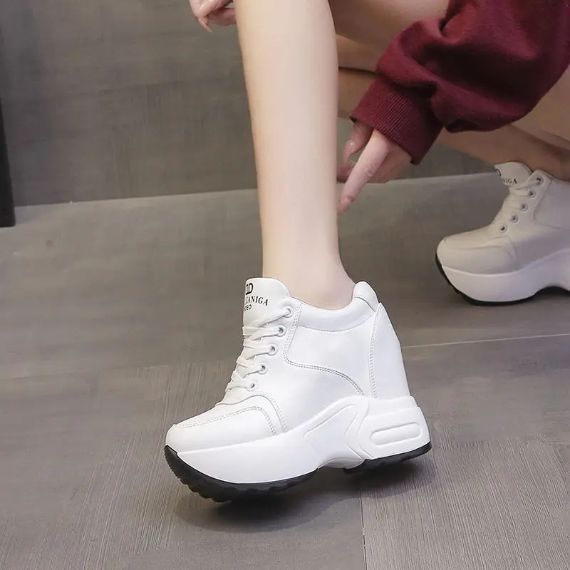 2025 Women’s Ankle Boots Autumn Leather Chunky Shoes Woman Platform Height Increased Sneakers 10CM Thick Sole Wedges White Boots