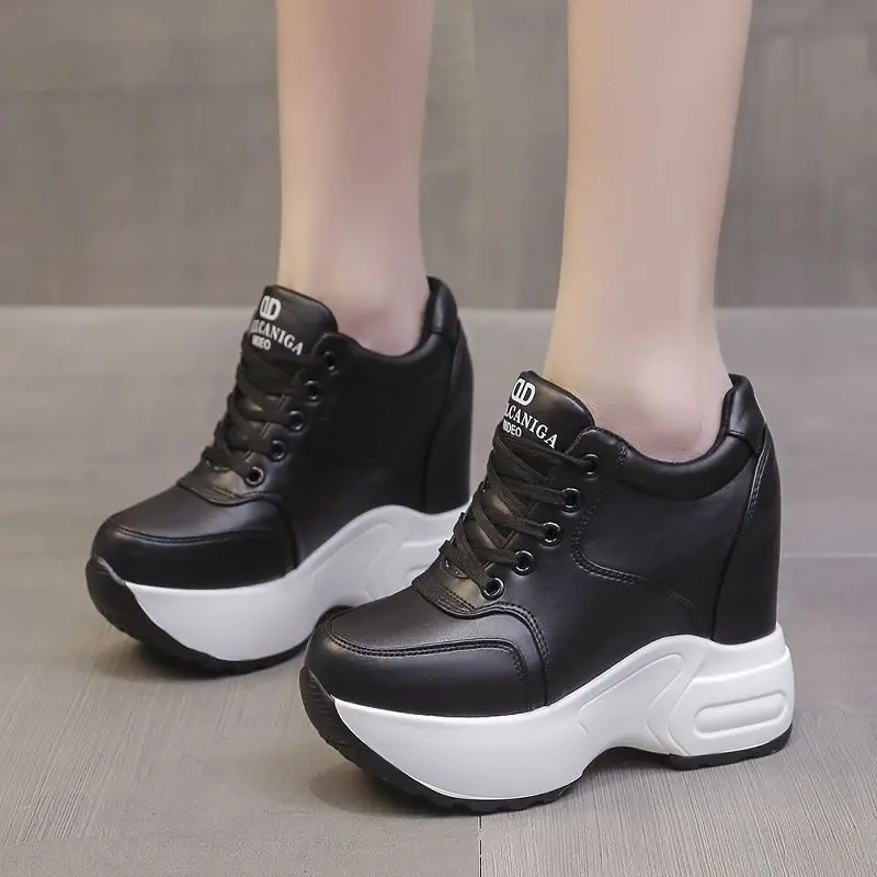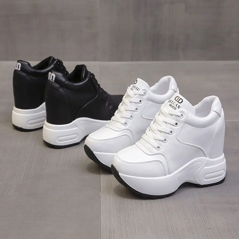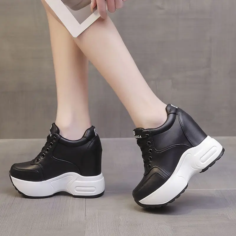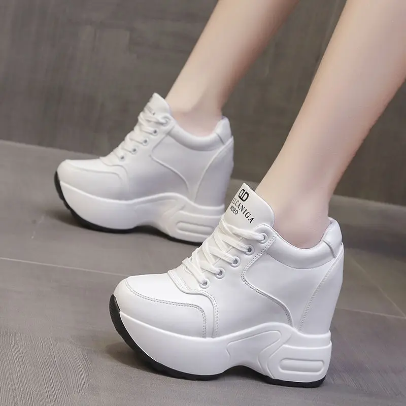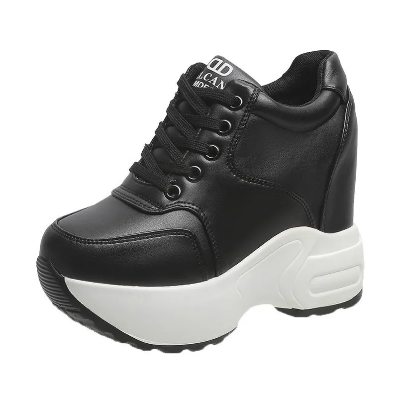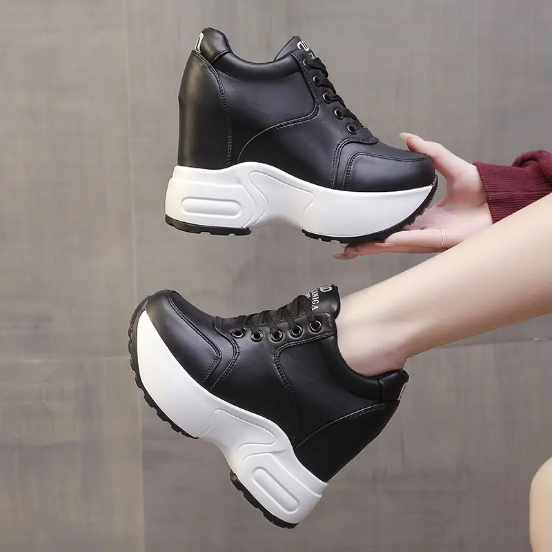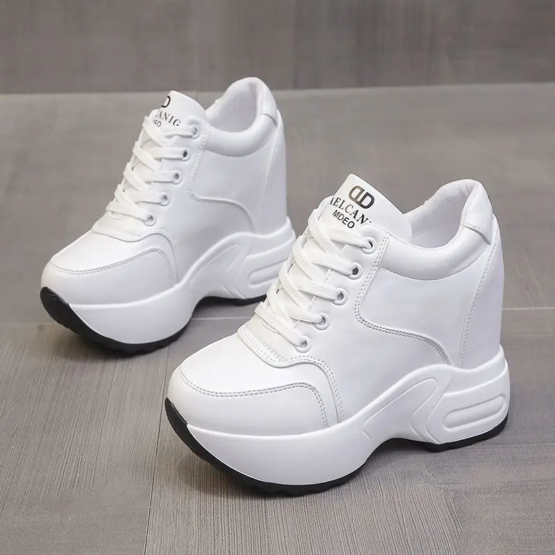 2025 Women’s Ankle Boots Autumn Leather Chunky Shoes Woman Platform Height Increased Sneakers 10CM Thick Sole Wedges White Boots