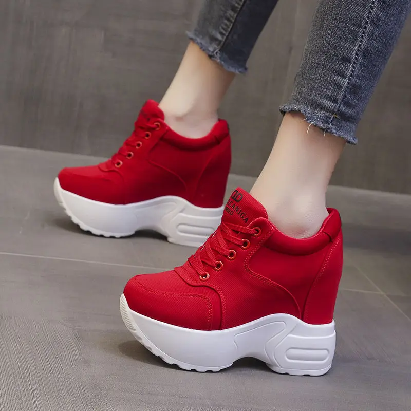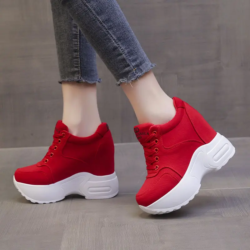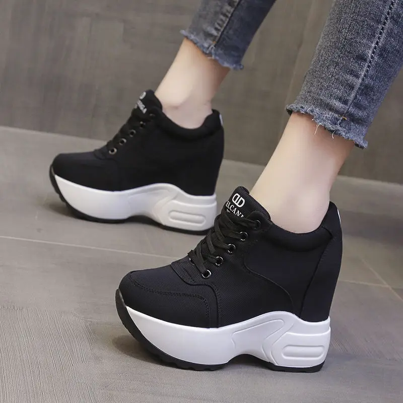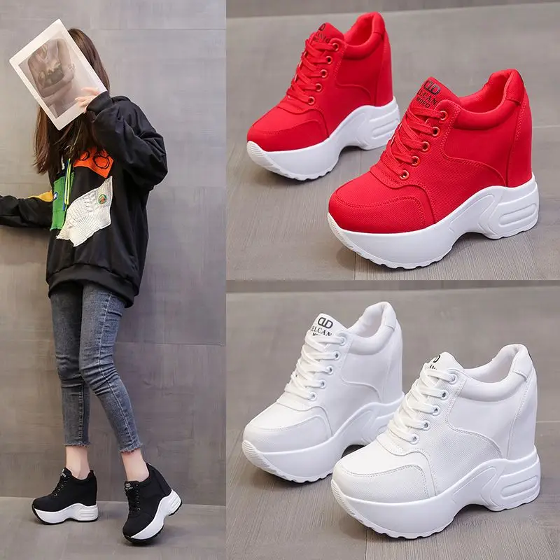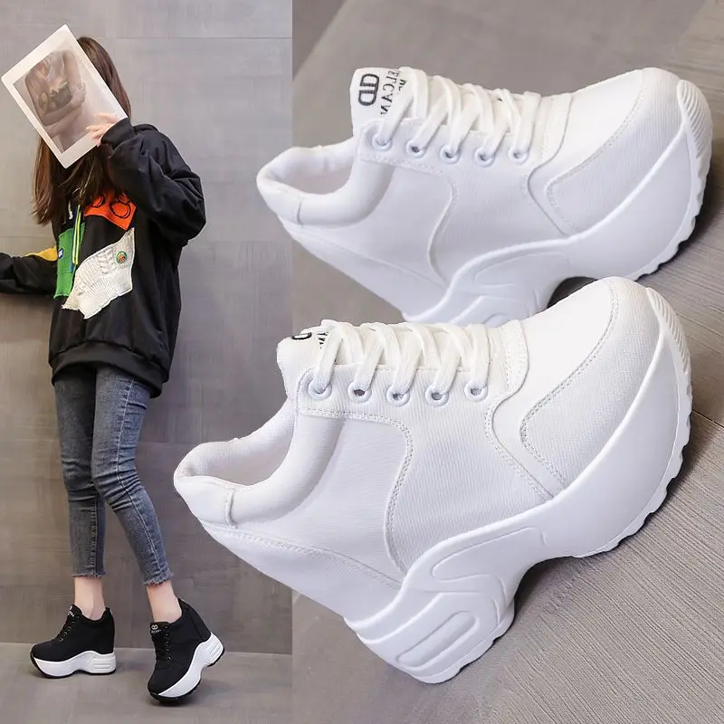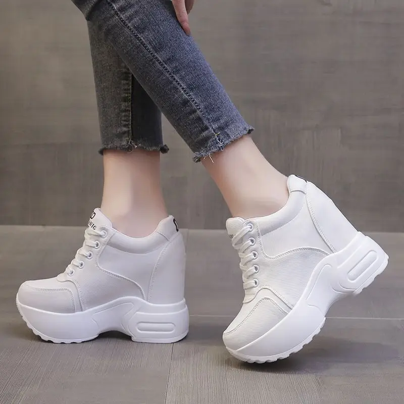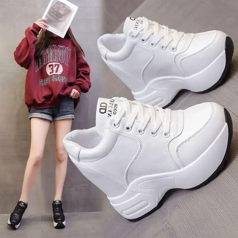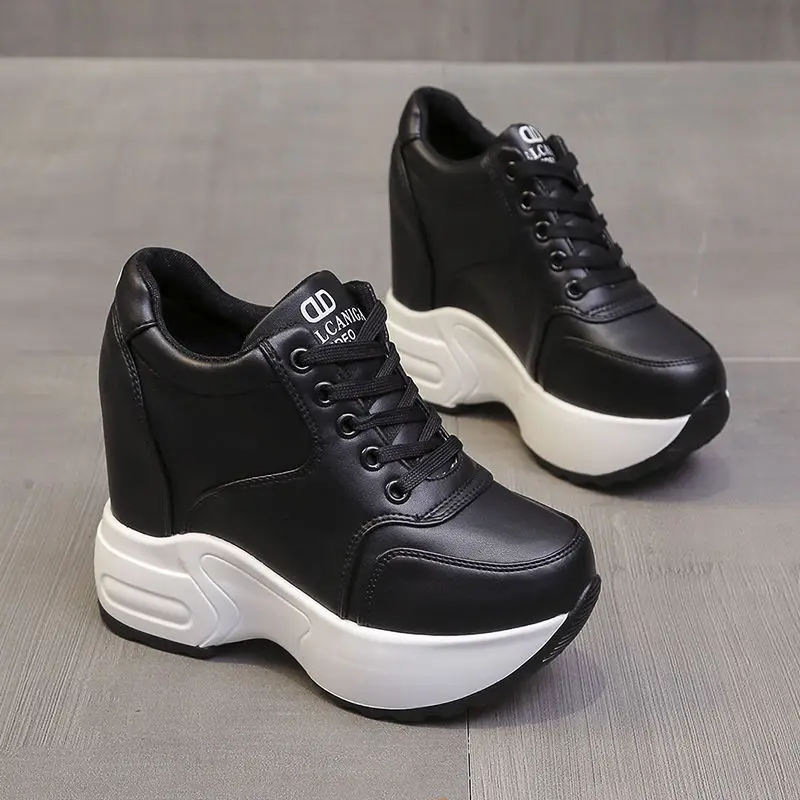 2025 Women’s Ankle Boots Autumn Leather Chunky Shoes Woman Platform Height Increased Sneakers 10CM Thick Sole Wedges White Boots
