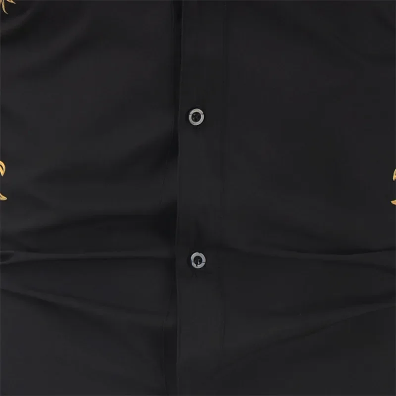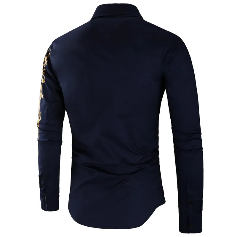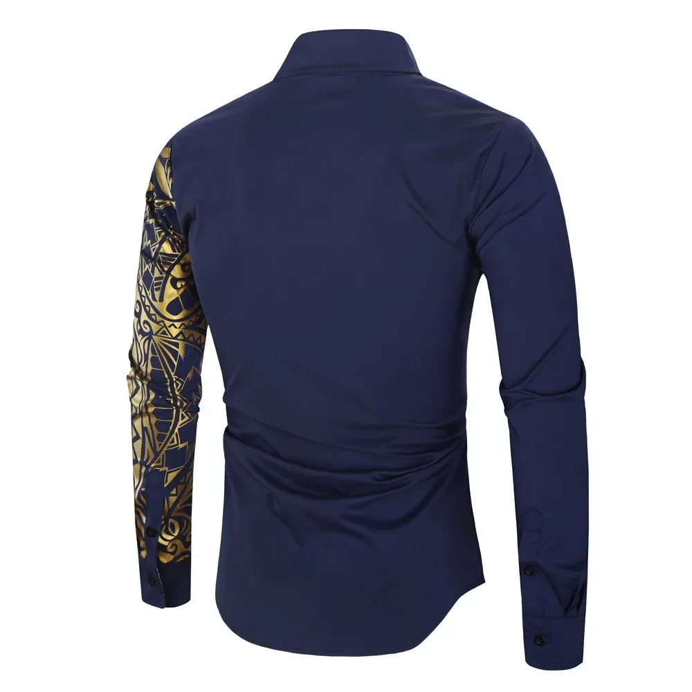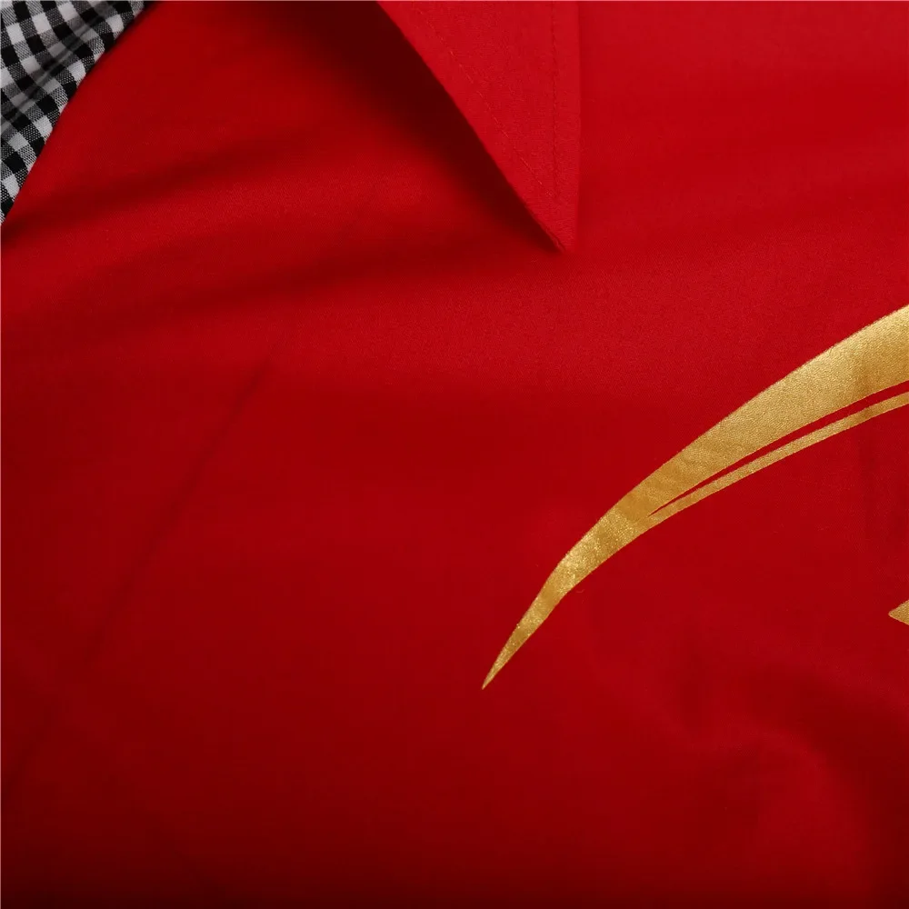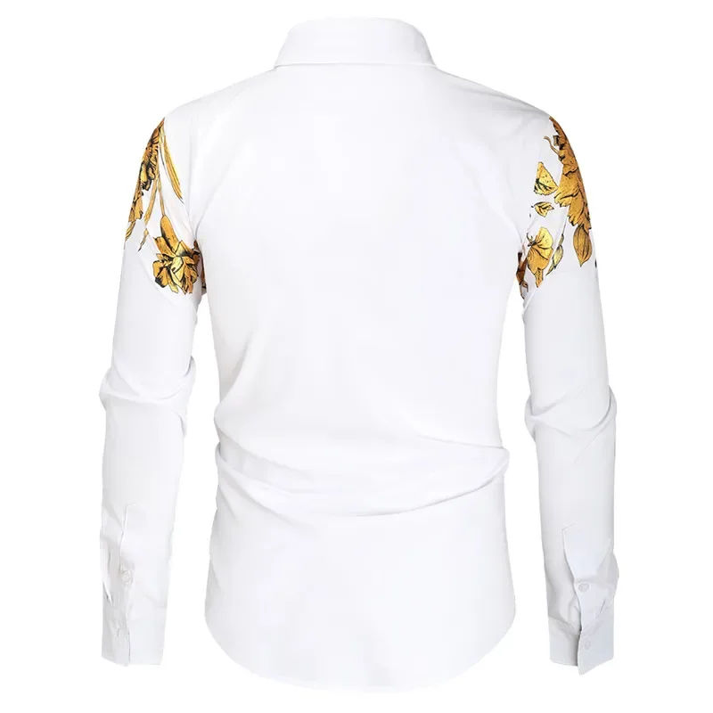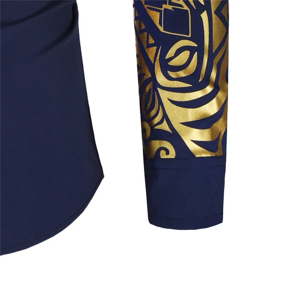 2026 Men’s Bright Red Long-sleeve Shirt, Single-button Lapel with Gold Print, Ideal for Weddings, Parties, or Stage Performances