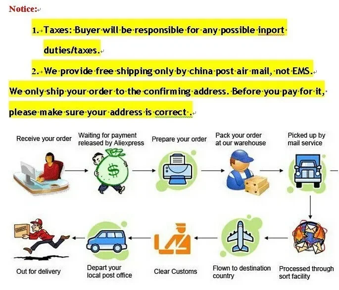 Due to different customs policies of different countries, there might be import duties, taxes and other customs related charges that should be paid by buyers. Buyers bear all responsibility for all extra charges incurred (if any).