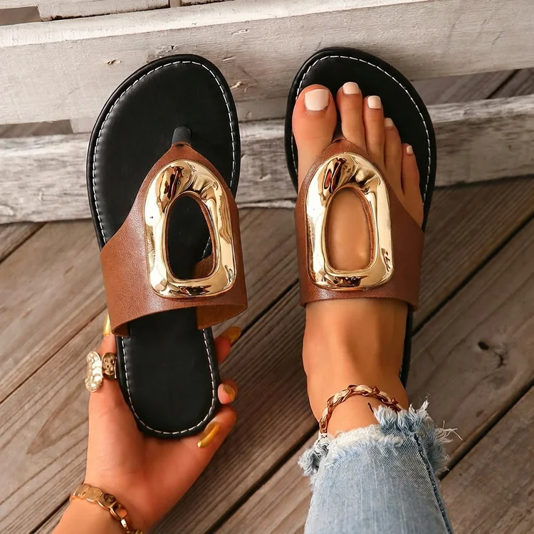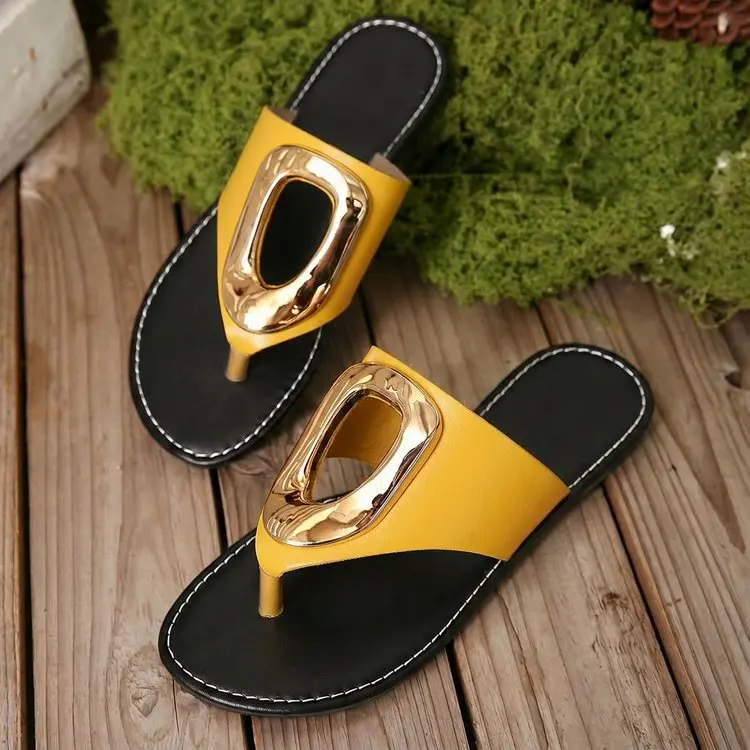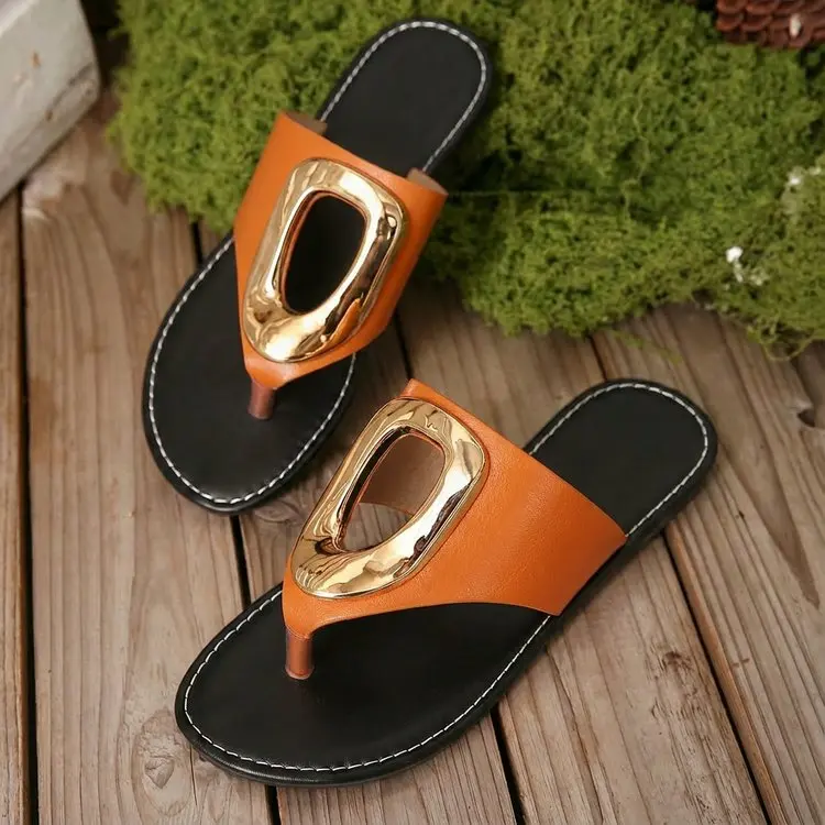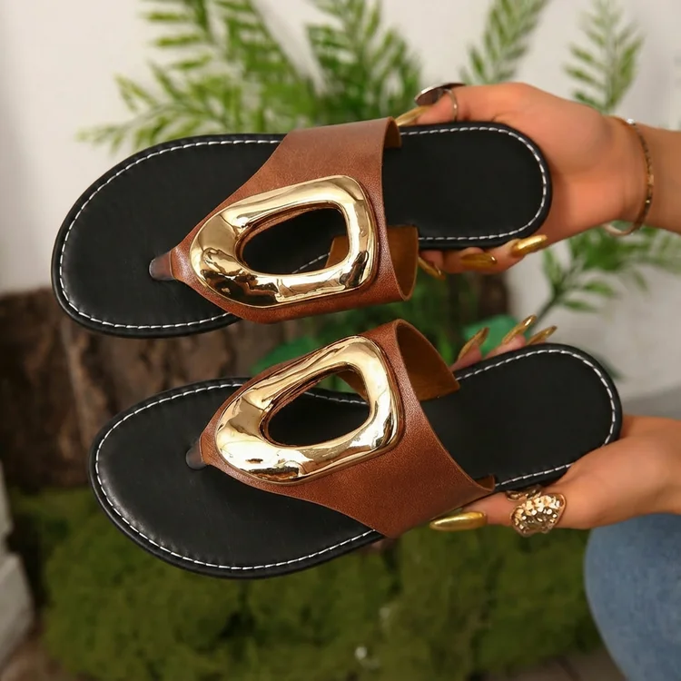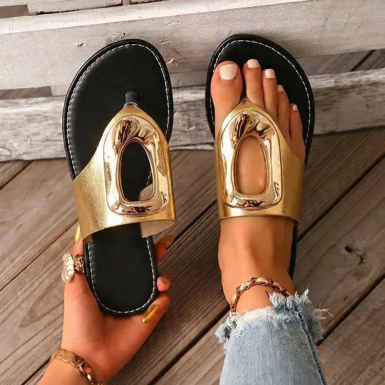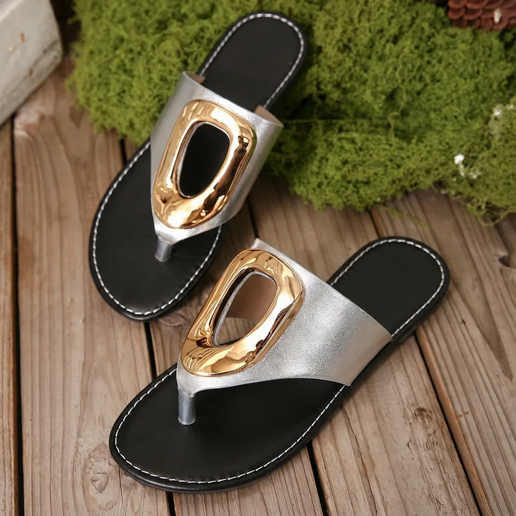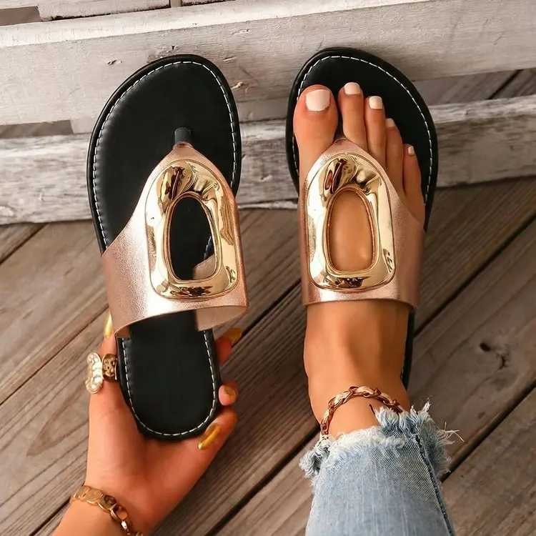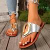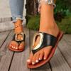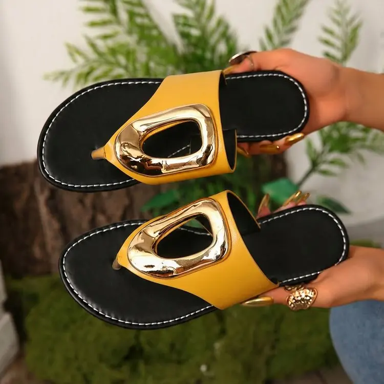 2026 Summer Women’s White Flip Flops Metal Buckle Decor Flat Sandals Comfortable Non-Slip Casual Beach Daily Shoes Soft Sole