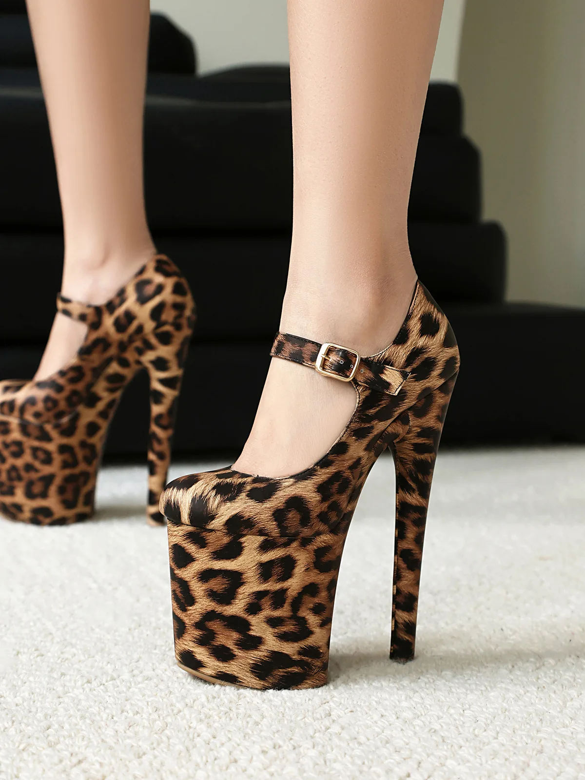 20CM Pole Dance Shoes Model Show Stiletto Buckle Strap Mary Jane High Heels 2025 New Thick Platform Women Leopard Print Pumps