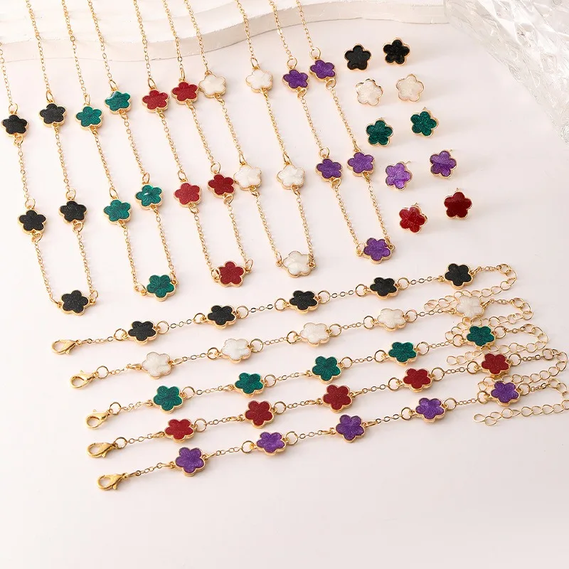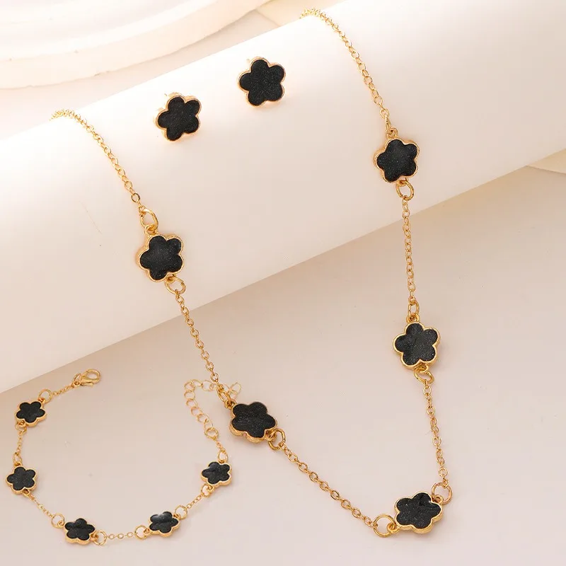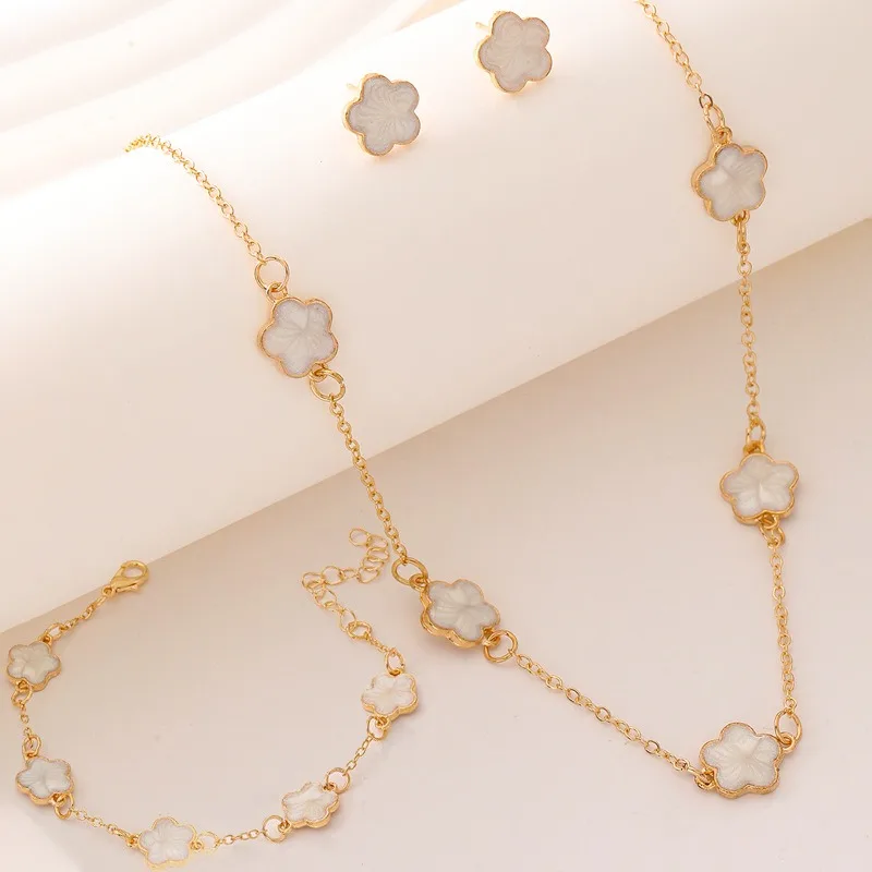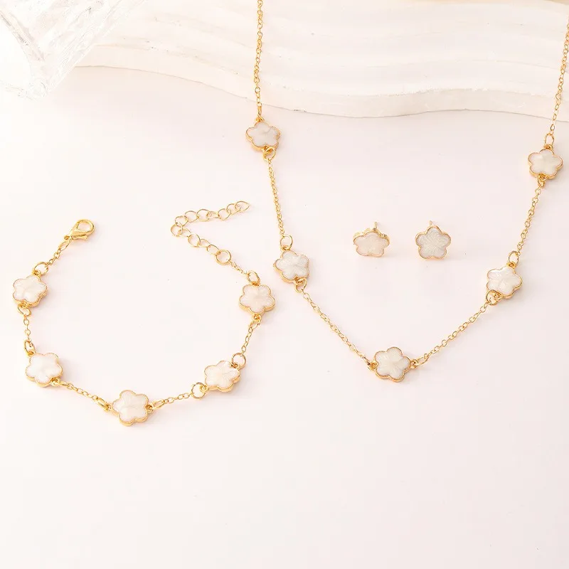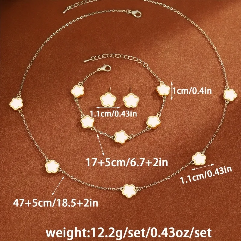 3pcs/set Lucky Five-petal Flower Necklace Bracelet Earrings Set for Women Elegant Clover Fashion Party Jewelry Gifts Accessories