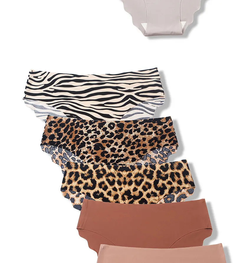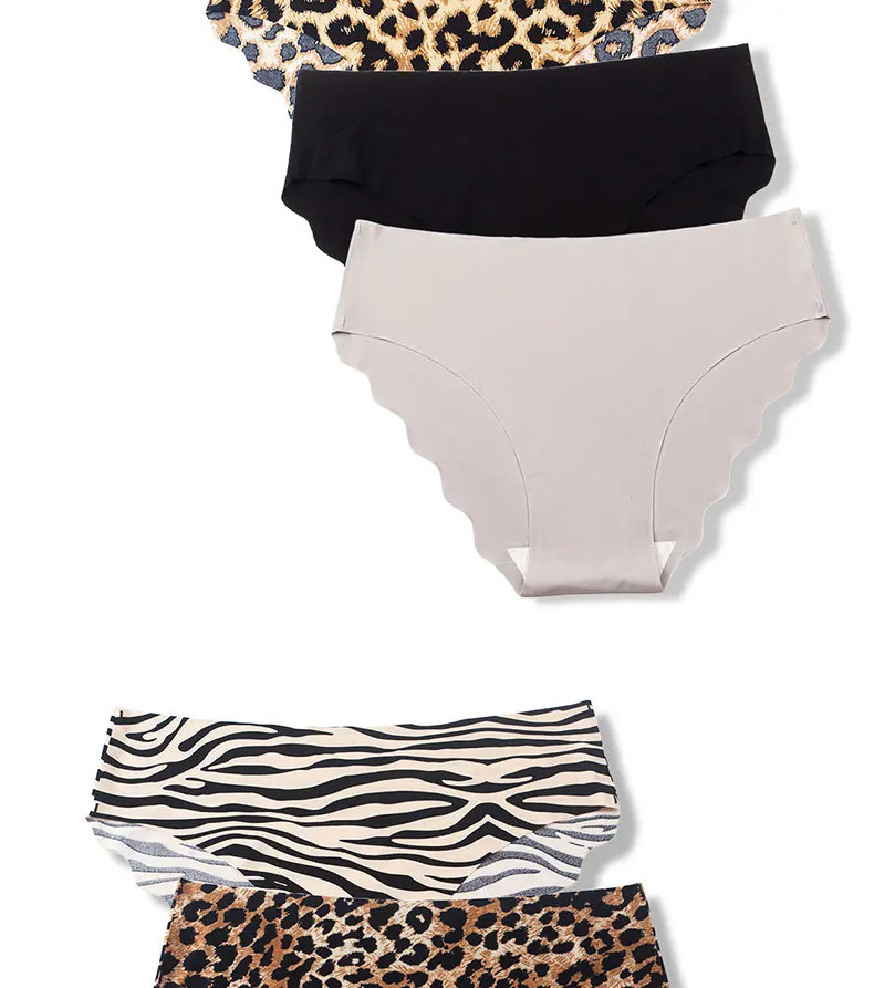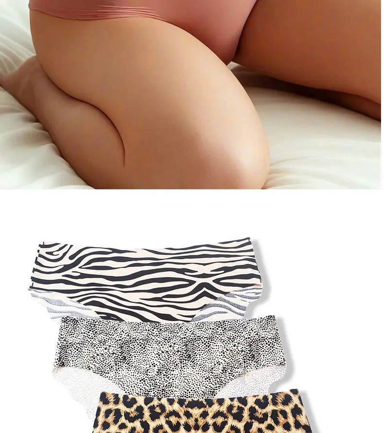 3pcs/set Women’s Seamless Mid-Waist Underwear Breathable Sports European and American Style Triangle Panties Zebra Pattern