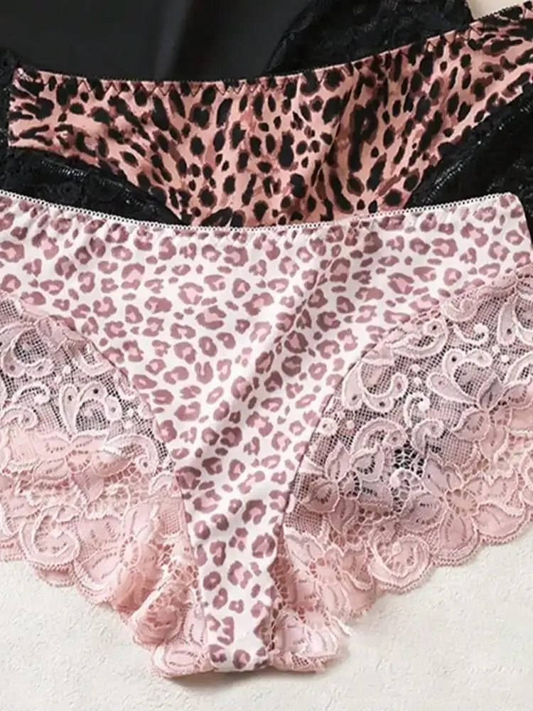 3PCS sexy leopard panties print lace patchwork pants women’s underwear for casual vacation seamless and comfortable women’s triangle pants