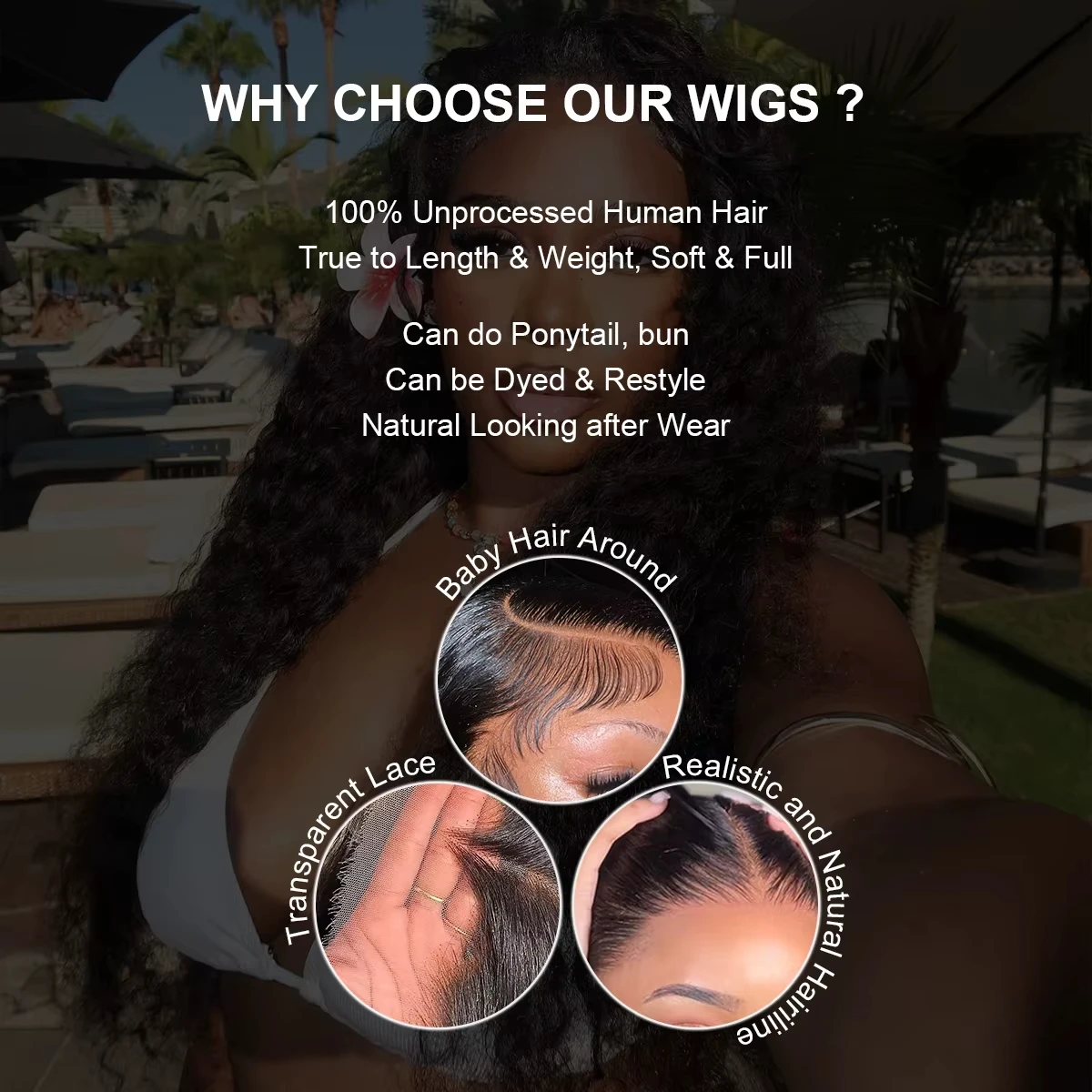 40 42 Inch Water Wave Curly Lace Front Wigs 13×4 13×6 HD Deep Wave Lace Frontal Wig Human Hair Wigs For Women 250%
