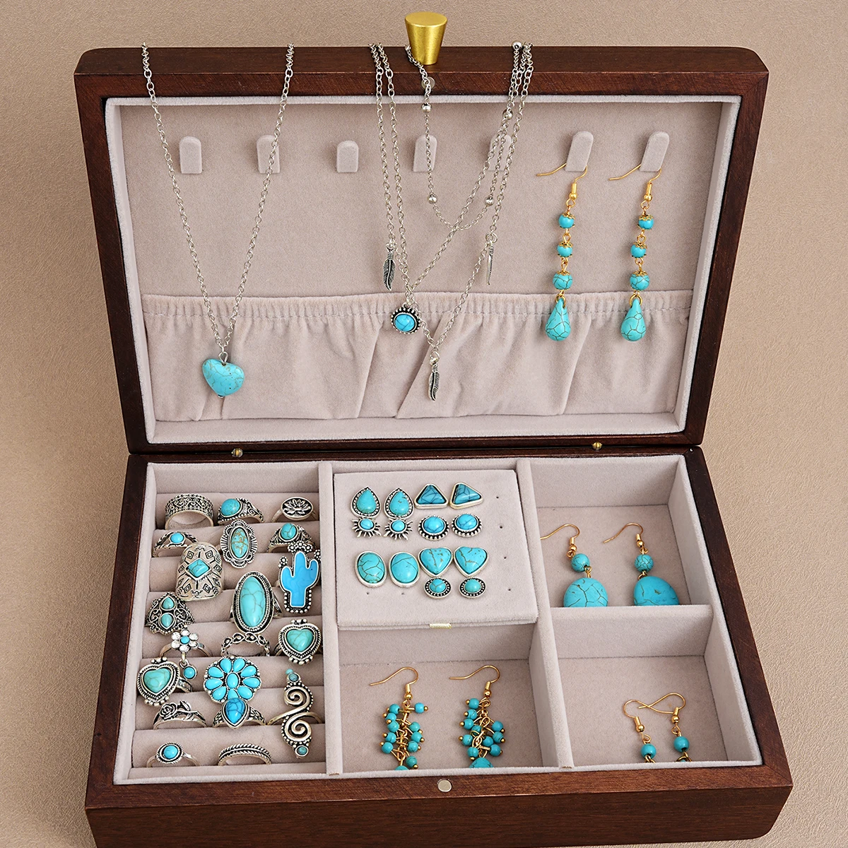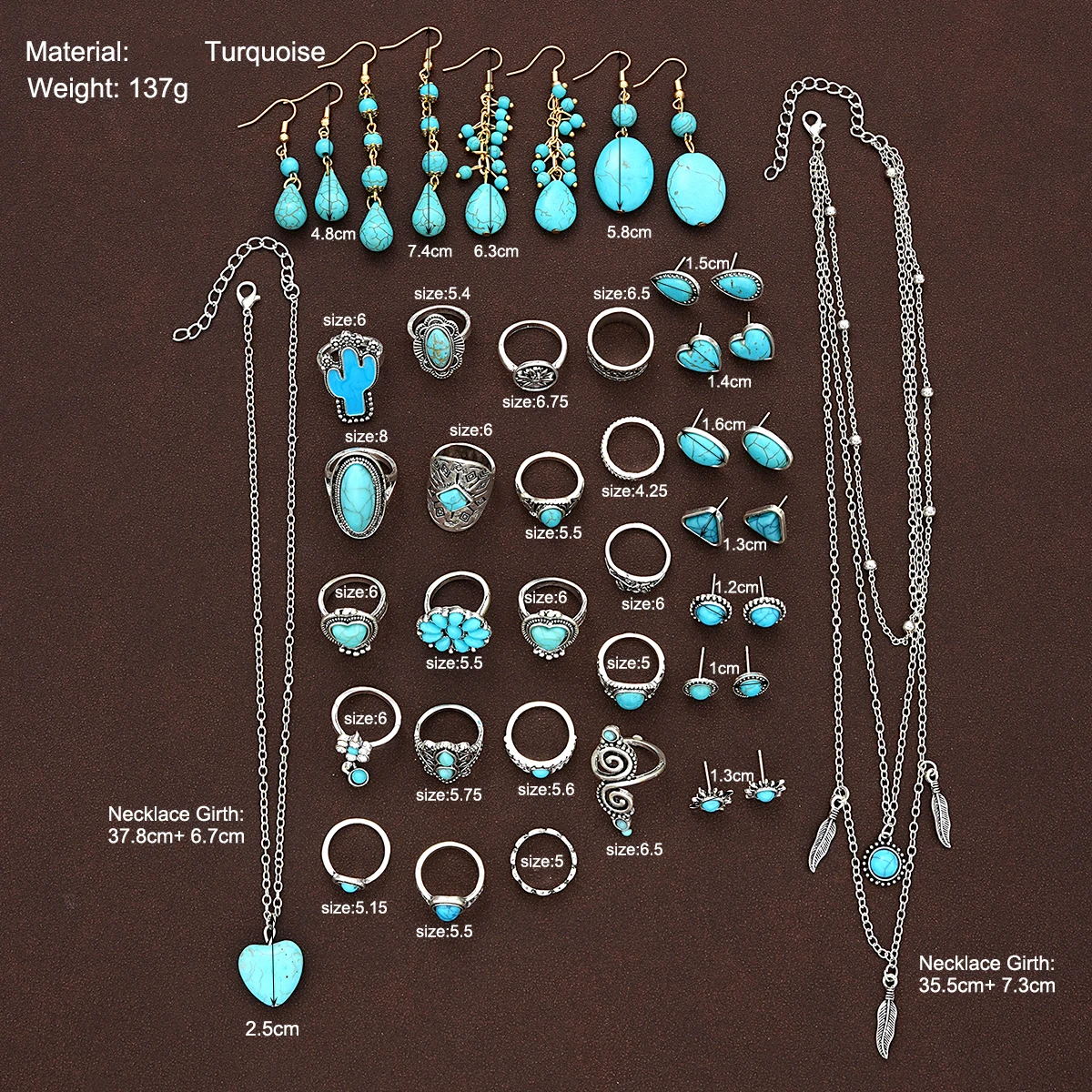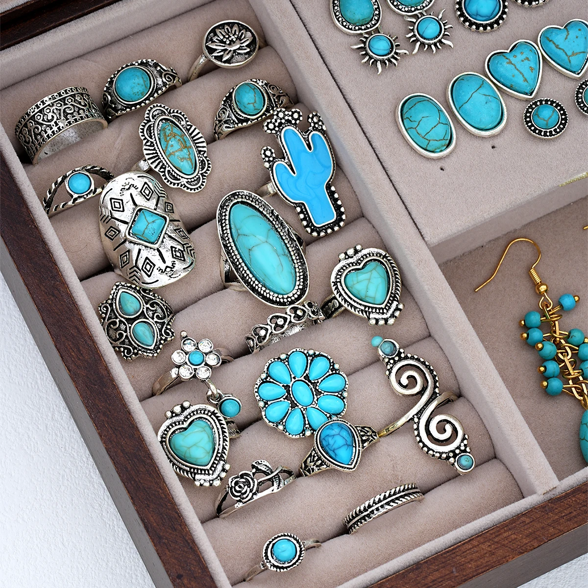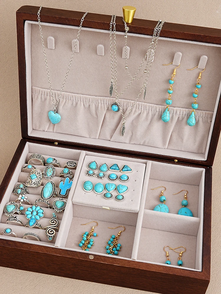44 Pcs Bohemian Turquoise Jewelry Set For Women Vintage Sunflower Heart Earring Ring Necklace Set Natural Turquoise Jewelry Gift