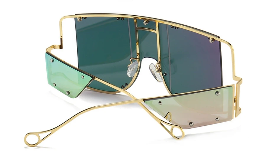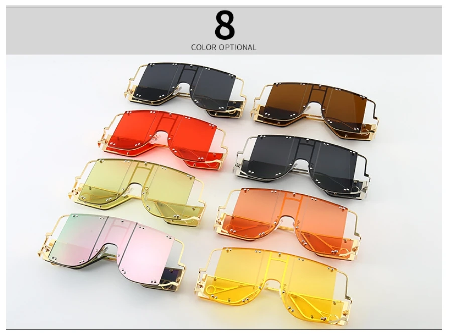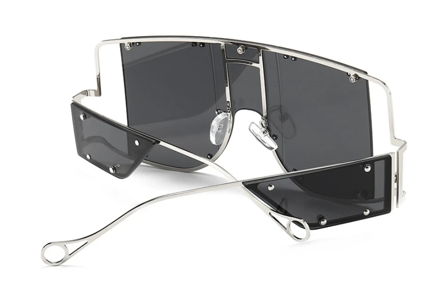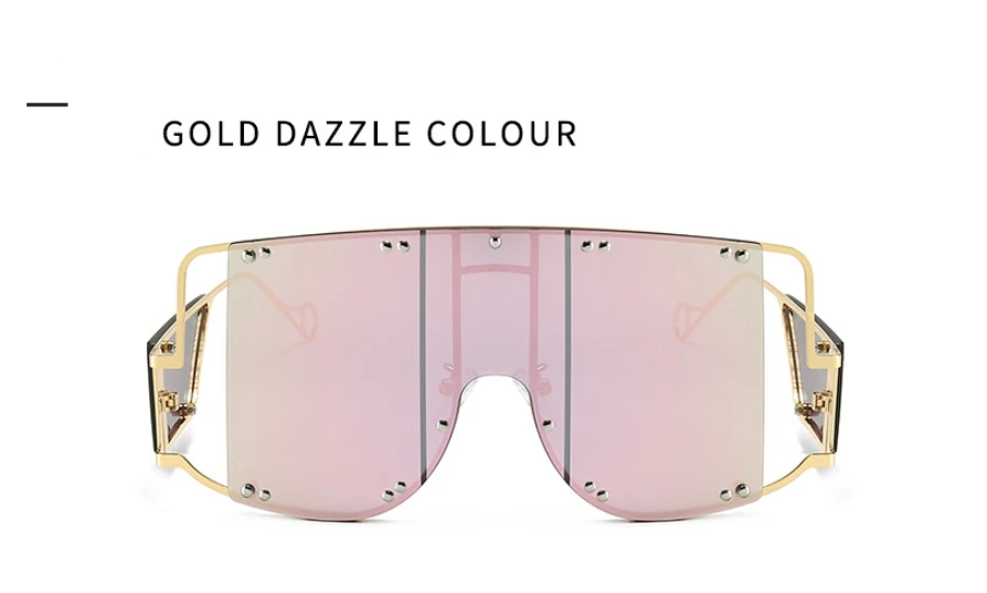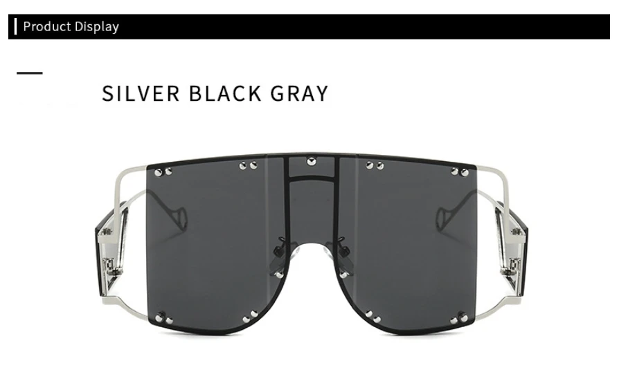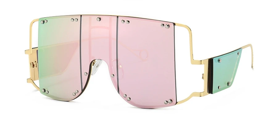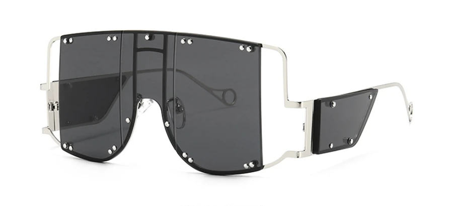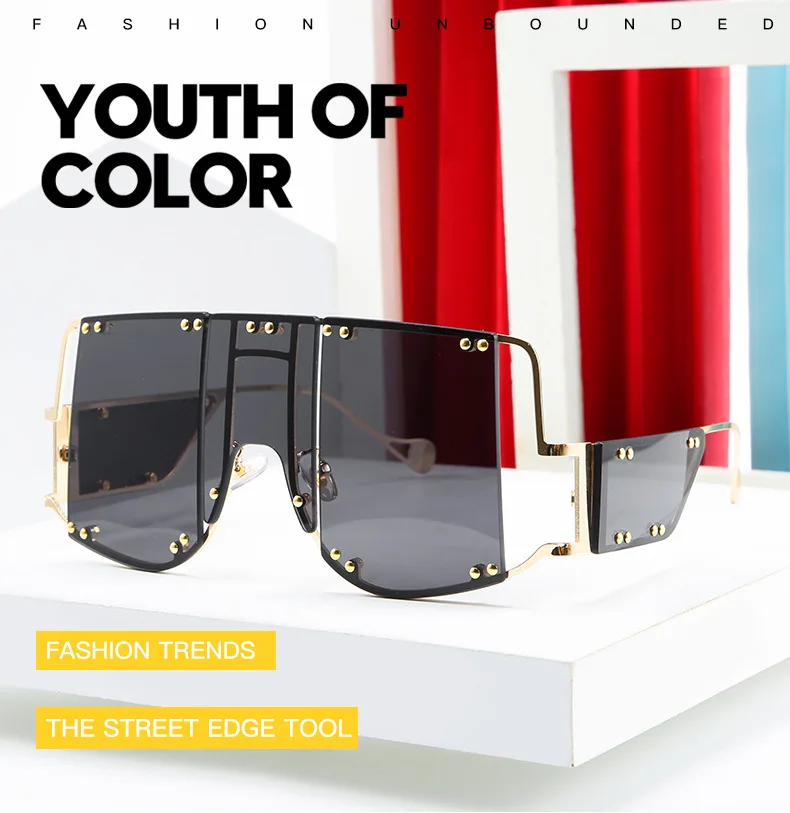 46215 Metal Rivet Eyewear Oversized Mirror Square Sunglasses Men Women Shades Glasses Trend Unique Female UV400