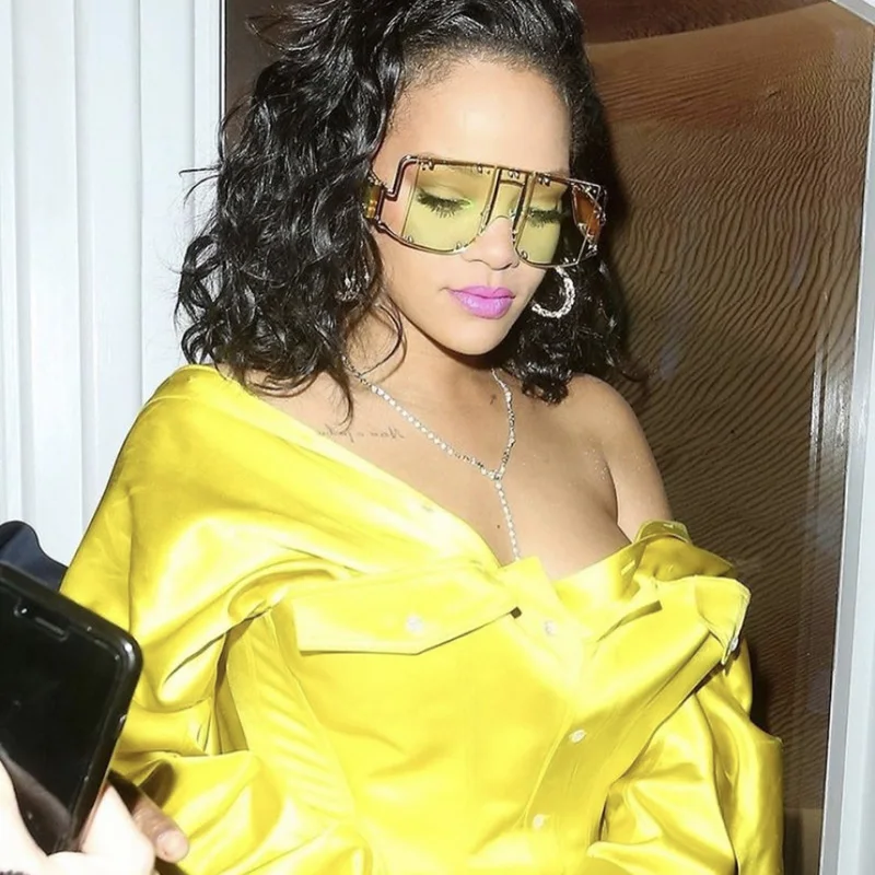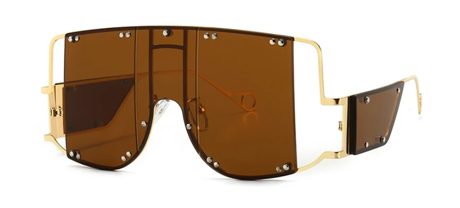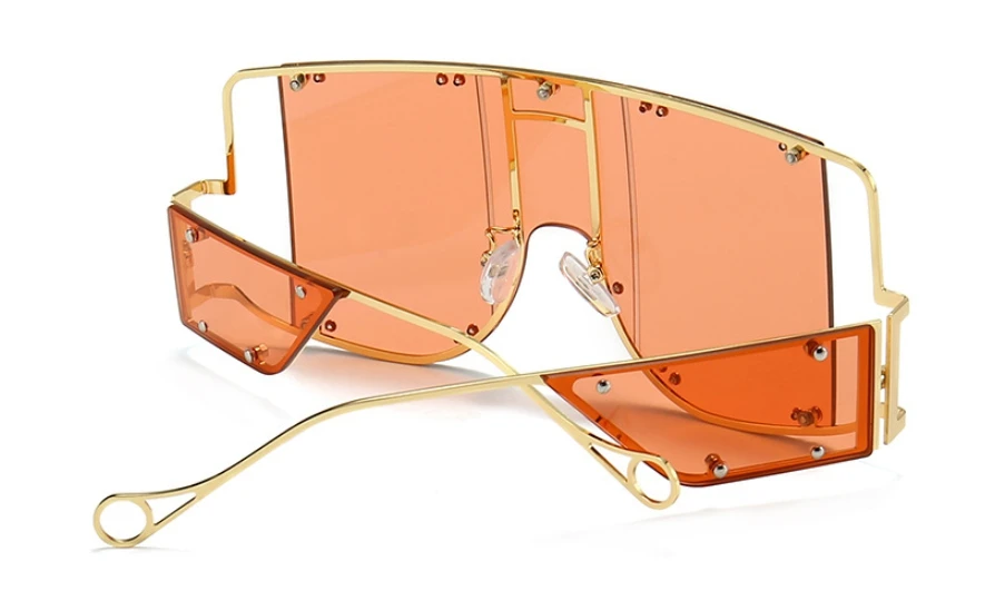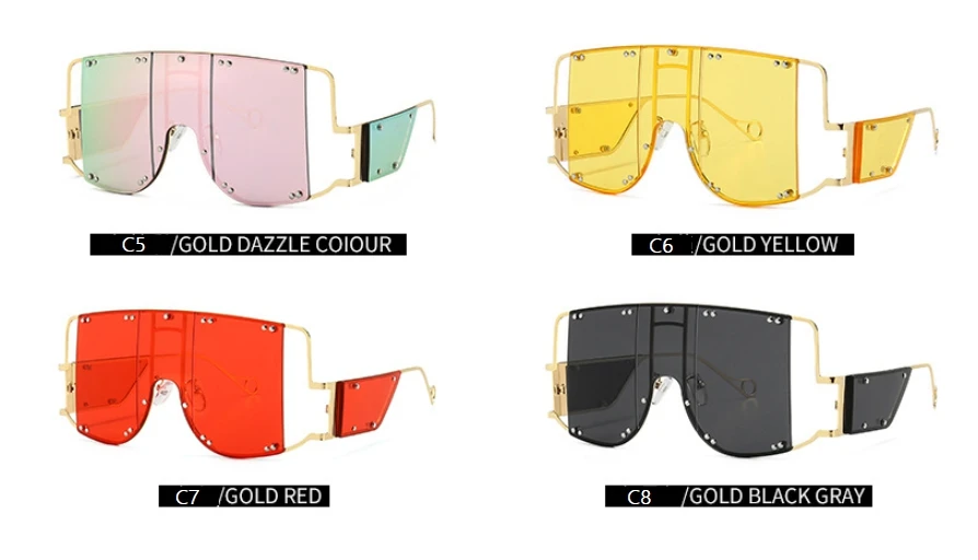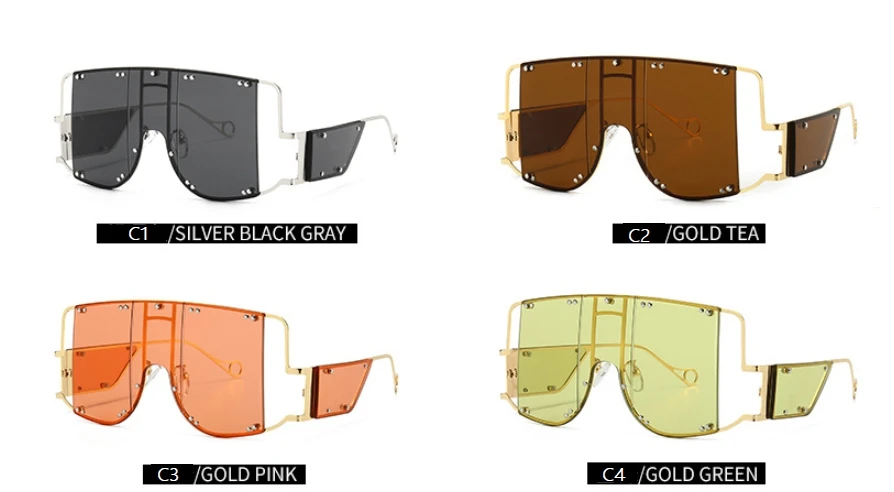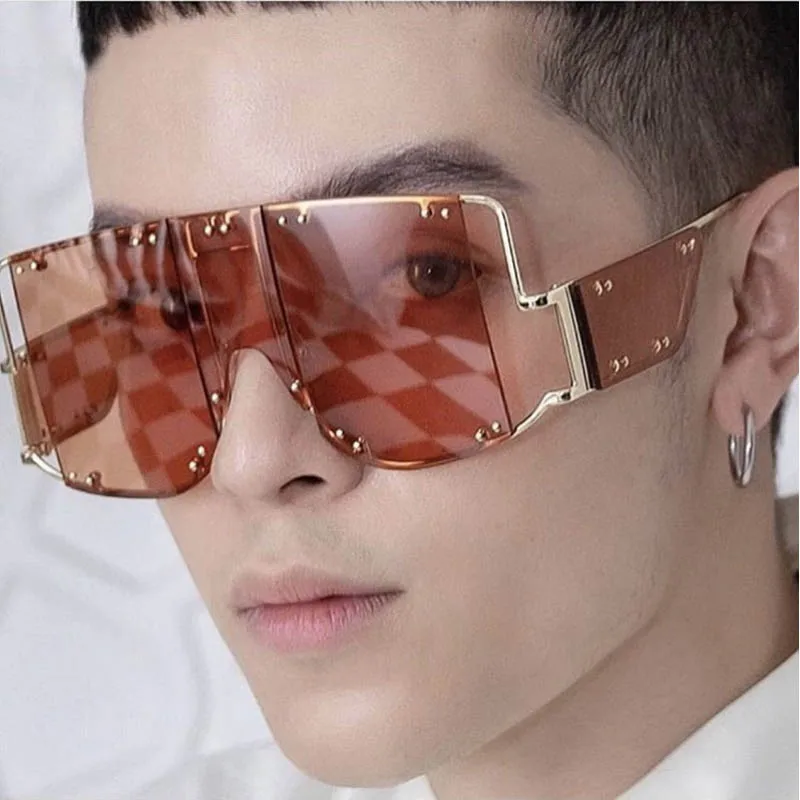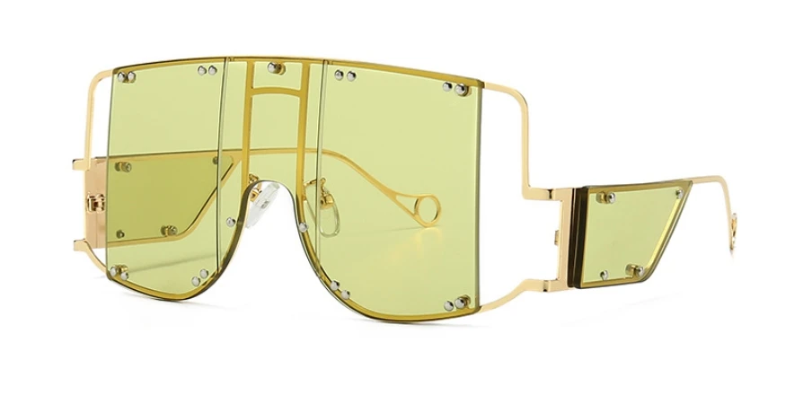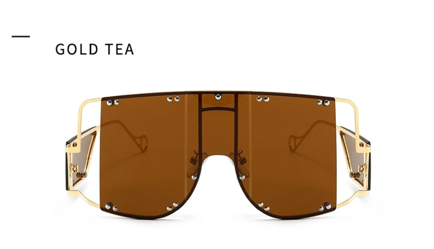 46215 Metal Rivet Eyewear Oversized Mirror Square Sunglasses Men Women Shades Glasses Trend Unique Female UV400