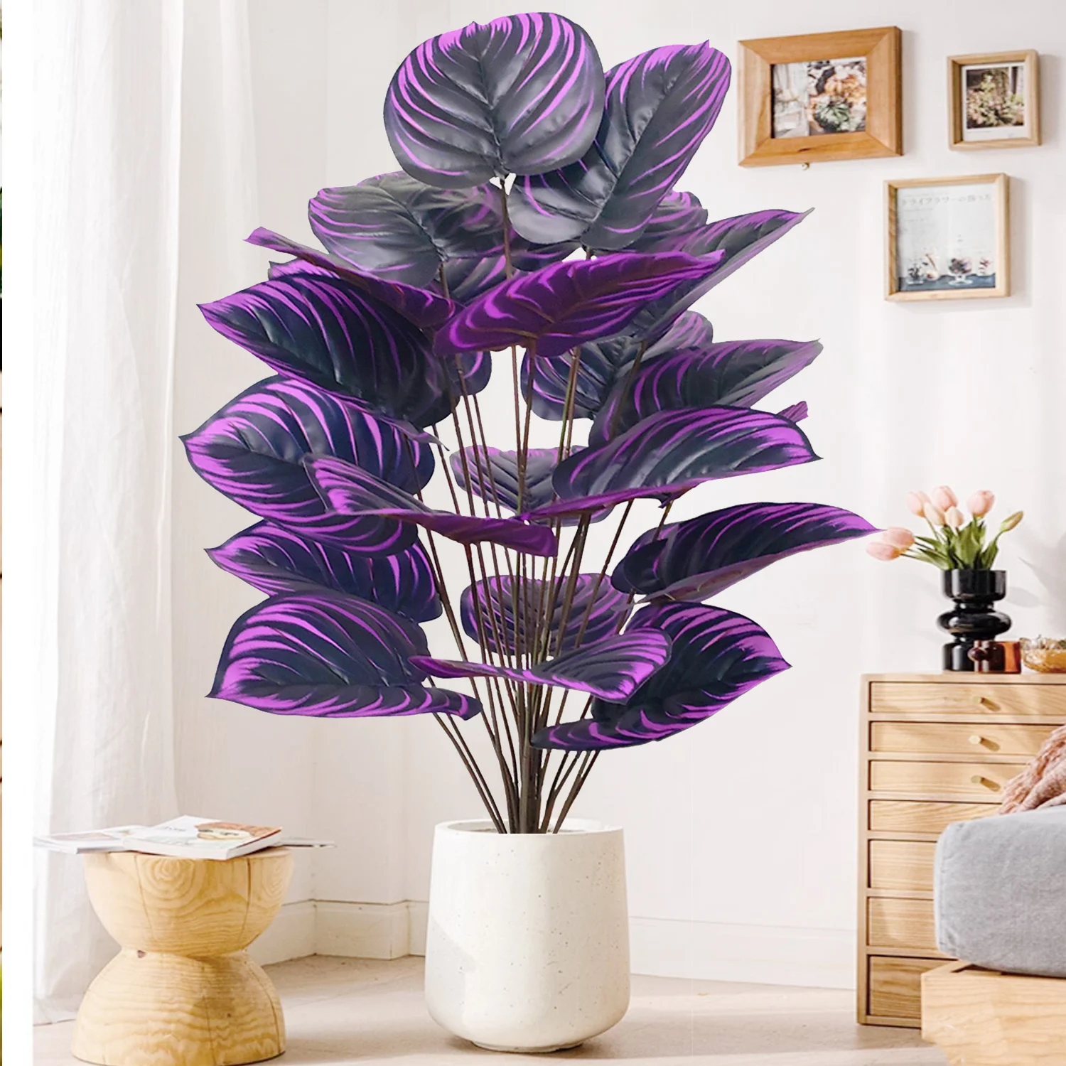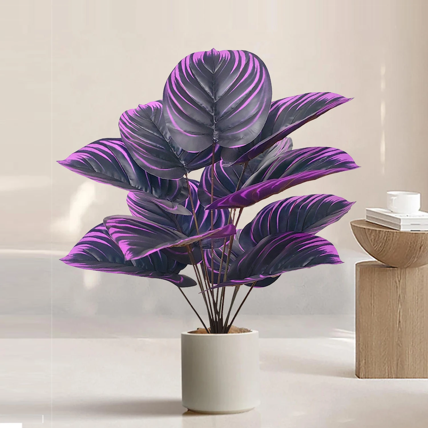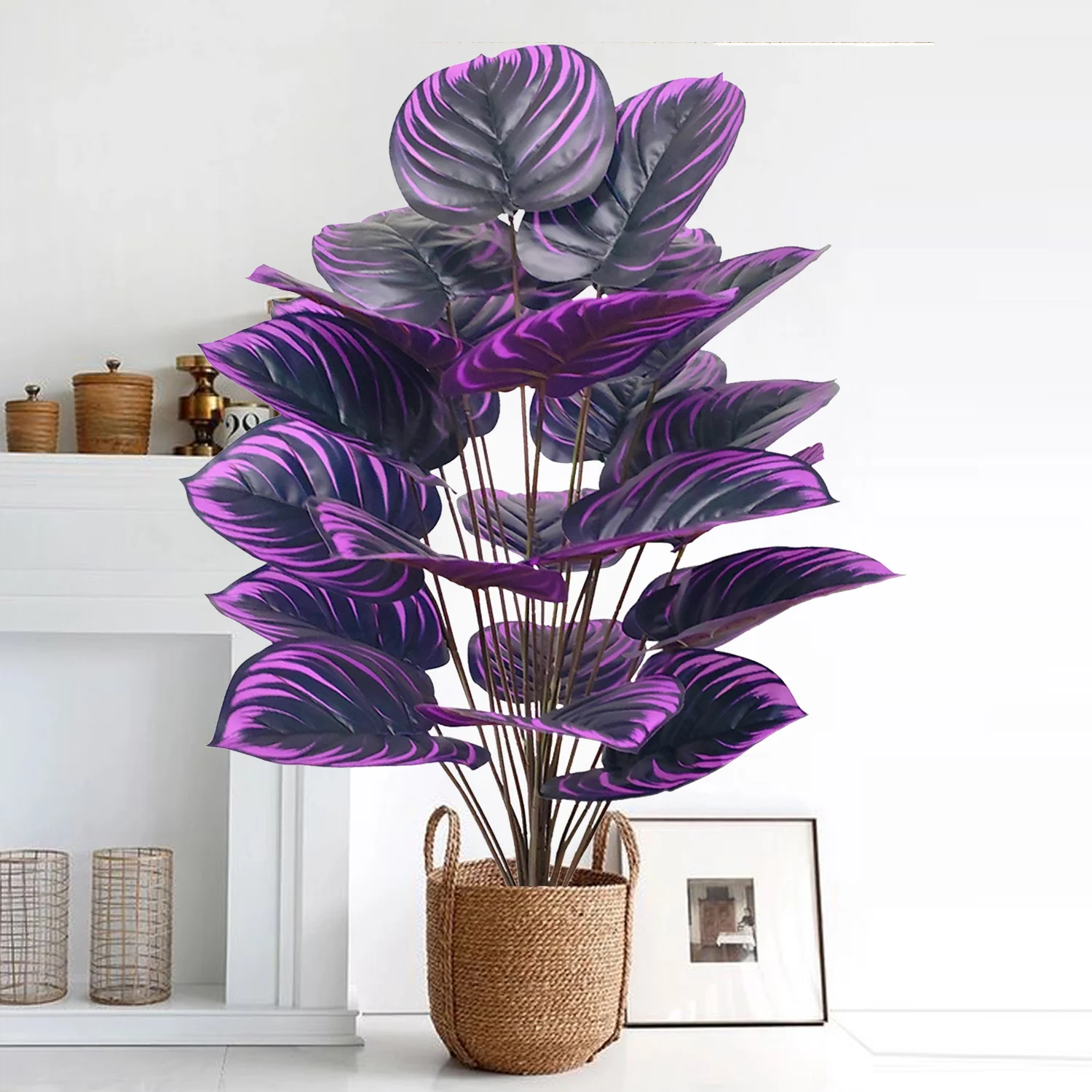 58-82-130cm/51,18in Artificial Pink Colorful Leaves Purple Water Lily Apple Leaf Ornamental Plants for Home Decoration