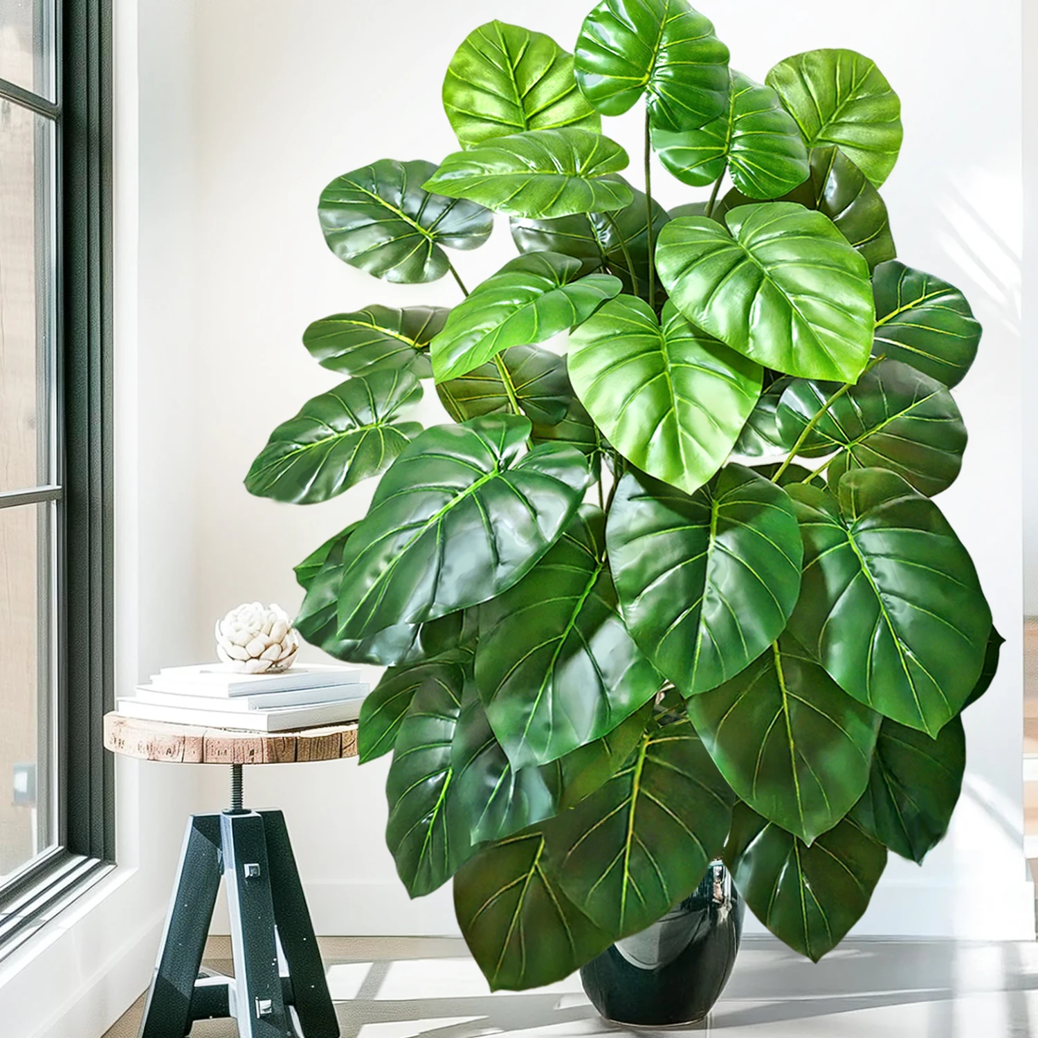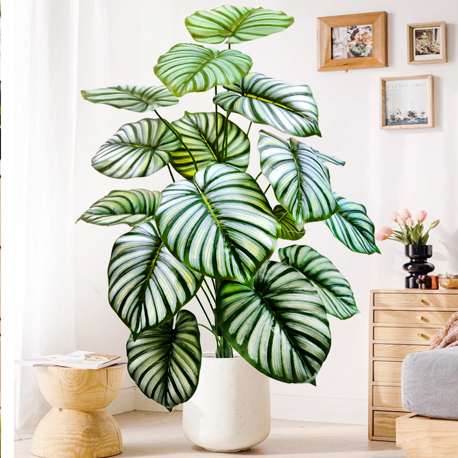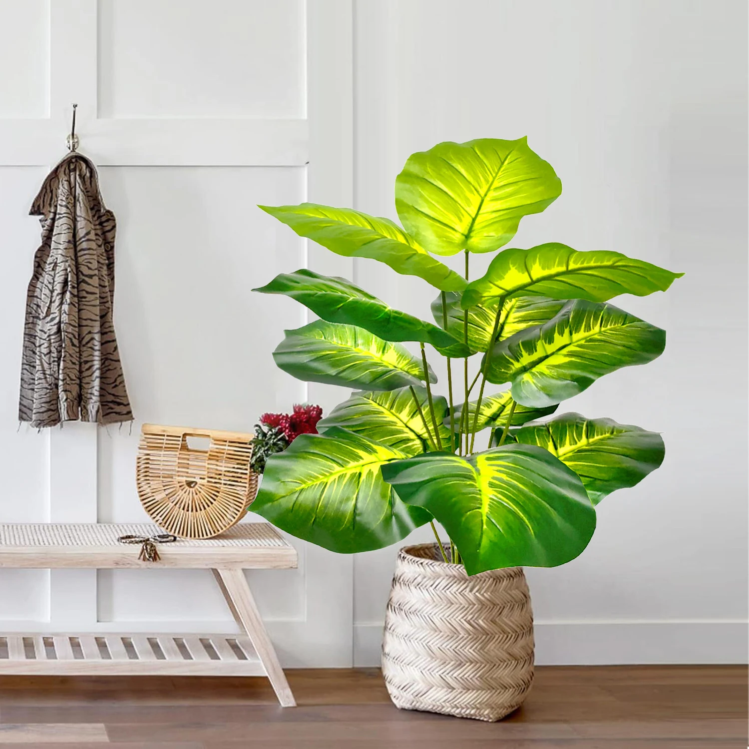 58-82-130cm/51,18in Artificial Pink Colorful Leaves Purple Water Lily Apple Leaf Ornamental Plants for Home Decoration