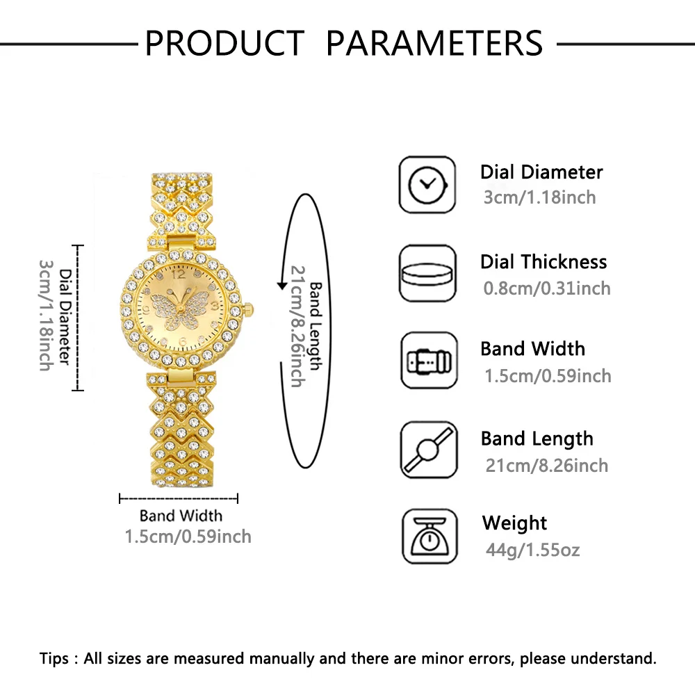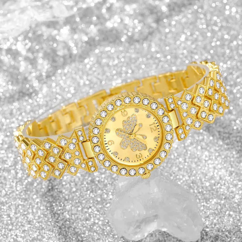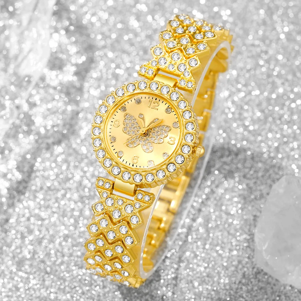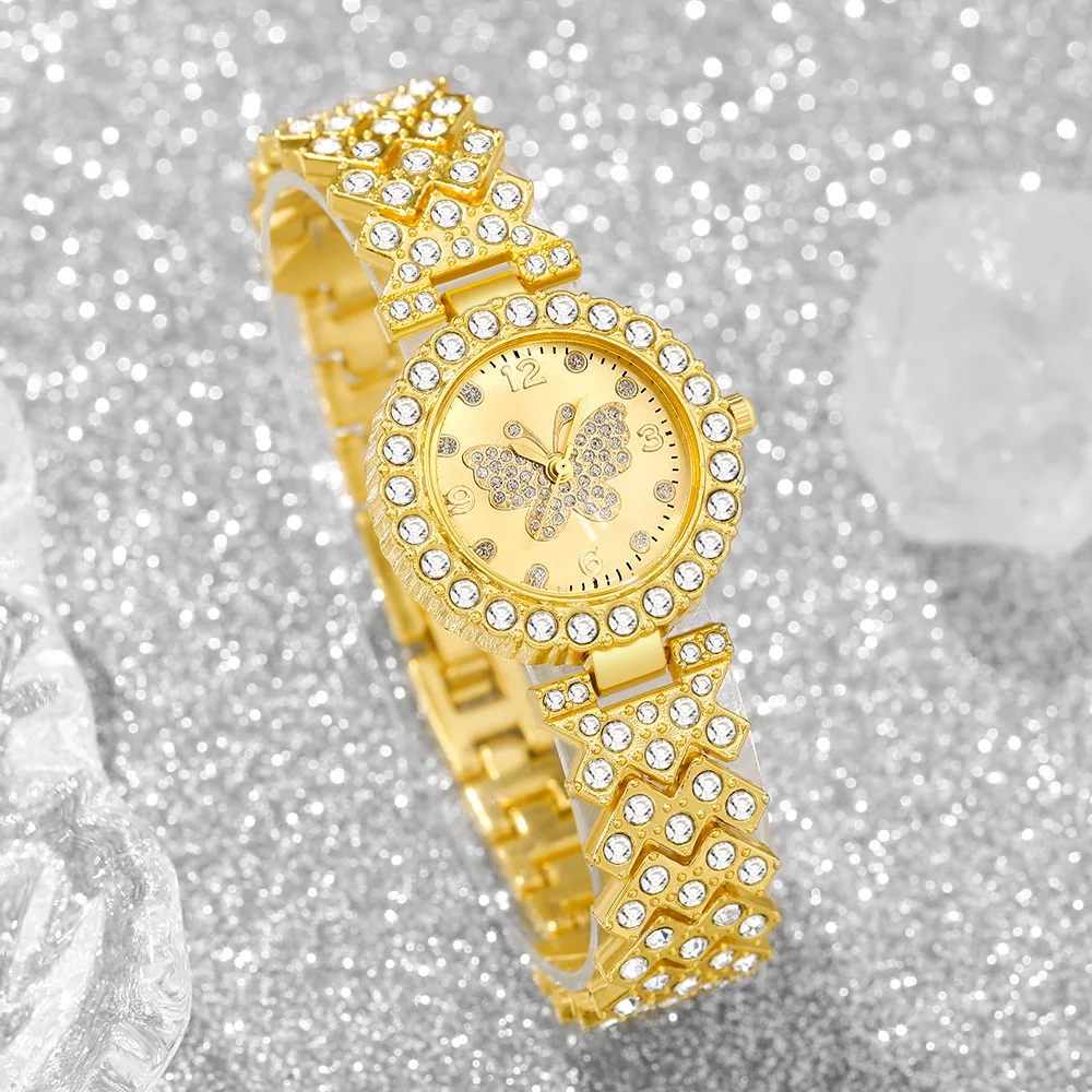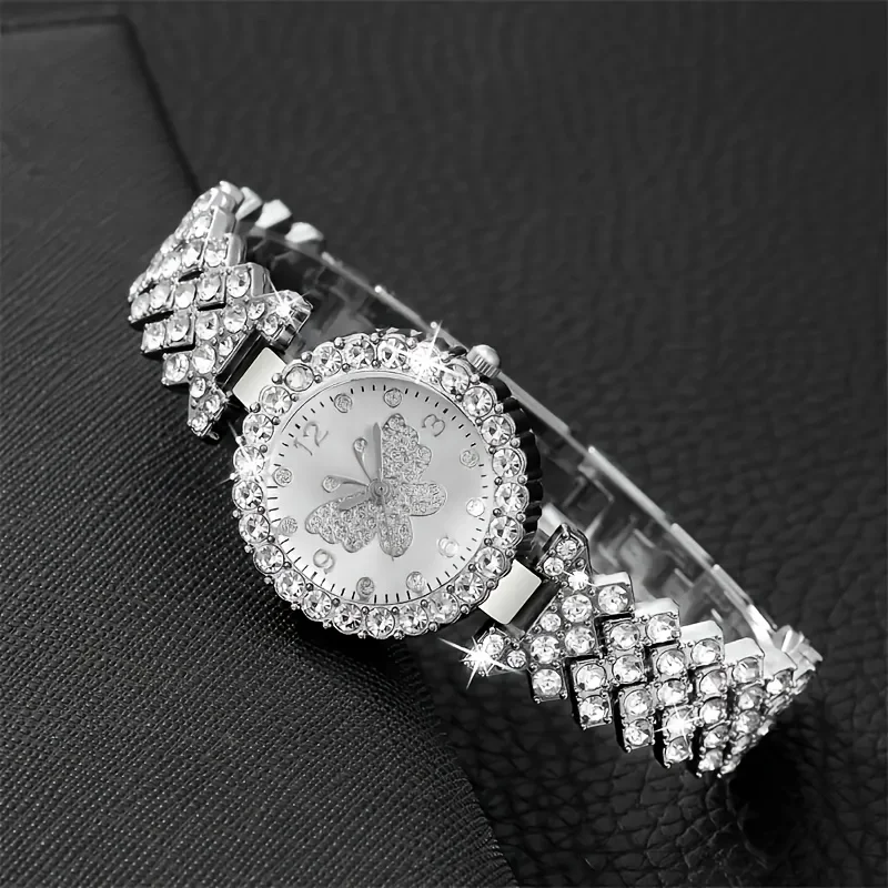 5PCS Fashion Rhinestone Butterfly Dial Women Quartz Watch Elegant Ladies Bracelet Wristwatch Jewelry Set Reloj Mujer(Without Box