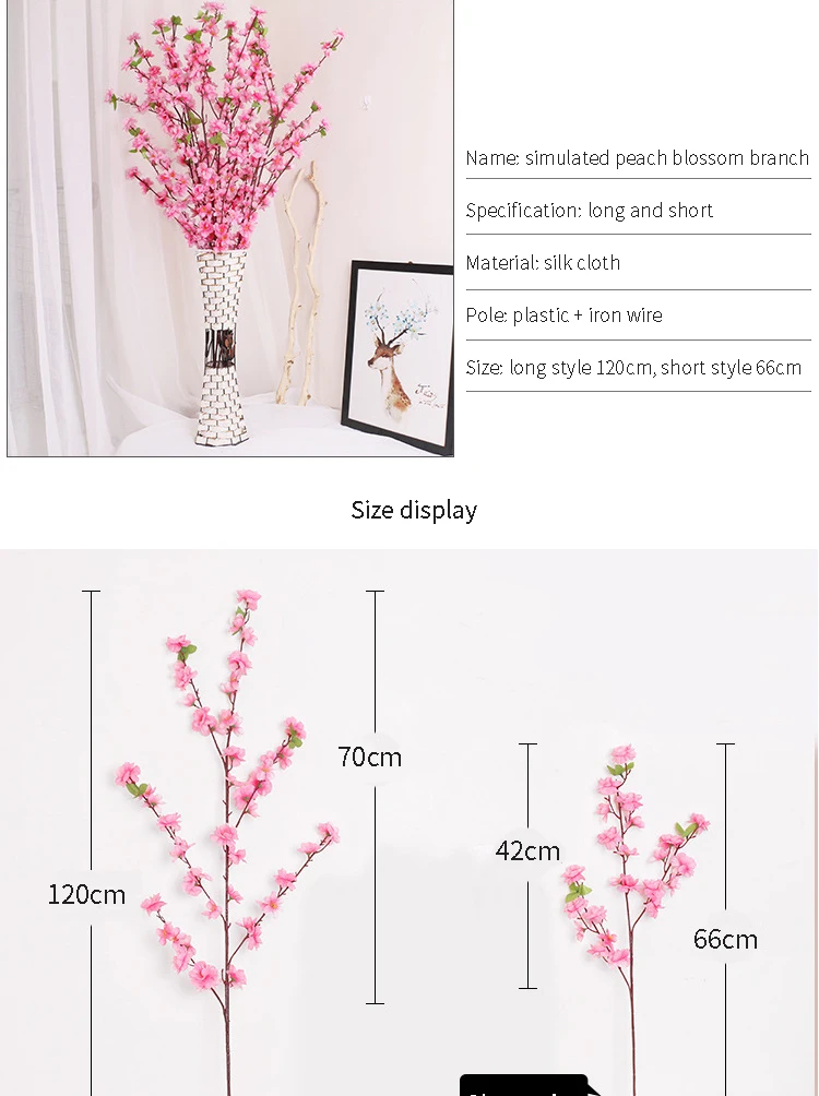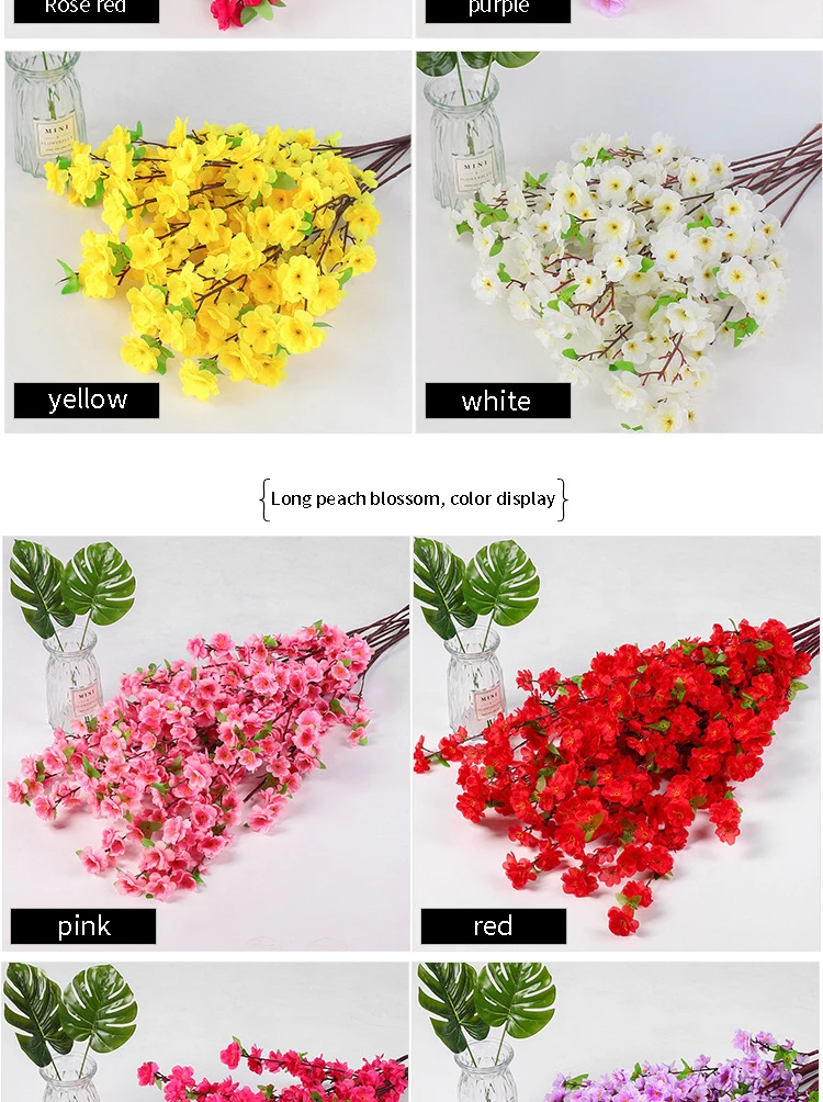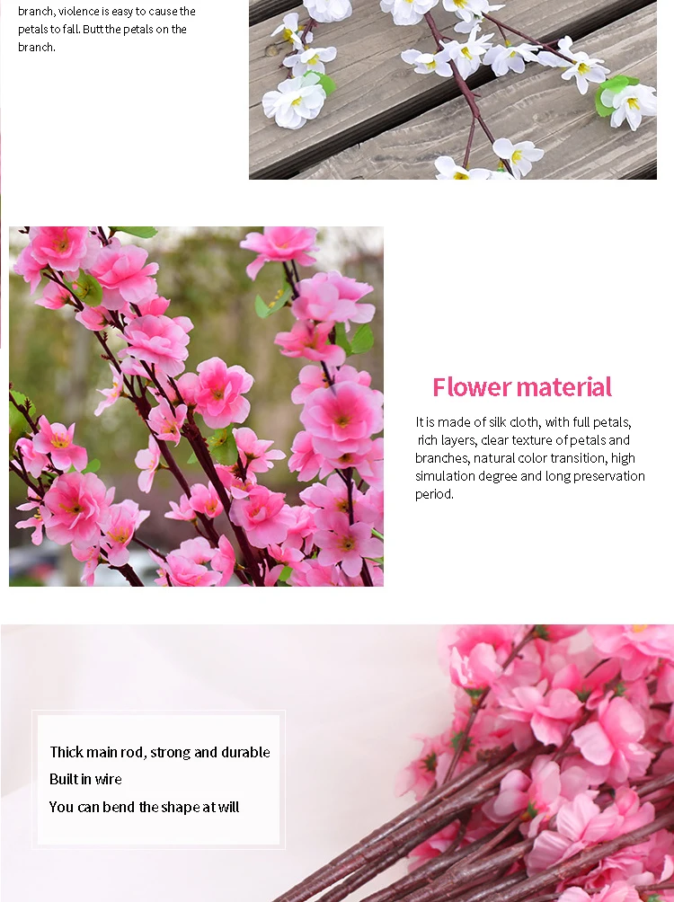 65CM / 125CM Silk Flower Artificial Cherry Spring Plum Peach Blossom Branch Home Dining Room DIY Wedding Decoration Flower