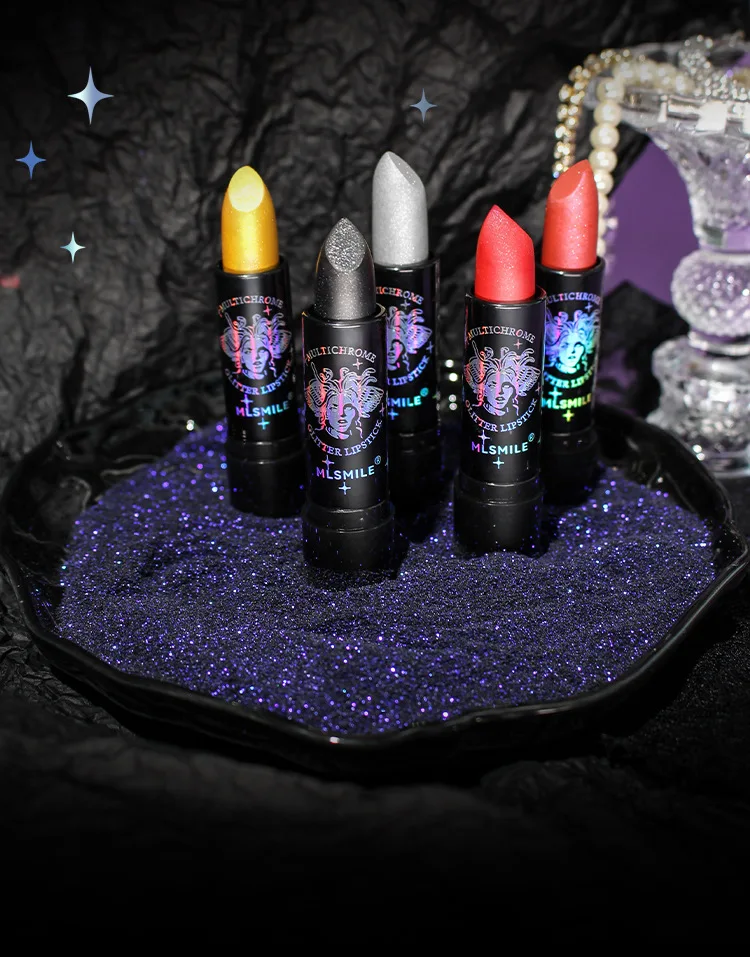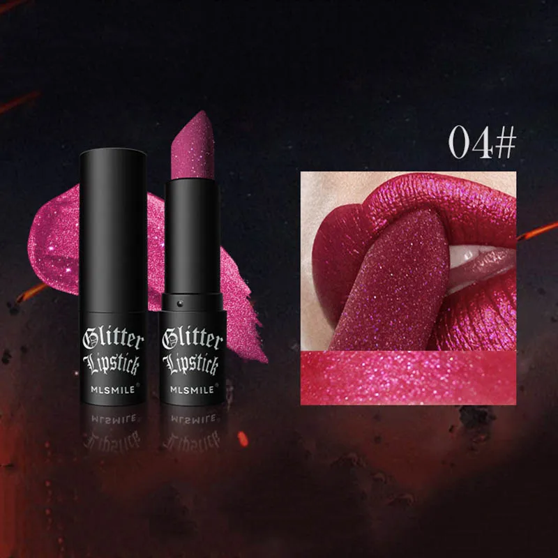 6Colors Glitter Lipstick Waterproof Long Lasting Diamond Pearlescent Metallic Lipstick Black Lipgloss Women Lips Makeup Cosmetic