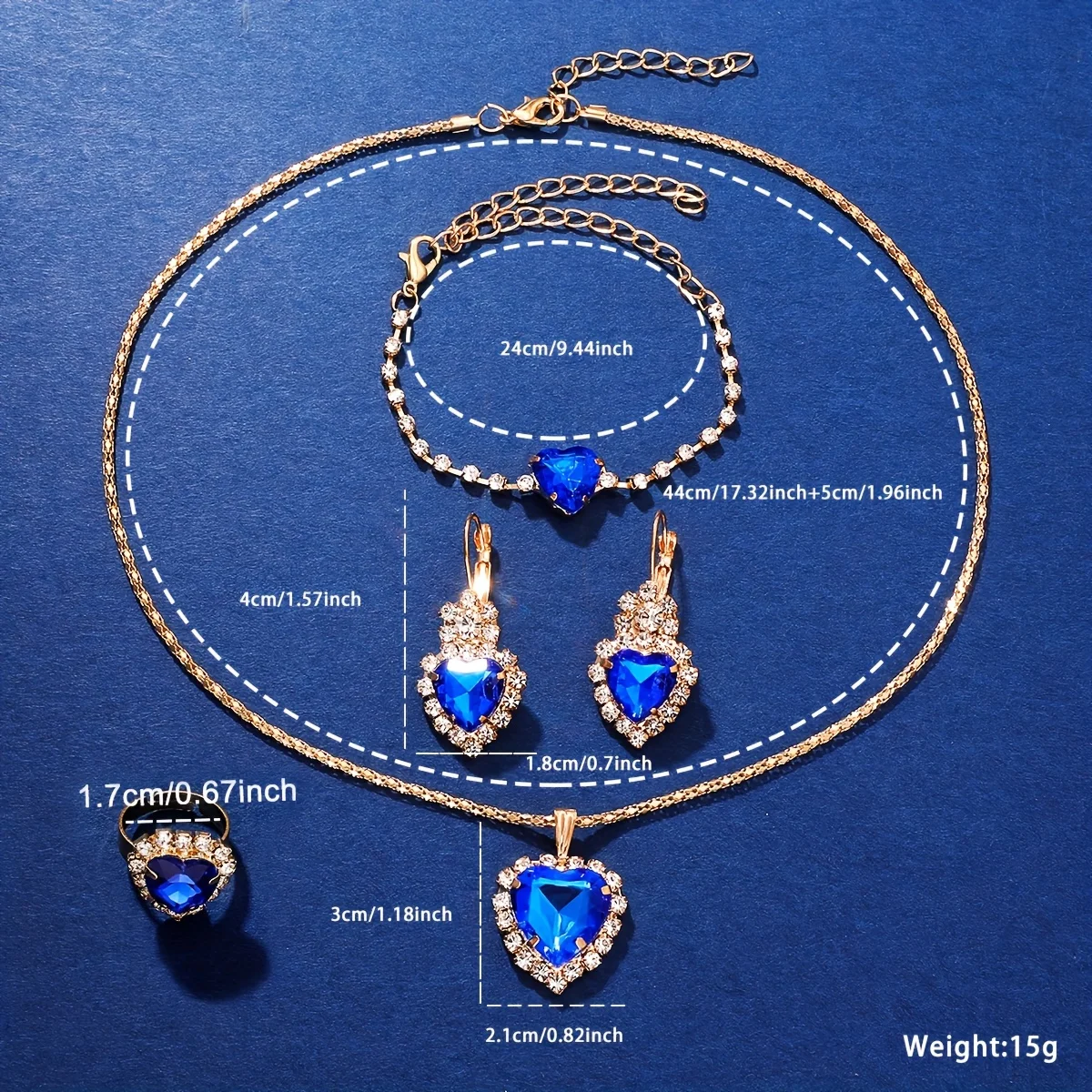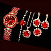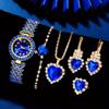 6PCS Elegant Women’s Fashion Jewelry and Watch Set, Ladies Blue Rhinestone Dial Quartz Wristwatch,Female Jewelry Watches Set