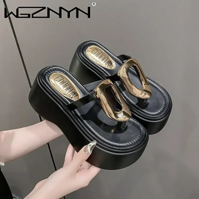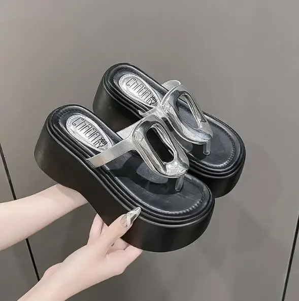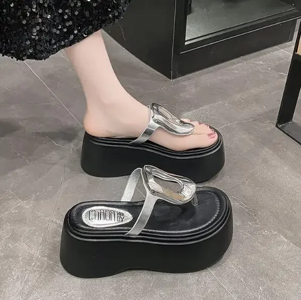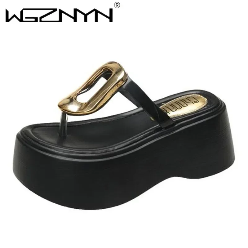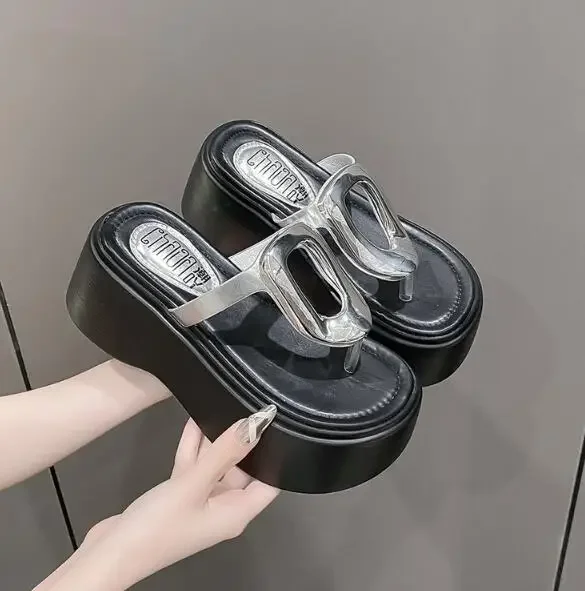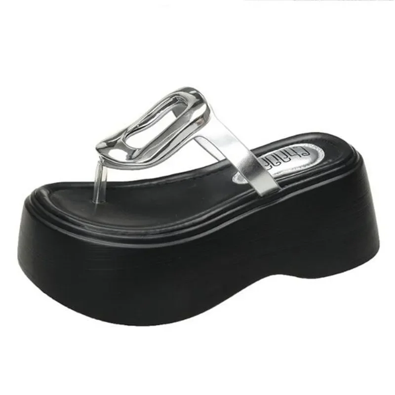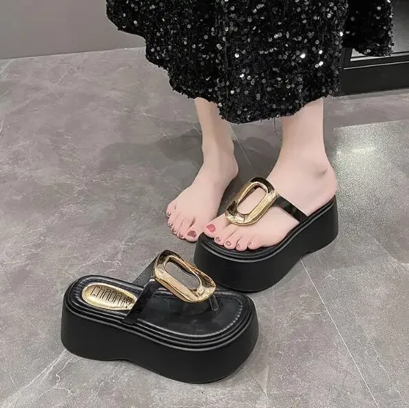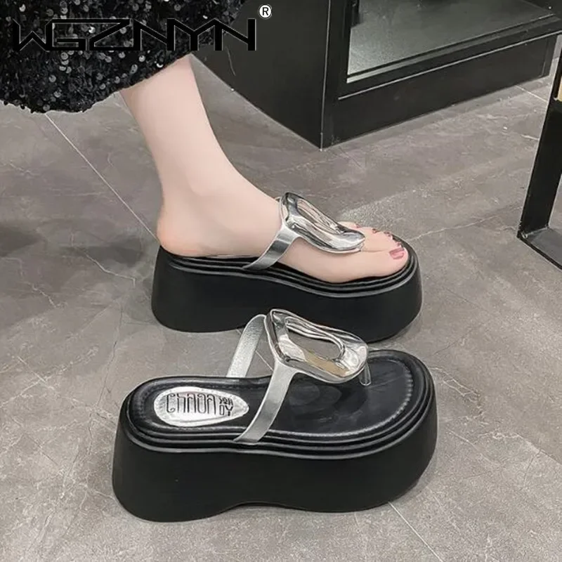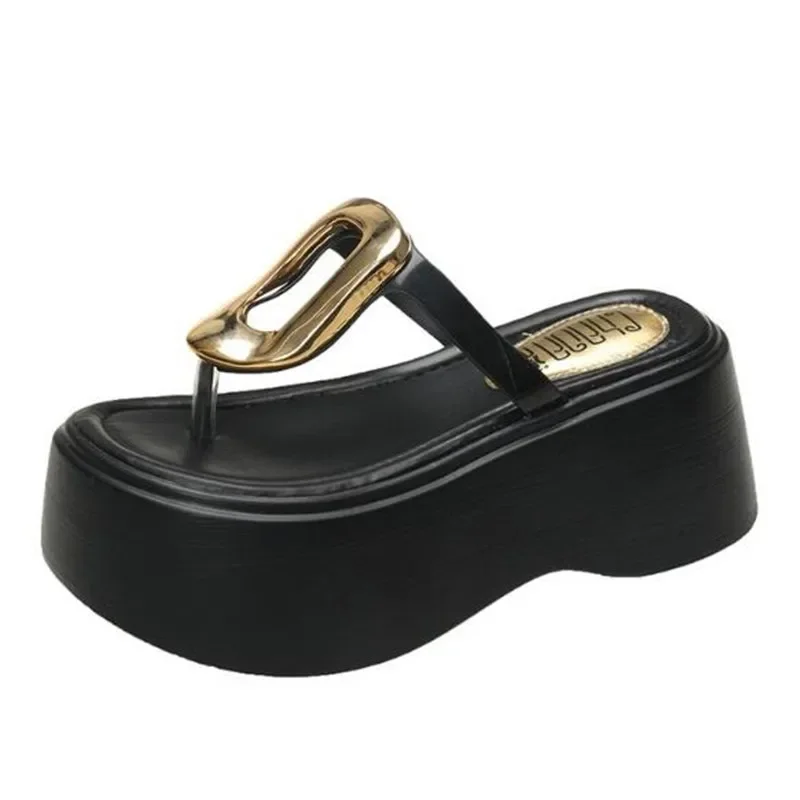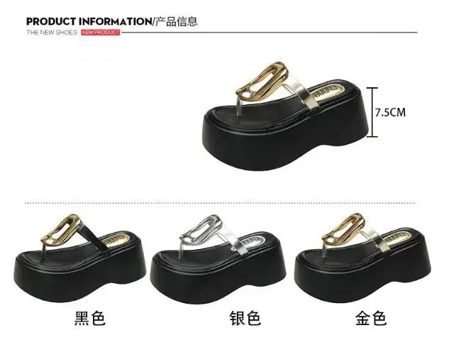 7.5cm Summer Women Flip-Flops Chunky Beach Shoes 2025 Ladies Wedge Heels Open Toe Slippers Woman Platform Slides Outside Sandals