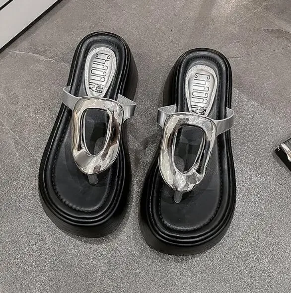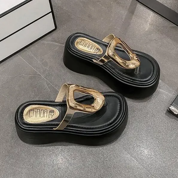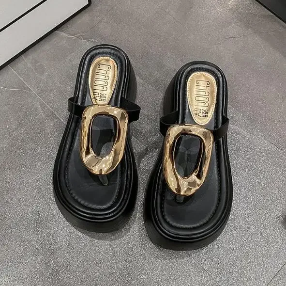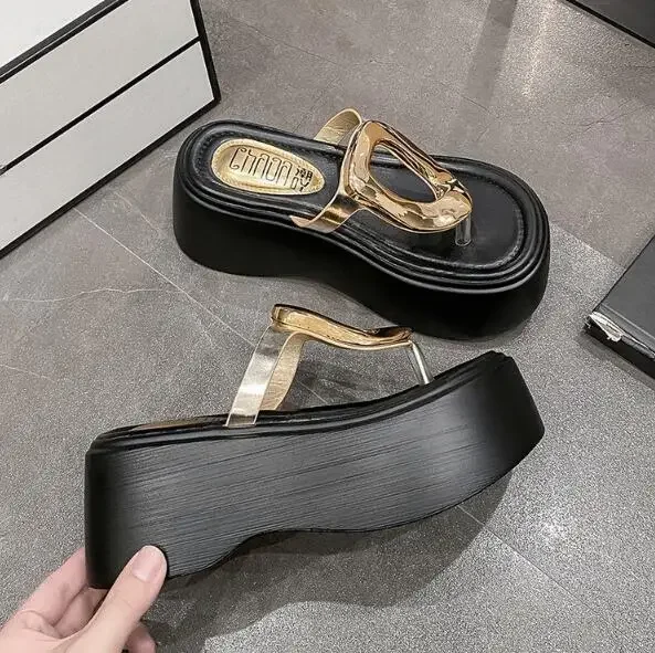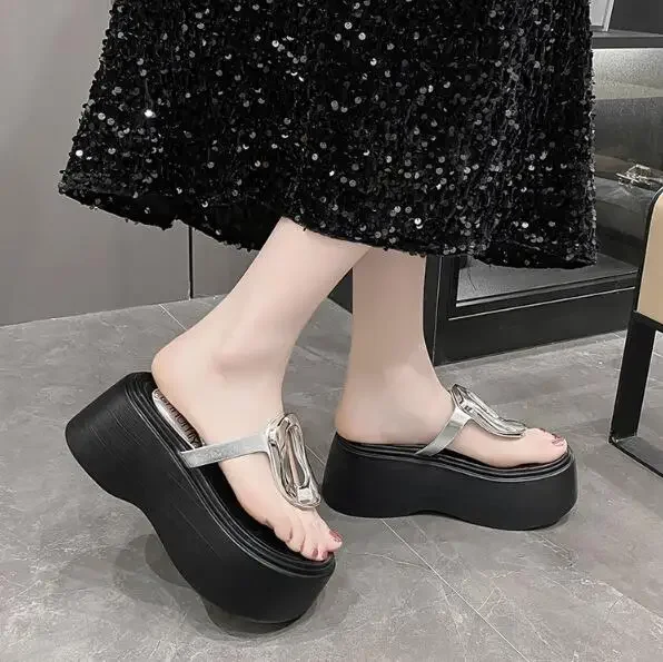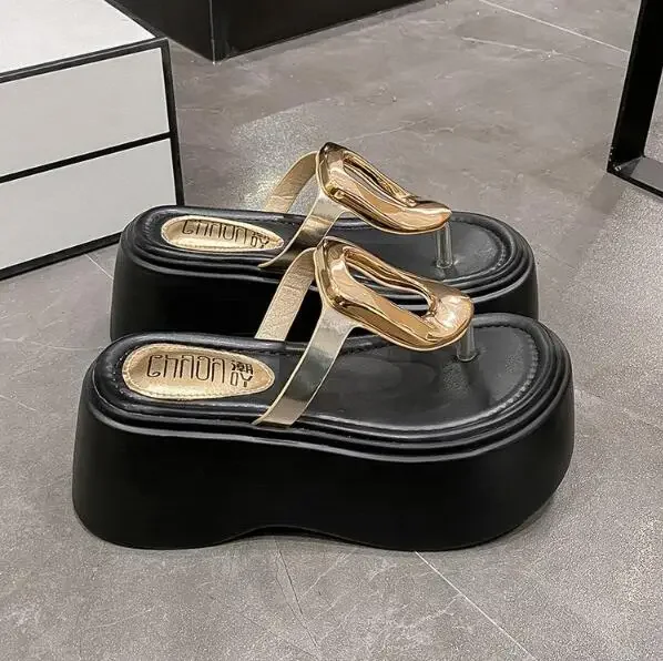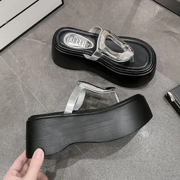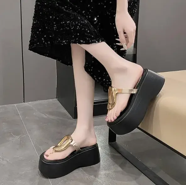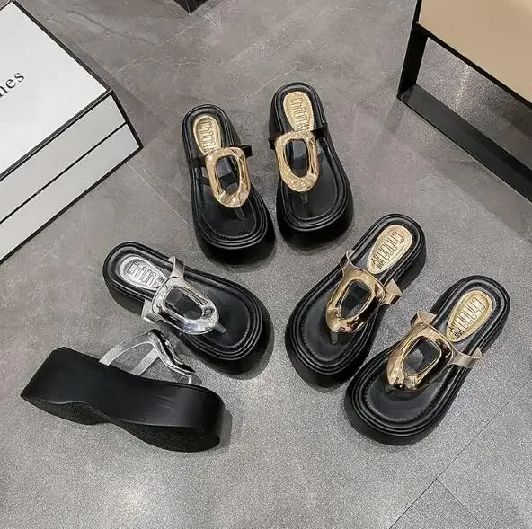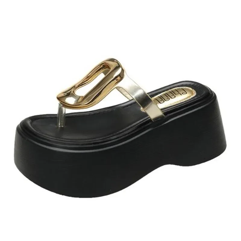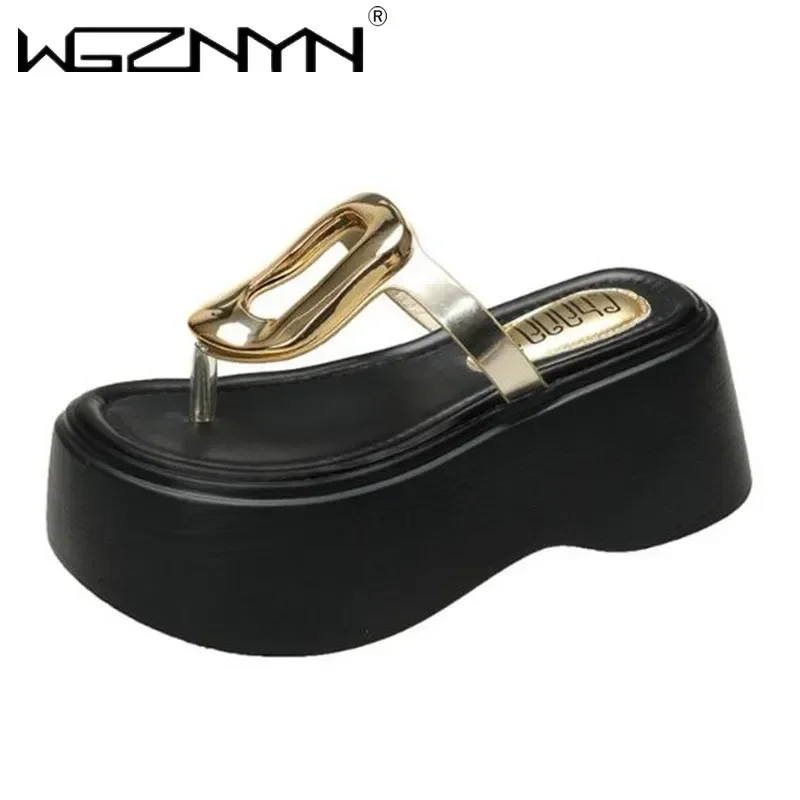 7.5cm Summer Women Flip-Flops Chunky Beach Shoes 2025 Ladies Wedge Heels Open Toe Slippers Woman Platform Slides Outside Sandals