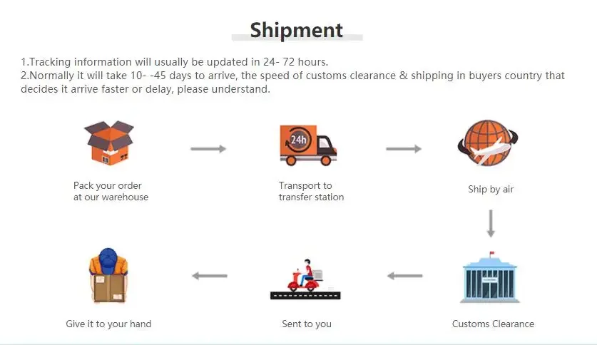 • If you did not receive the product within the guaranteed time( 45 days not including 2-5 day processing) you can request a refund or a reshipment.