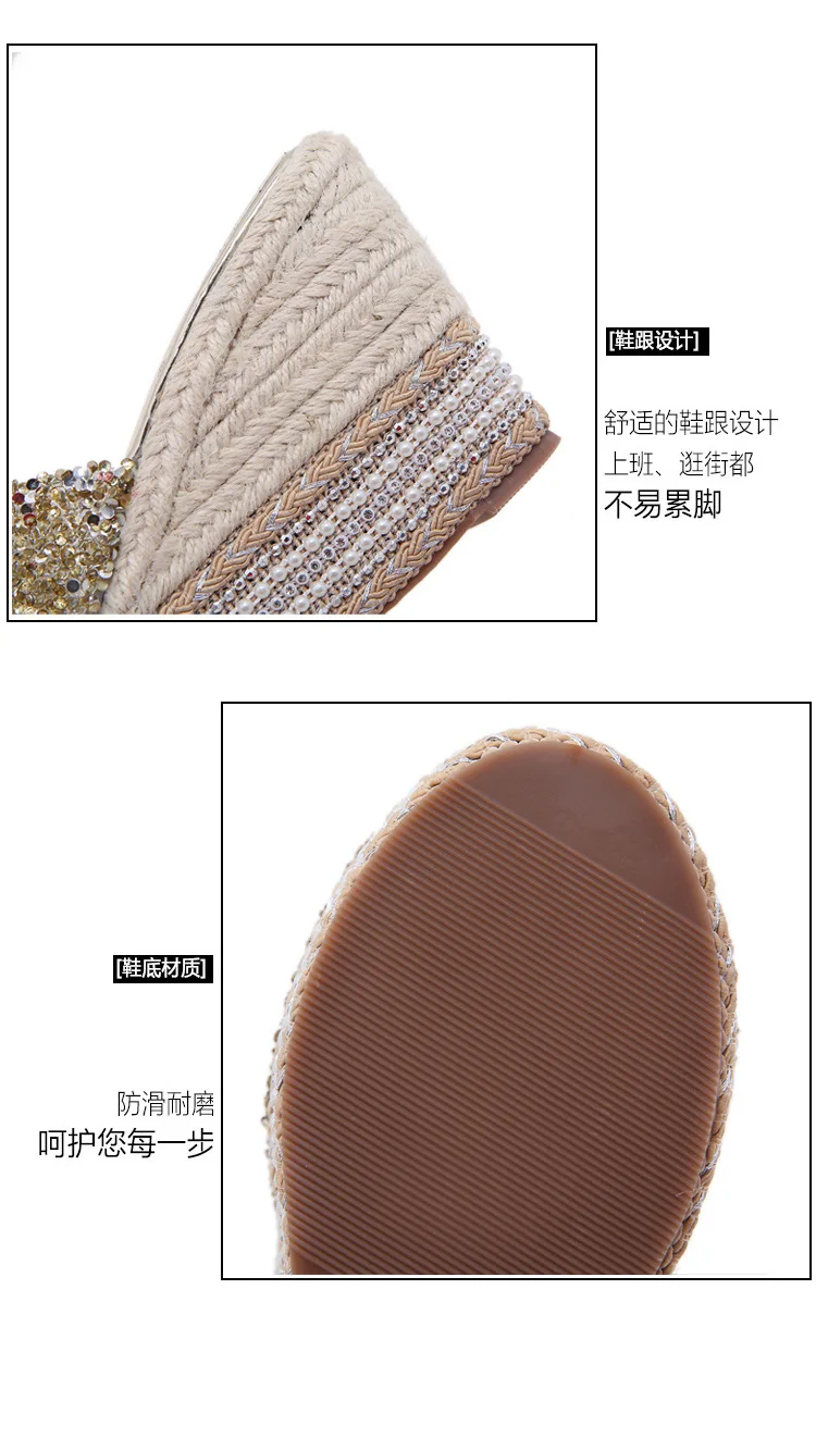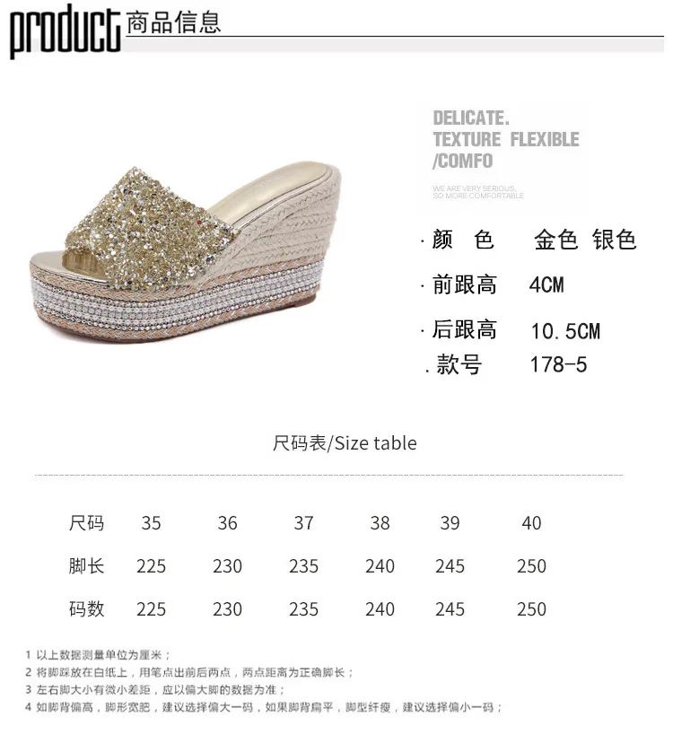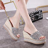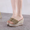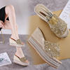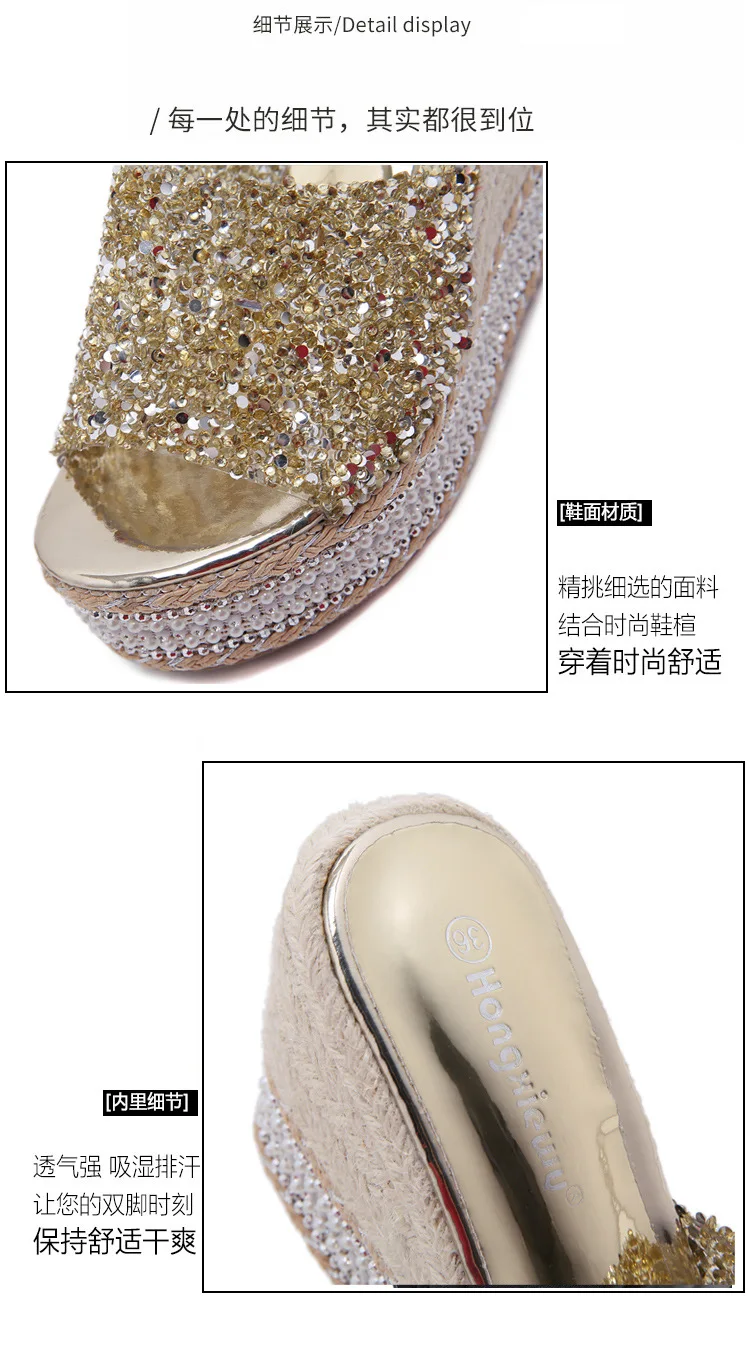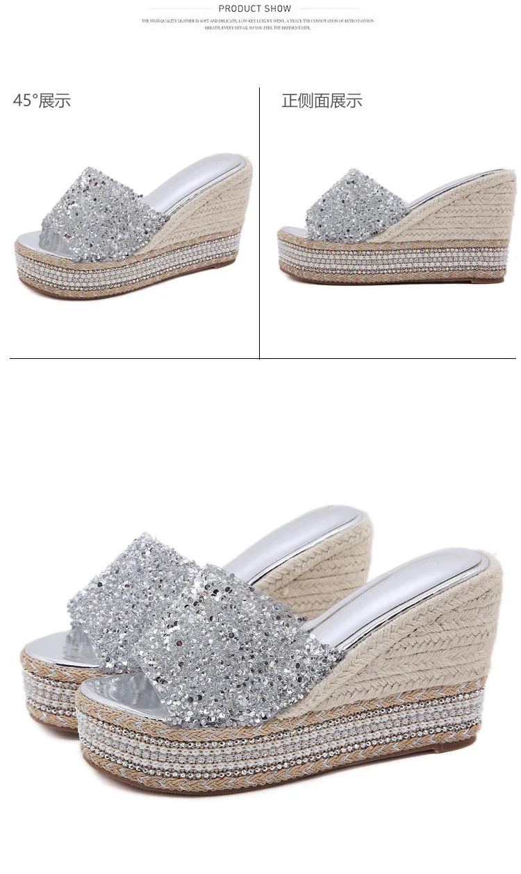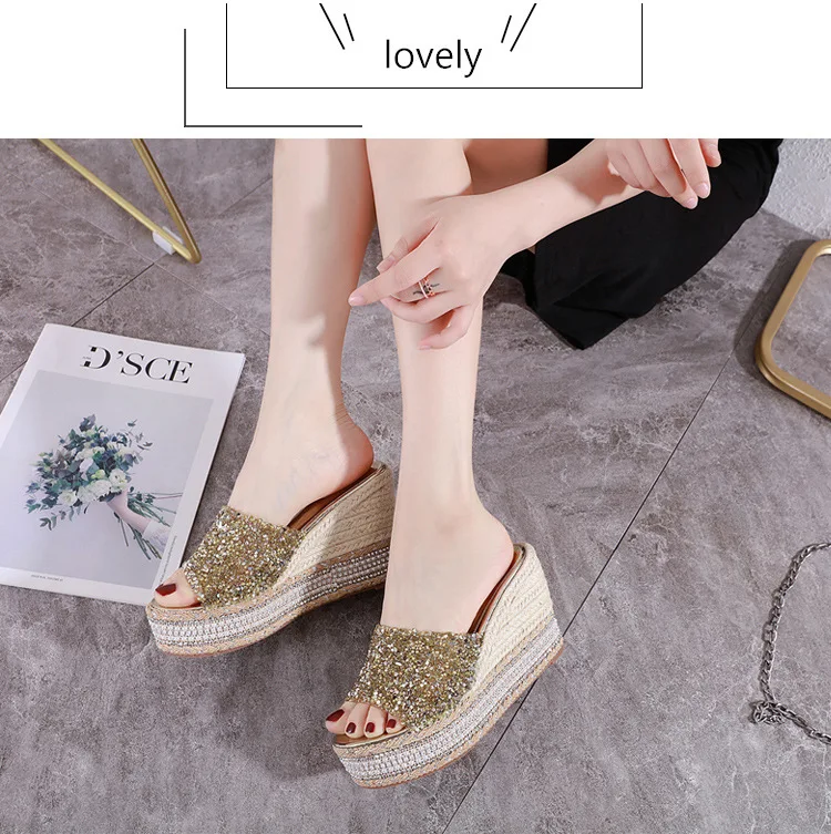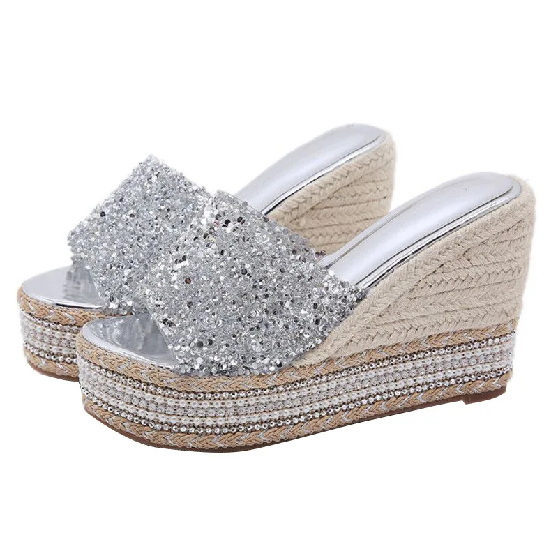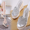 8-10cm Women’s Wedge Slippers Super High Heels Waterproof Platform Sequin Diamond Wedding Shoes Ladies Wear Outside Sandals